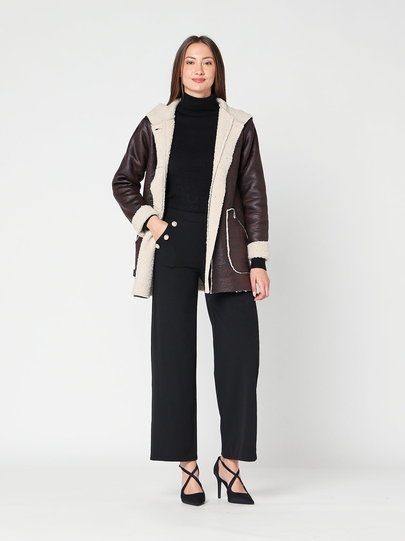 Pantalone dal taglio elegante con dettaglio doppiopetto frontale, ispirato al mondo sartoriale maschile ma reinterpretato in chiave femminile. La linea slanciata e la vita alta valorizzano la figura, rendendolo perfetto per creare look strutturati e moderni. Si abbina facilmente a camicie fluide, maglie aderenti o blazer oversize per un effetto sofisticato ma quotidiano.