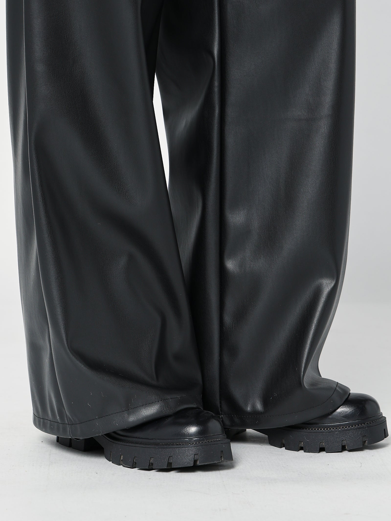Pantalone in ecopelle dal carattere deciso e contemporaneo. La linea slim e il finish liscio lo rendono perfetto per look grintosi ma curati. Indossalo con camicie morbide per smorzarne il tono o con blazer strutturati per un effetto più sofisticato. Un capo che trasforma anche gli outfit più semplici in qualcosa di audace e attuale.