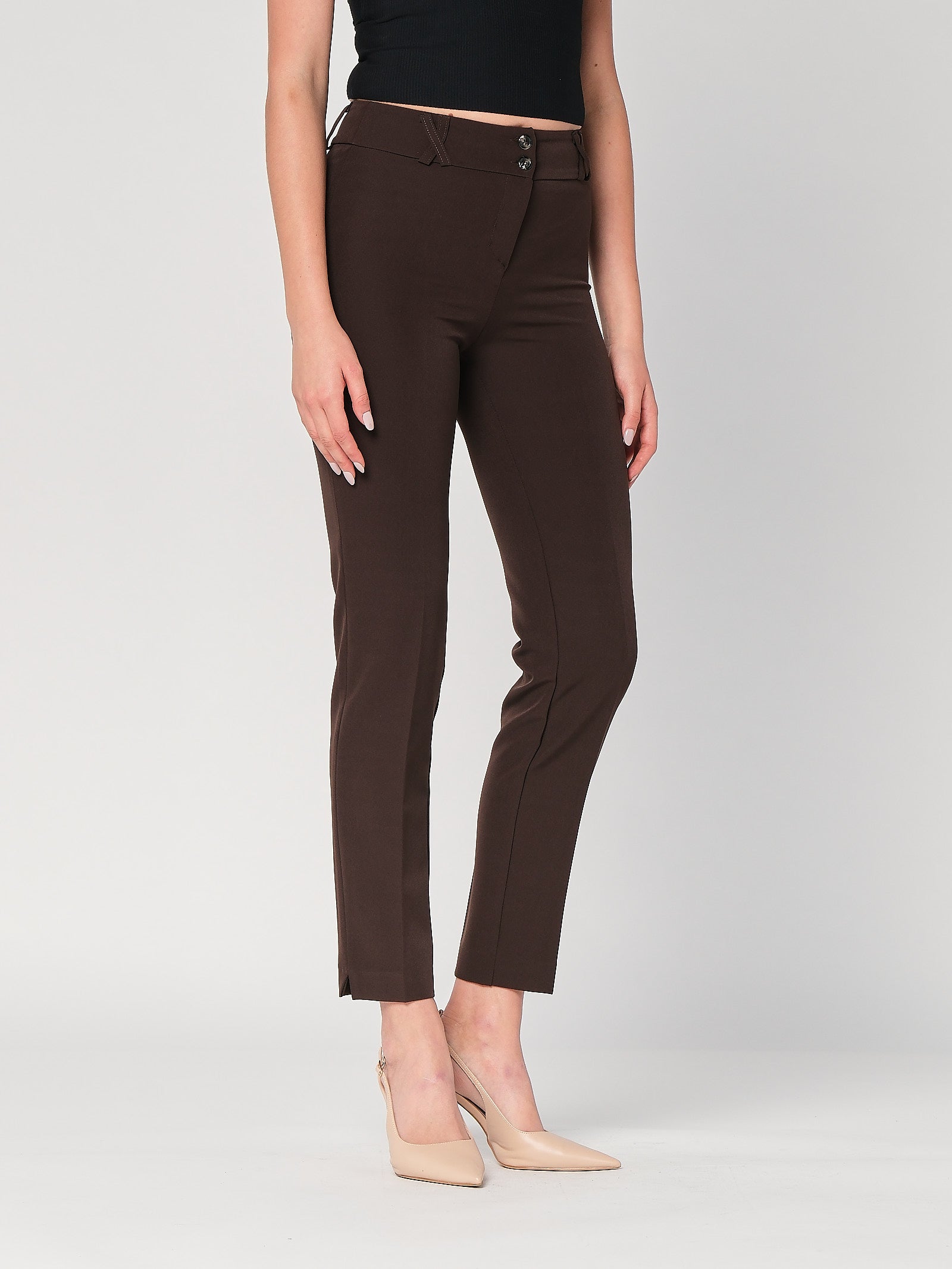 Il pantalone donna che mette subito in ordine il look: vita definita, linea pulita, passo leggero che resta comodo da mattina a sera. È un pantalone elegante pensato per slanciare senza stringere, con costruzione stabile che mantiene la forma. Da solo con top minimal è già perfetto, con camicia donna sale subito di tono. Se cerchi un pantalone facile ma con presenza, questo è l’asso giusto.