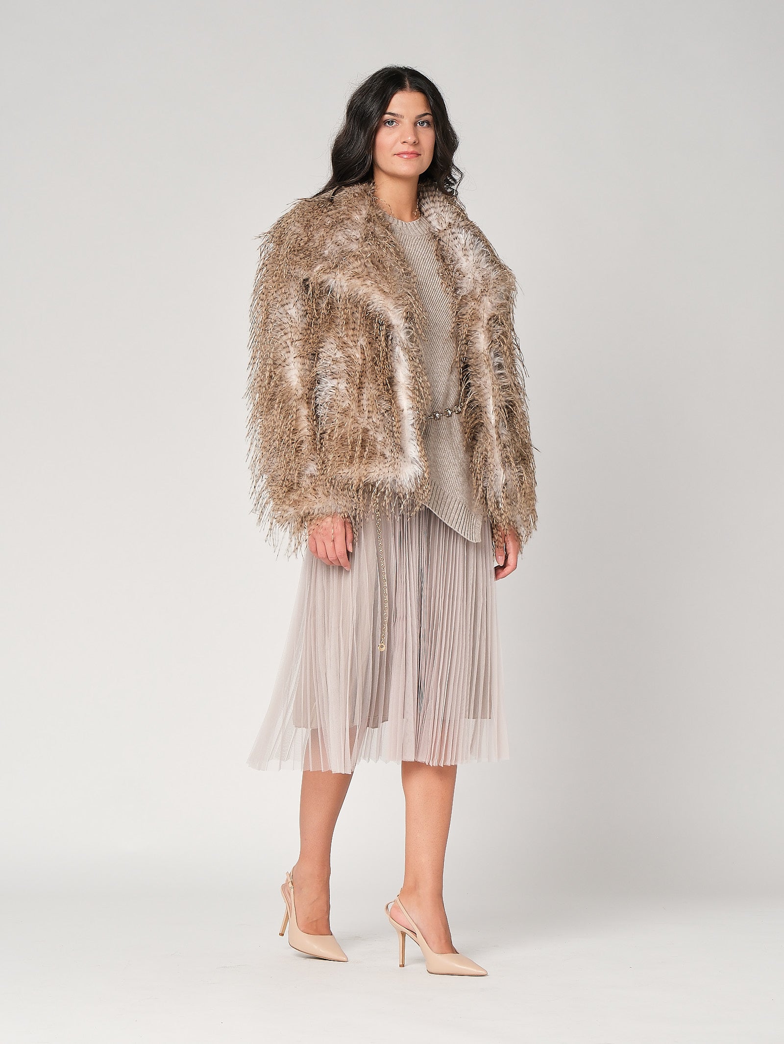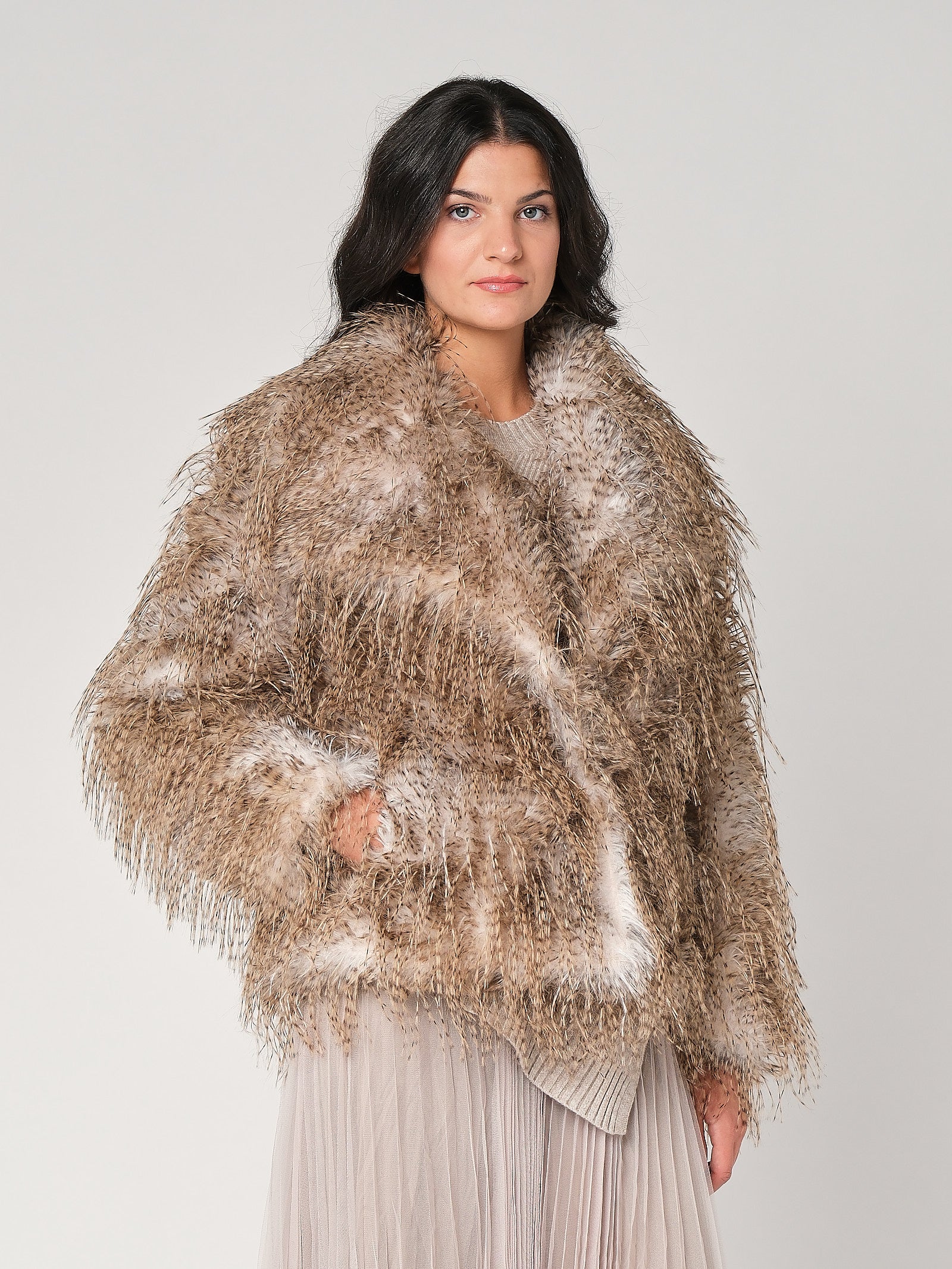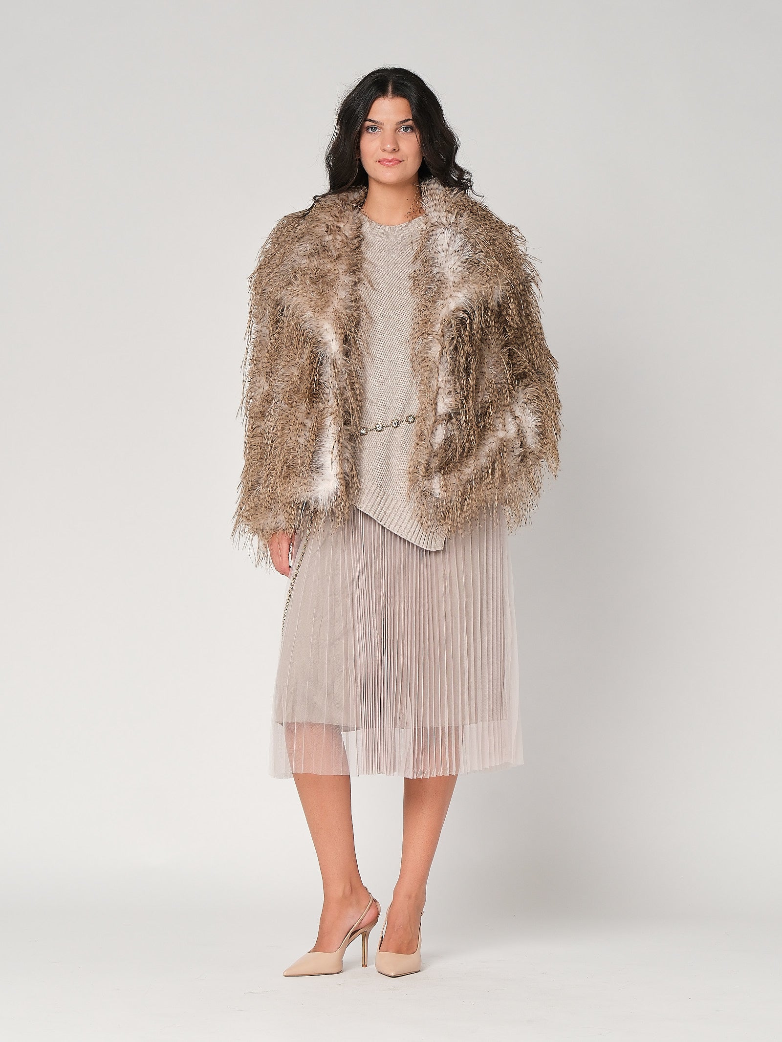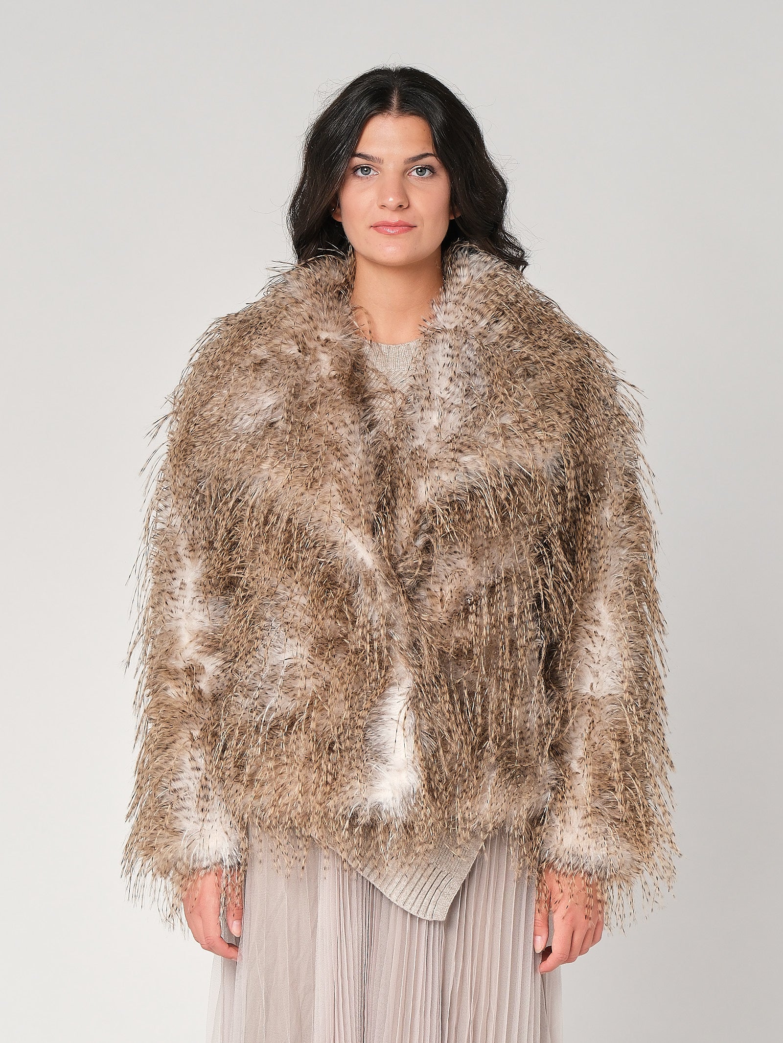 La pelliccia che illumina l’outfit, volume morbido, tatto soft e profilo pulito che sta bene su tutto. Questo capospalla donna è perfetto per outfit eleganti e daywear curati, si indossa facile e resta comodo per ore. La chiusura a bottoni mantiene il fronte ordinato, la caduta è fluida e femminile.