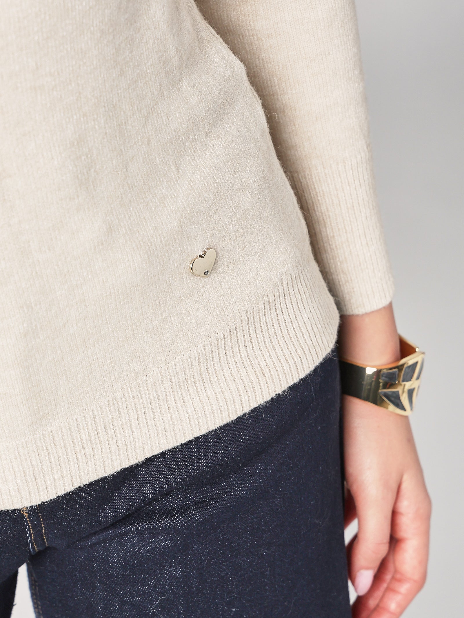 Dettaglio sartoriale: girocollo classico e bordi sottili