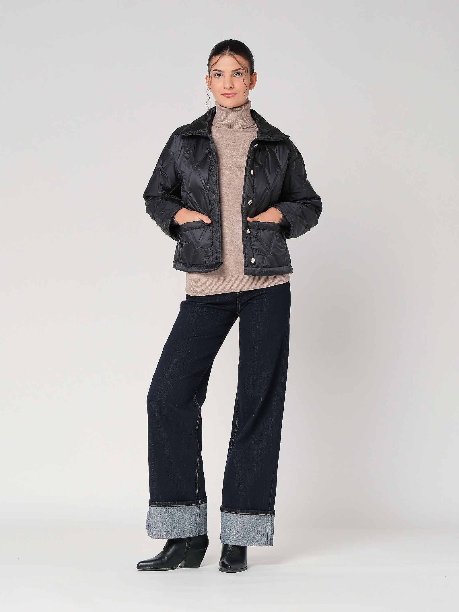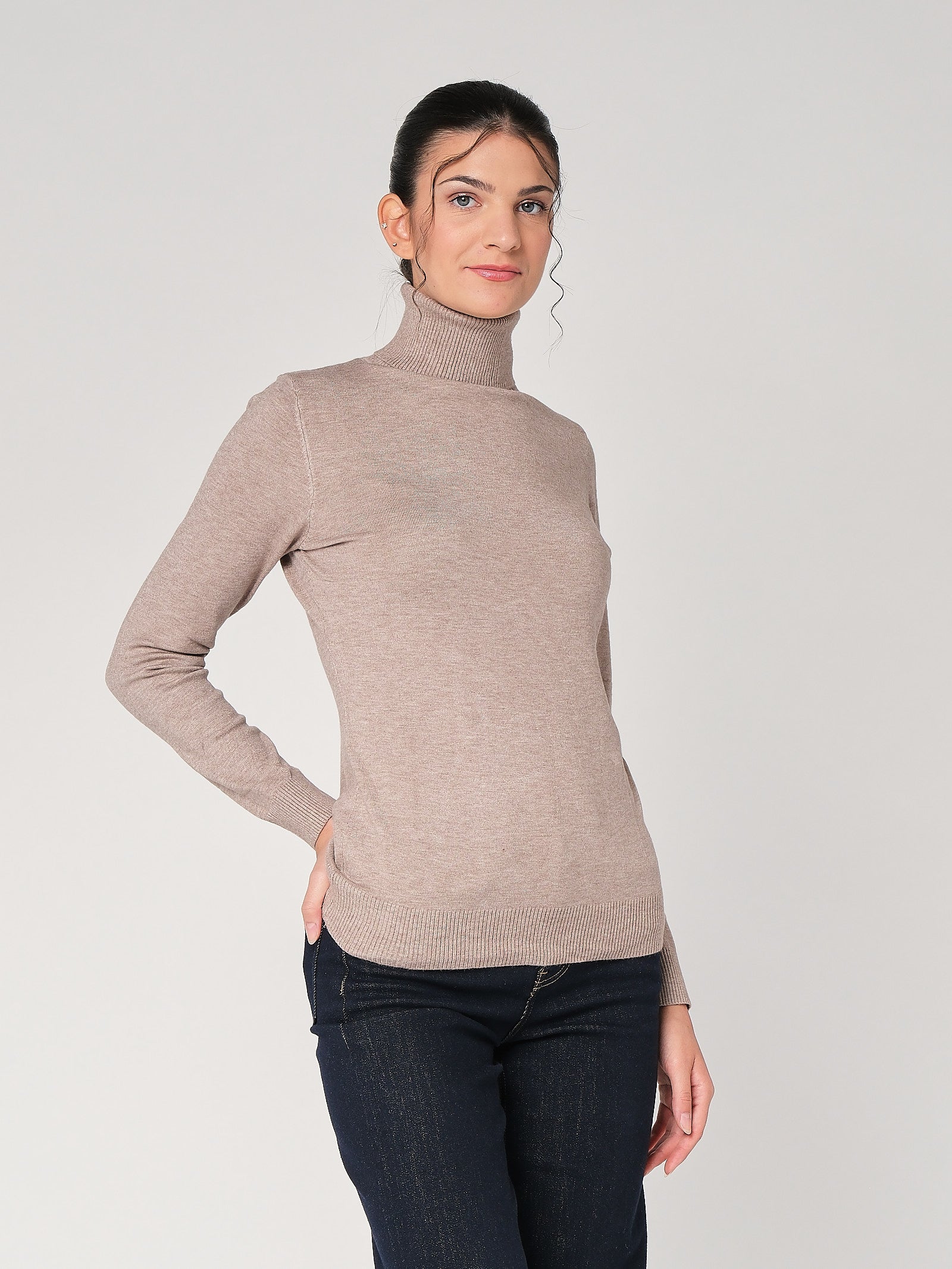 Il dolcevita è la base intelligente che rende subito più curato qualsiasi look: collo alto che incornicia, linea essenziale, zero complicazioni. Questa maglia dolcevita donna segue i movimenti senza tirare, resta ordinata da sola o in layering. La indossi con denim per il giorno o sotto giacca donna per un tono più sartoriale. Risultato: pulizia, comfort e profilo slanciato.