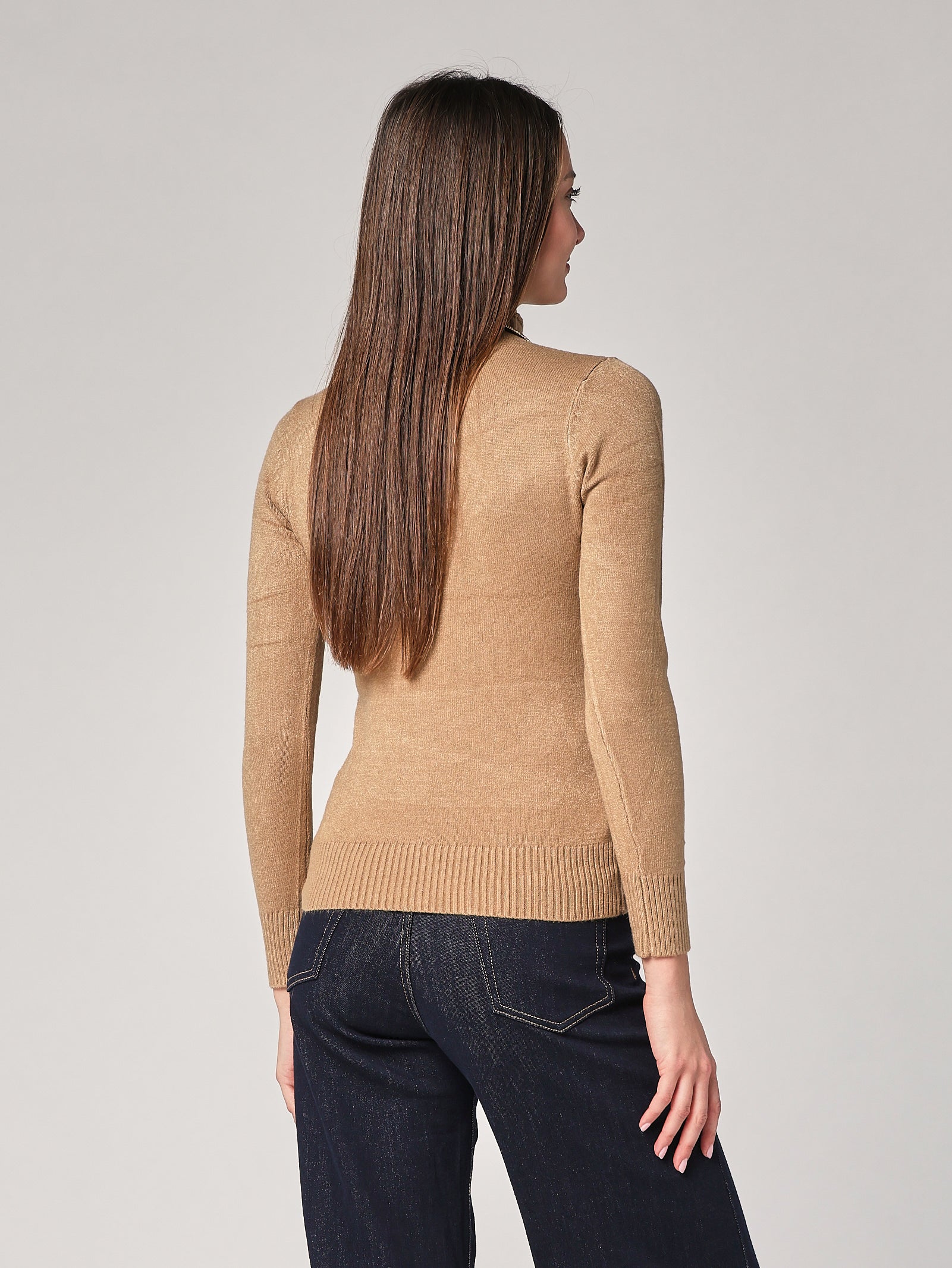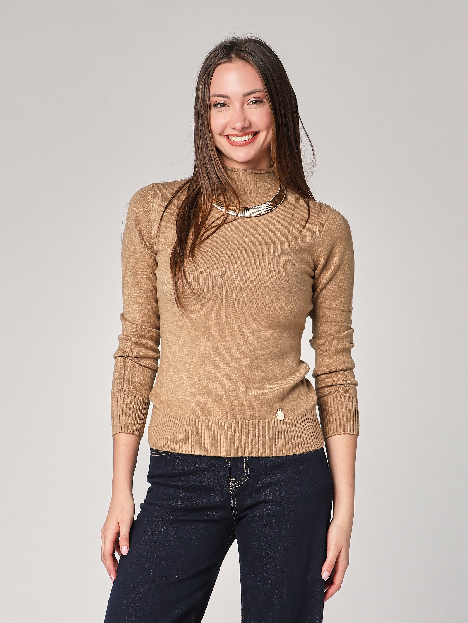 Lupetto morbido a collo alto, ideale per la stagione fredda. Il tessuto leggero ma caldo avvolge con delicatezza, regalando uno stile curato e confortevole.