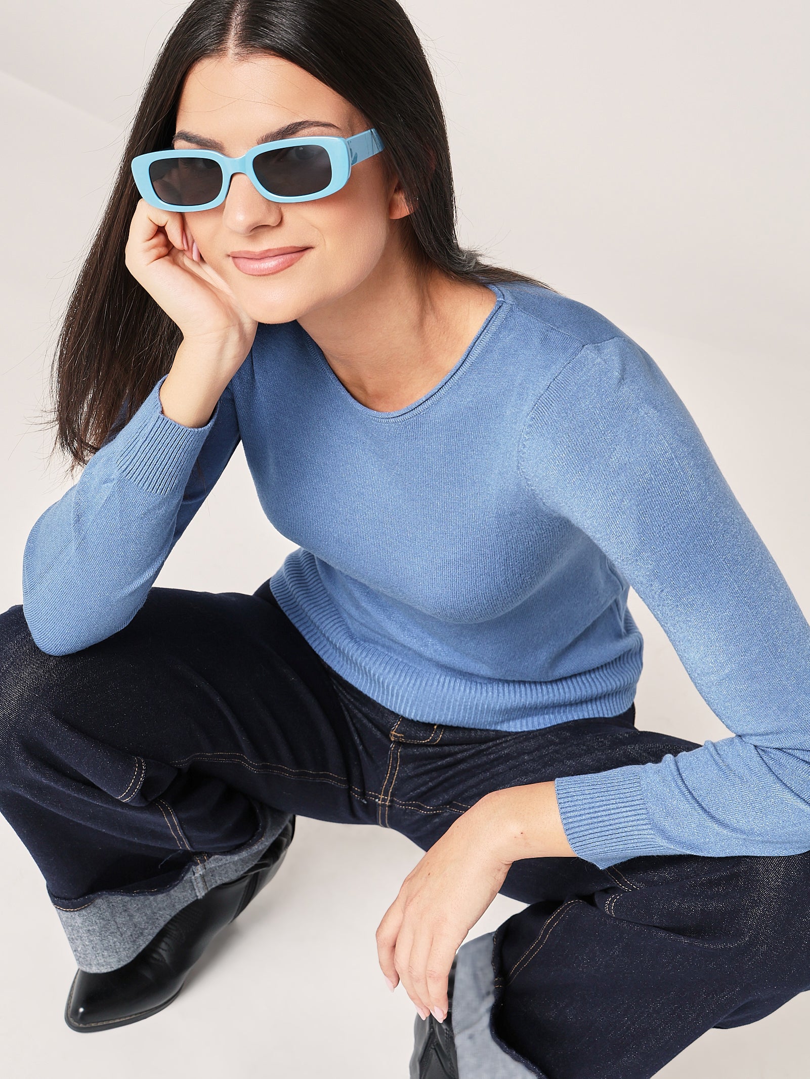 Maglia girocollo minimal chic, perfetta per chi ama la semplicità elegante. Il tessuto sottile e il taglio regolare la rendono ideale per look quotidiani puliti e femminili.