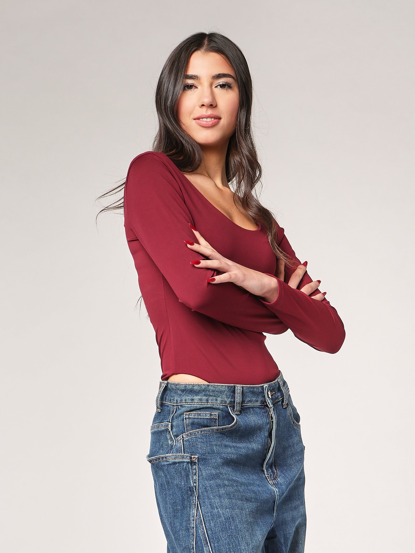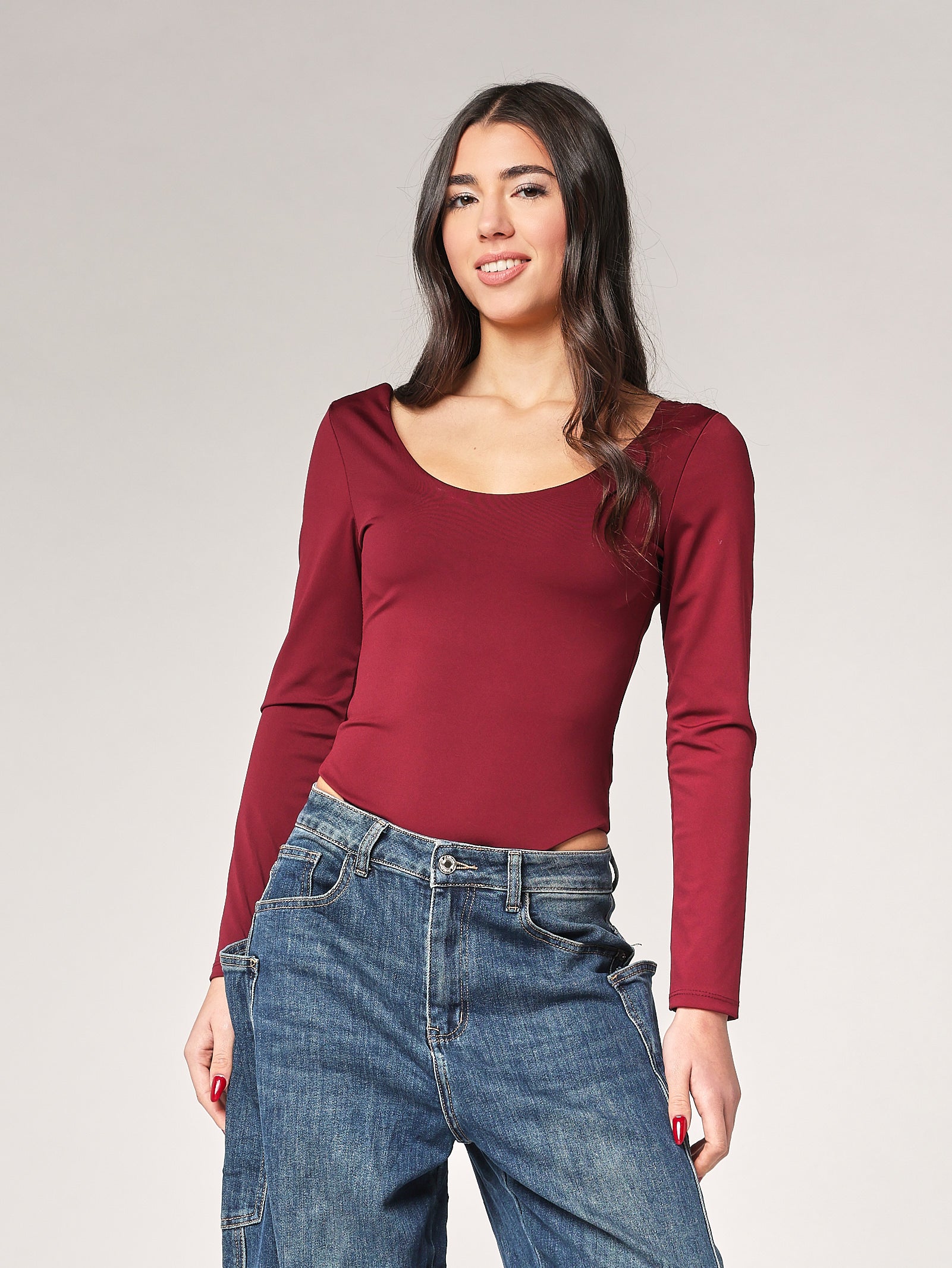Body a manica lunga dal design essenziale e fasciante, pensato per valorizzare la silhouette.