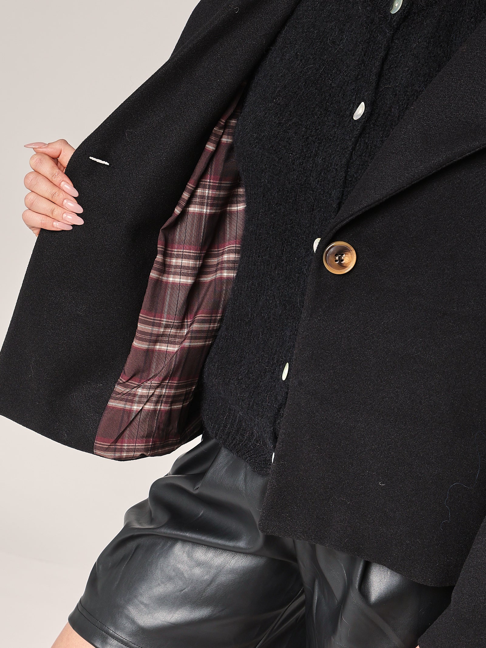 Maßgeschneiderte Details: kariertes Futter und Knopfverschluss