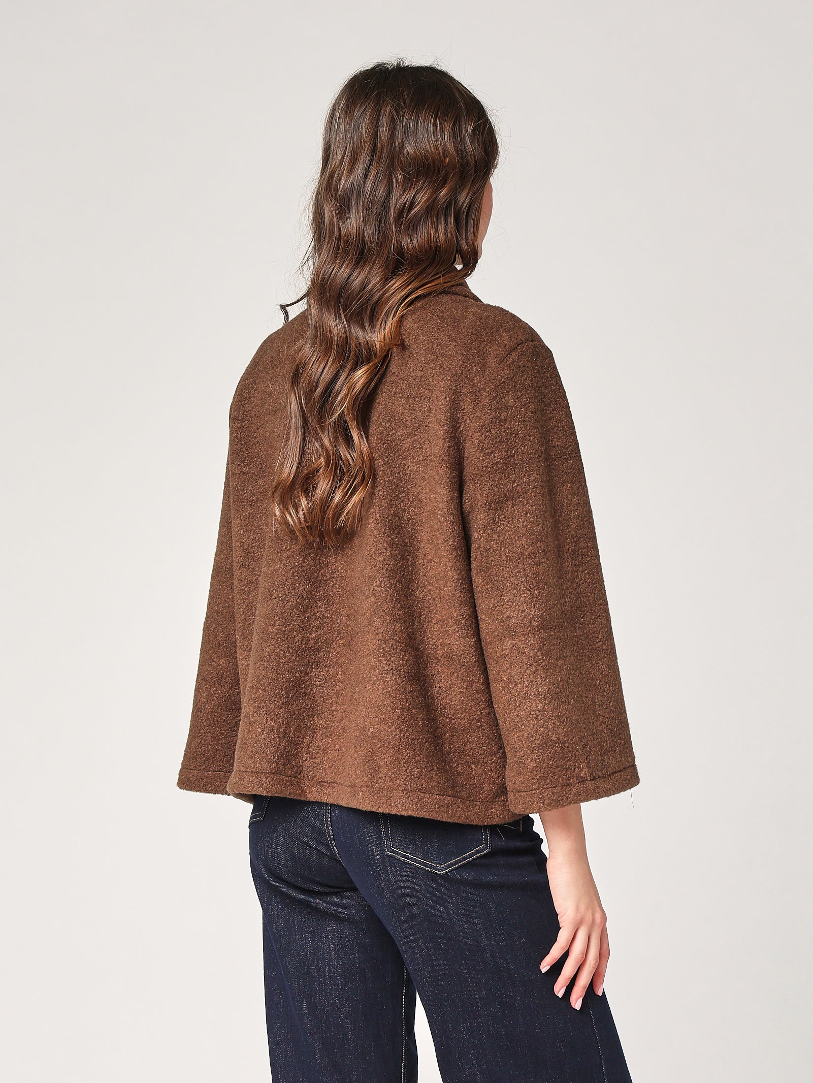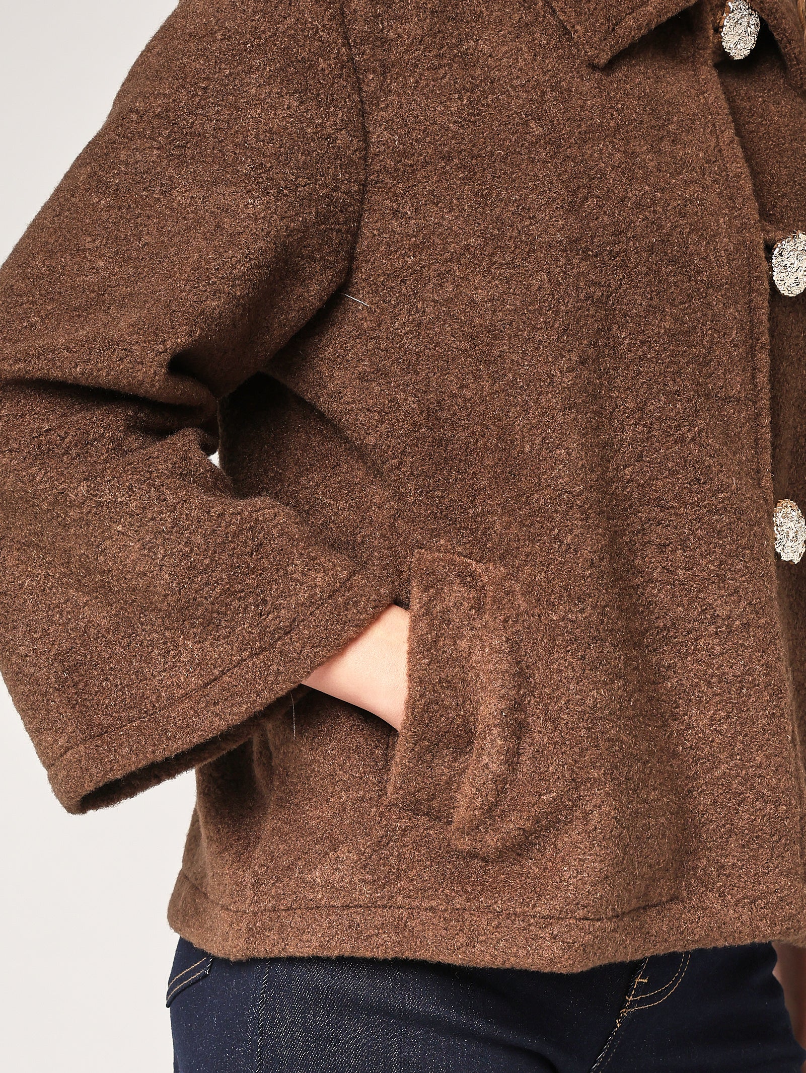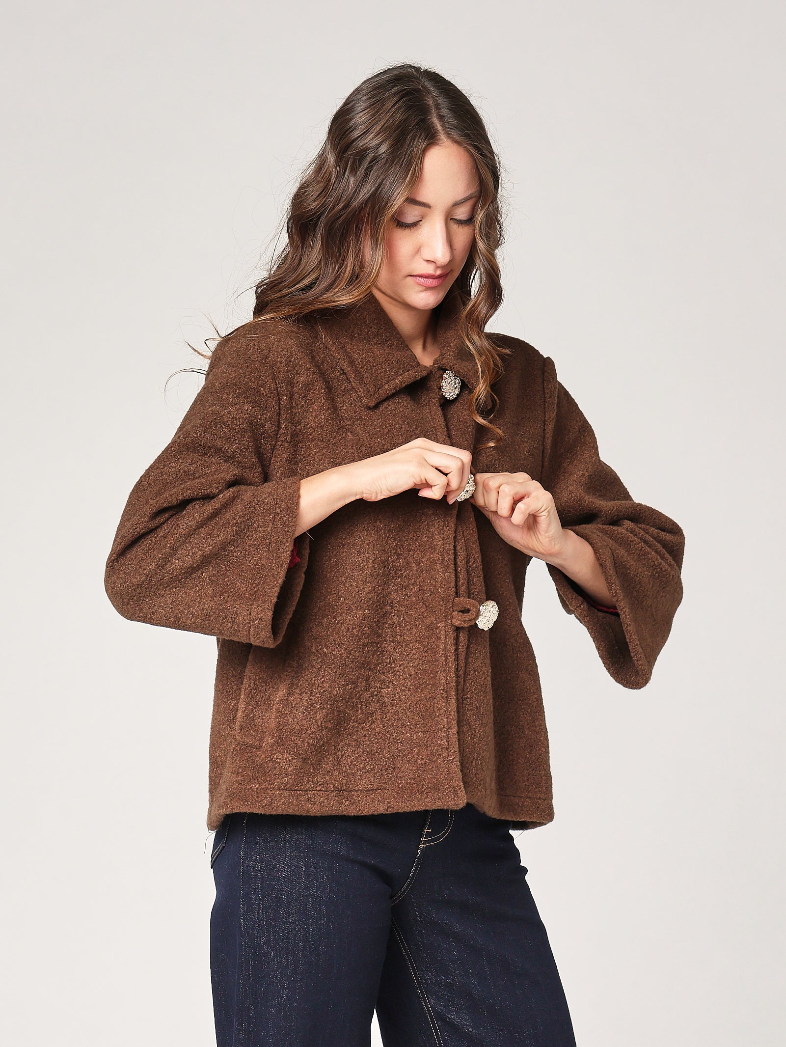 Cappotto corto strutturato, ideale per chi cerca un capo raffinato ma pratico. Il taglio definito e i tre bottoni centrali donano un tocco classico rivisitato in chiave contemporanea.
