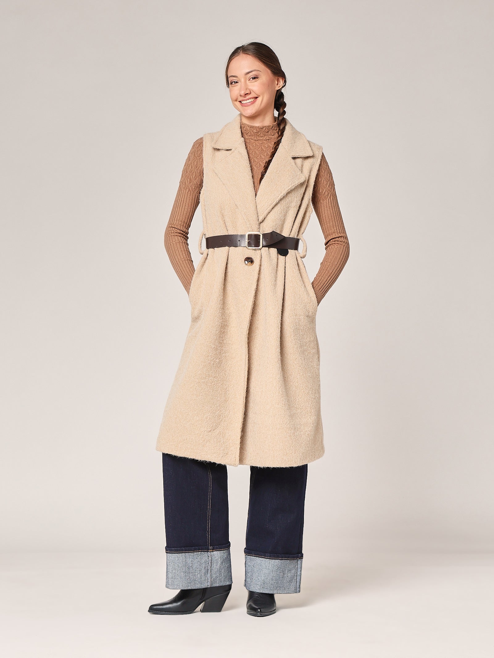Langer ärmelloser Mantel