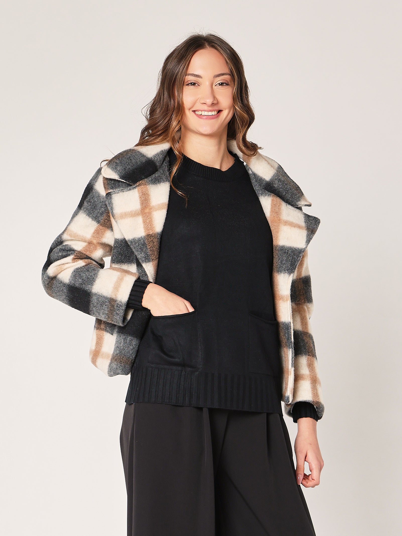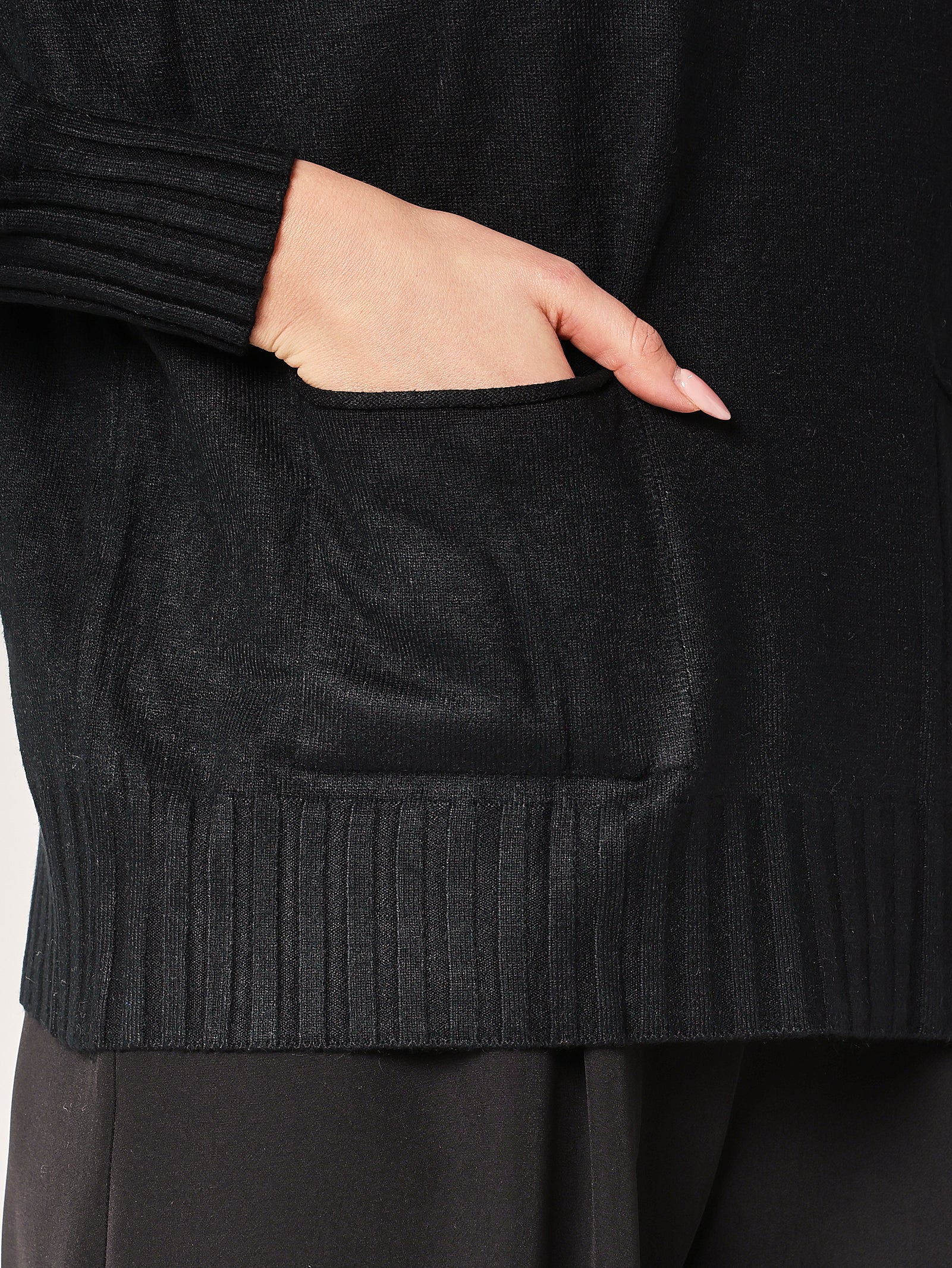 Praktisch, weich und super stylisch. Dieser schwarze Pullover mit zwei Taschen ist ein echtes Must-have: so bequem wie ein Sweatshirt, so elegant wie ein Pullover. Er passt zu allem und lässt sich den ganzen Tag über angenehm tragen.