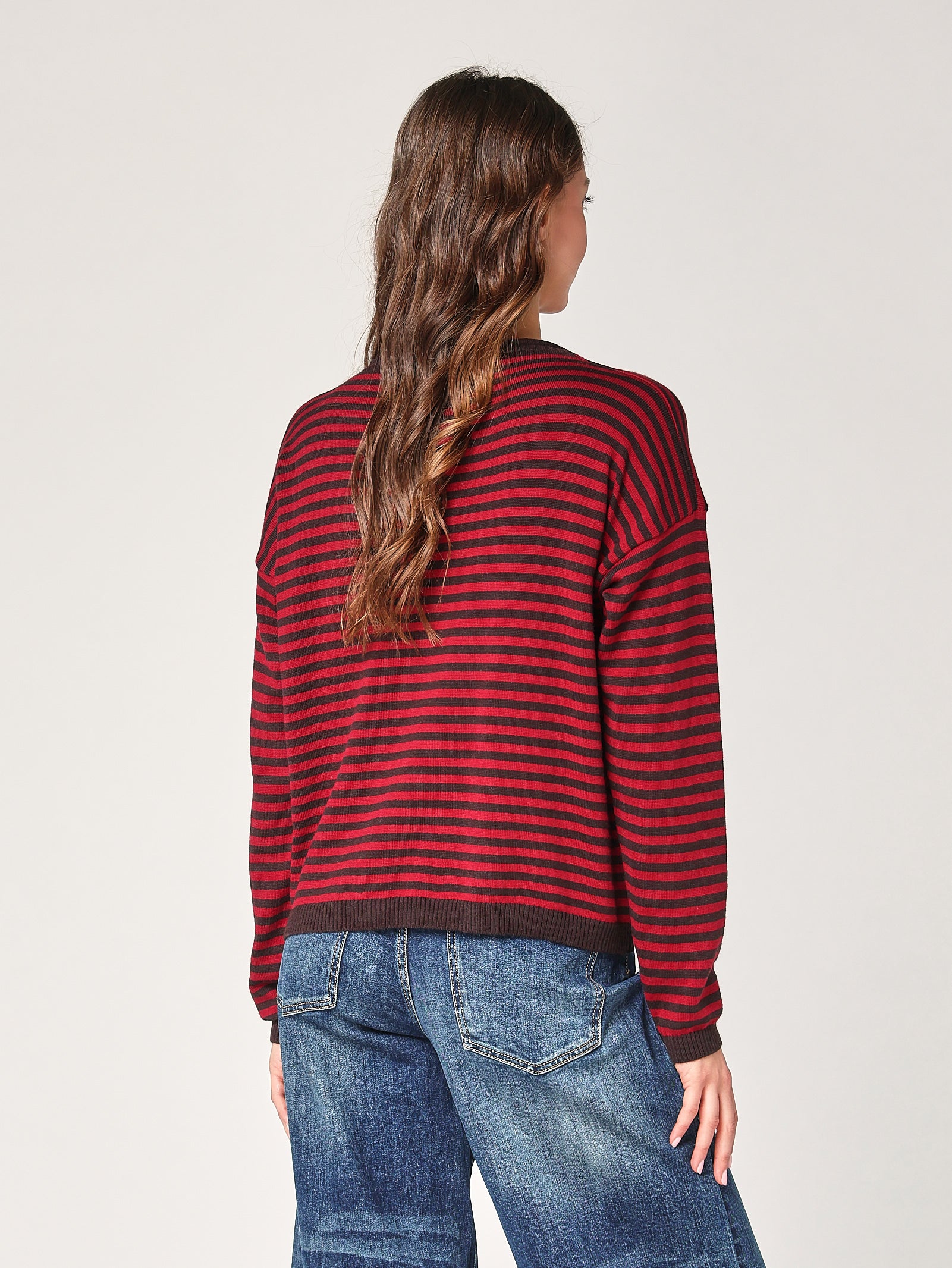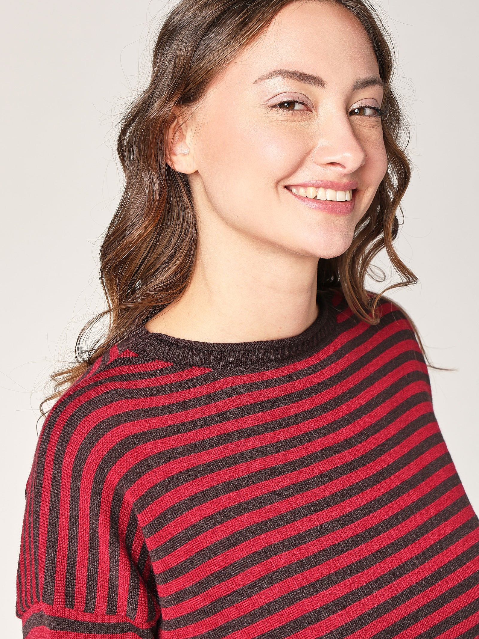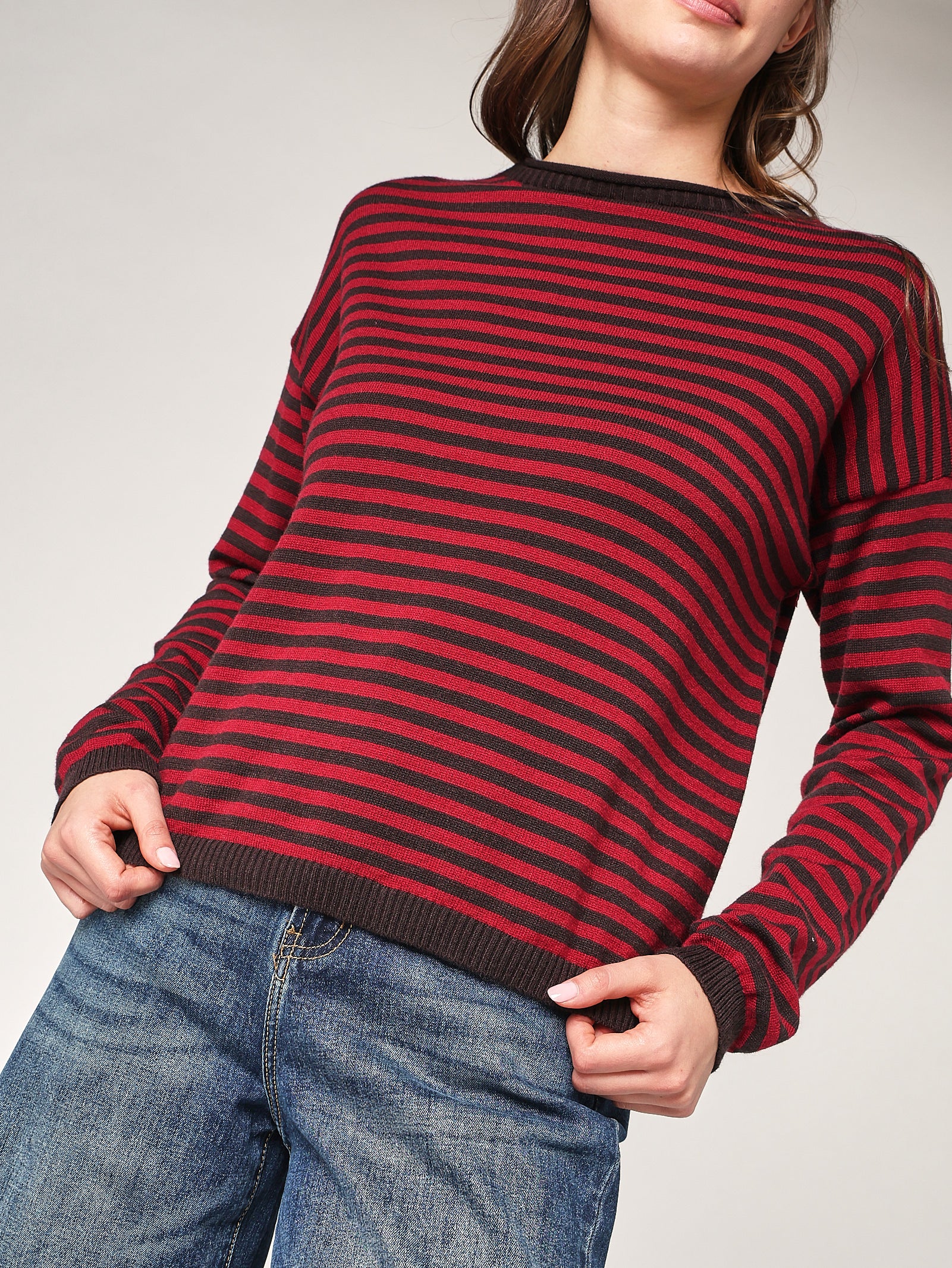 Maglia a righe oversize, ideale per chi ama uno stile rilassato ma curato. Il taglio ampio e il tessuto morbido assicurano comfort assoluto, mentre le righe aggiungono un tocco grafico e moderno.