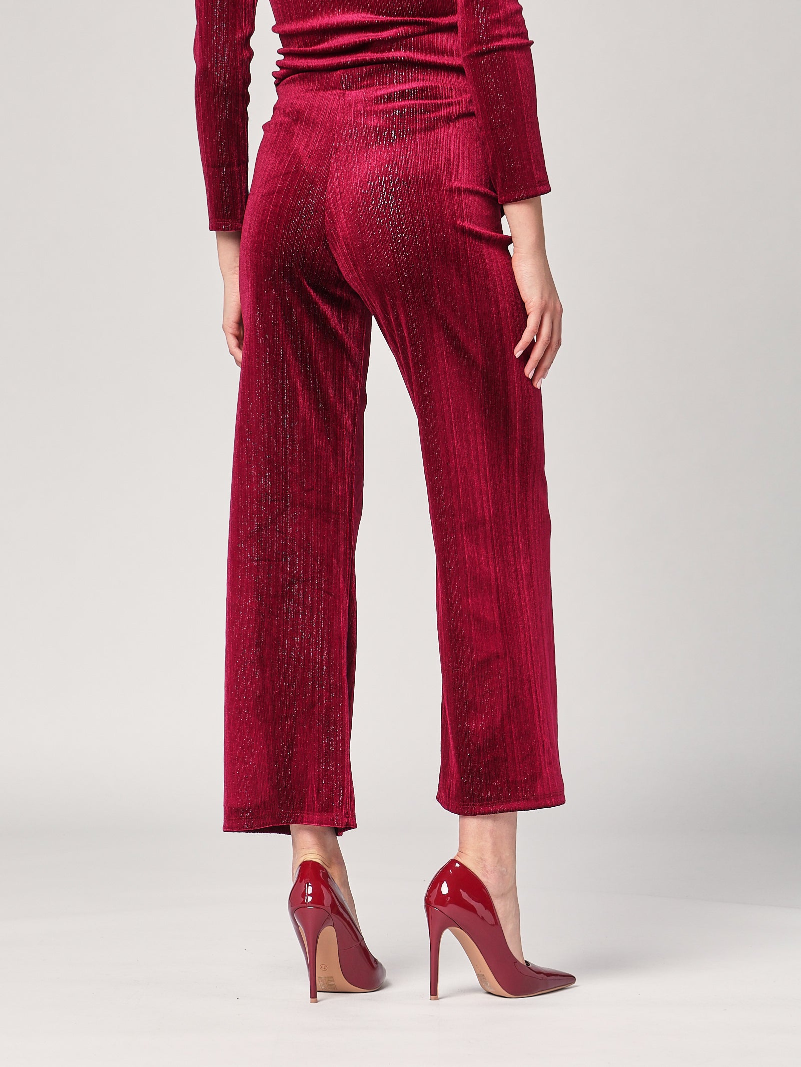Pantalone con righe lurex, un capo che unisce eleganza e luce in perfetto equilibrio. Le righe sottili in lurex slanciano la figura e aggiungono un tocco glamour, mentre la linea morbida garantisce comfort e movimento. Ideale per look serali o outfit da giorno curati nei dettagli.