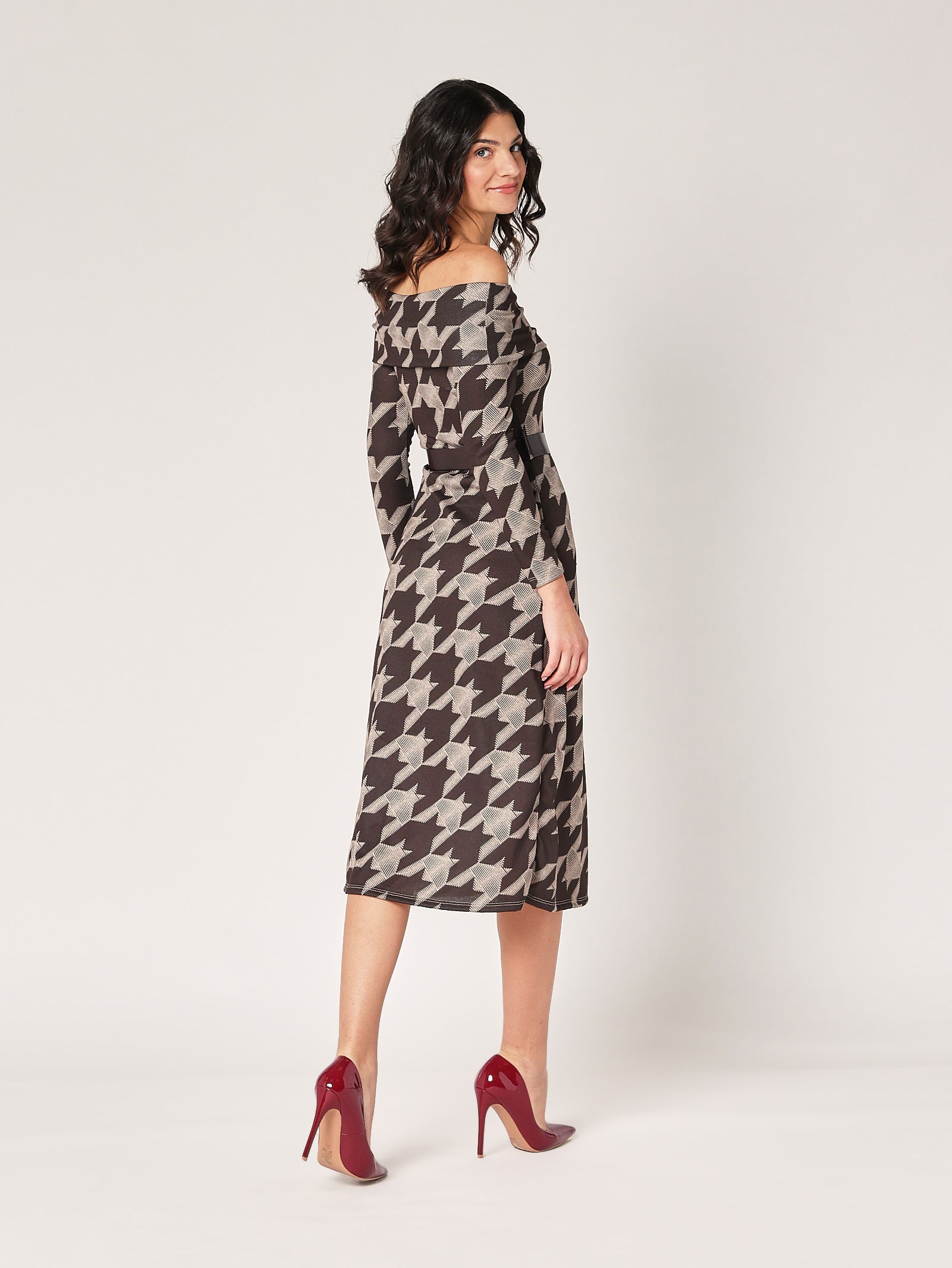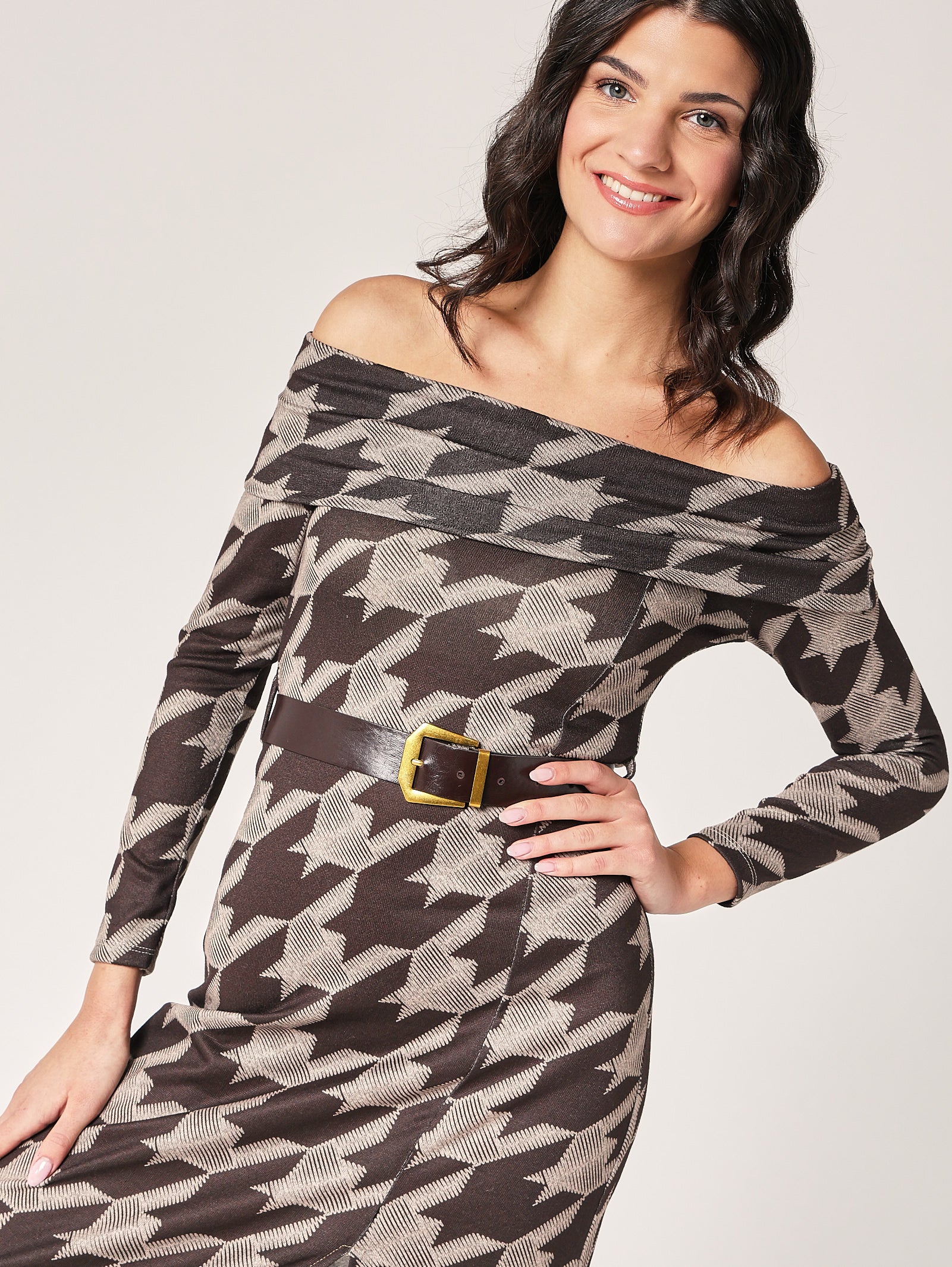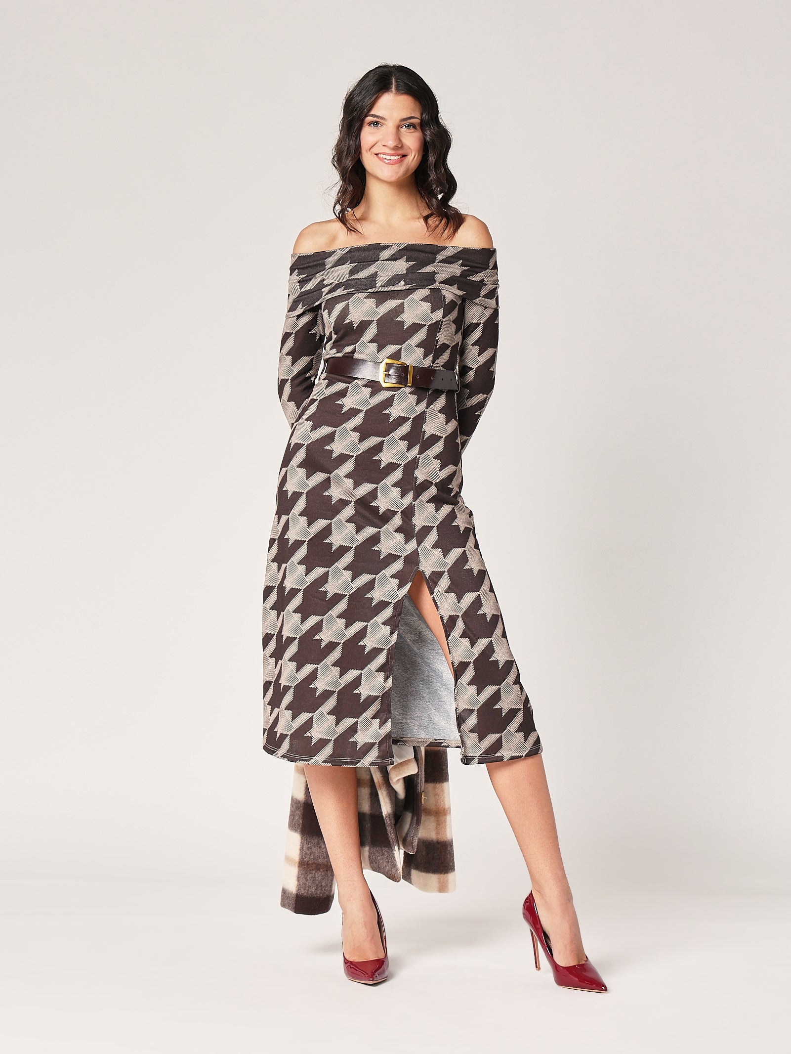 Raffinato, morbido e pieno di personalità. Il pied de poule in tonalità cacao scalda i look e aggiunge un tocco rétro super chic. È l’abito che scegli quando vuoi essere comoda ma sembrare pronta per una sfilata.