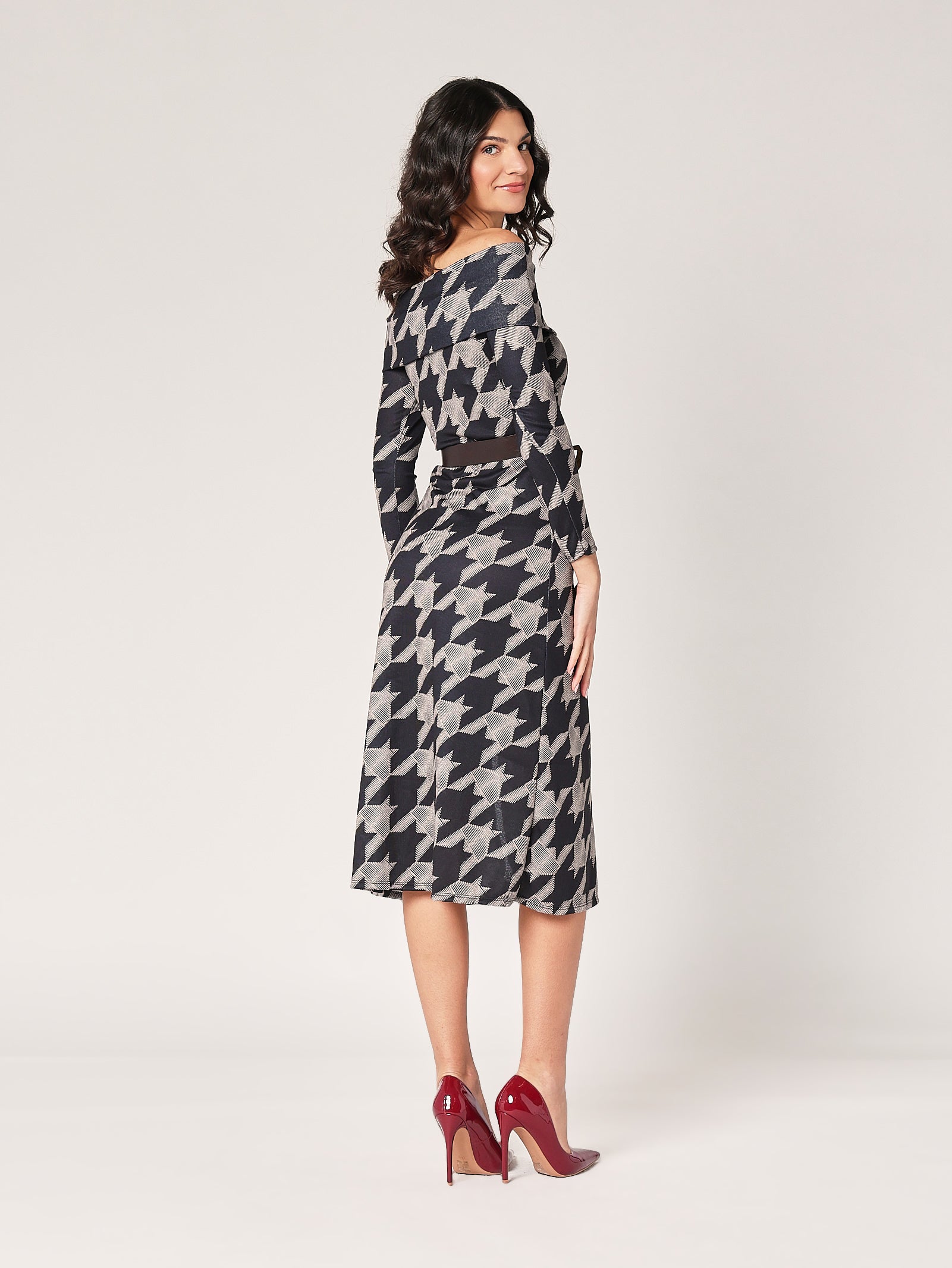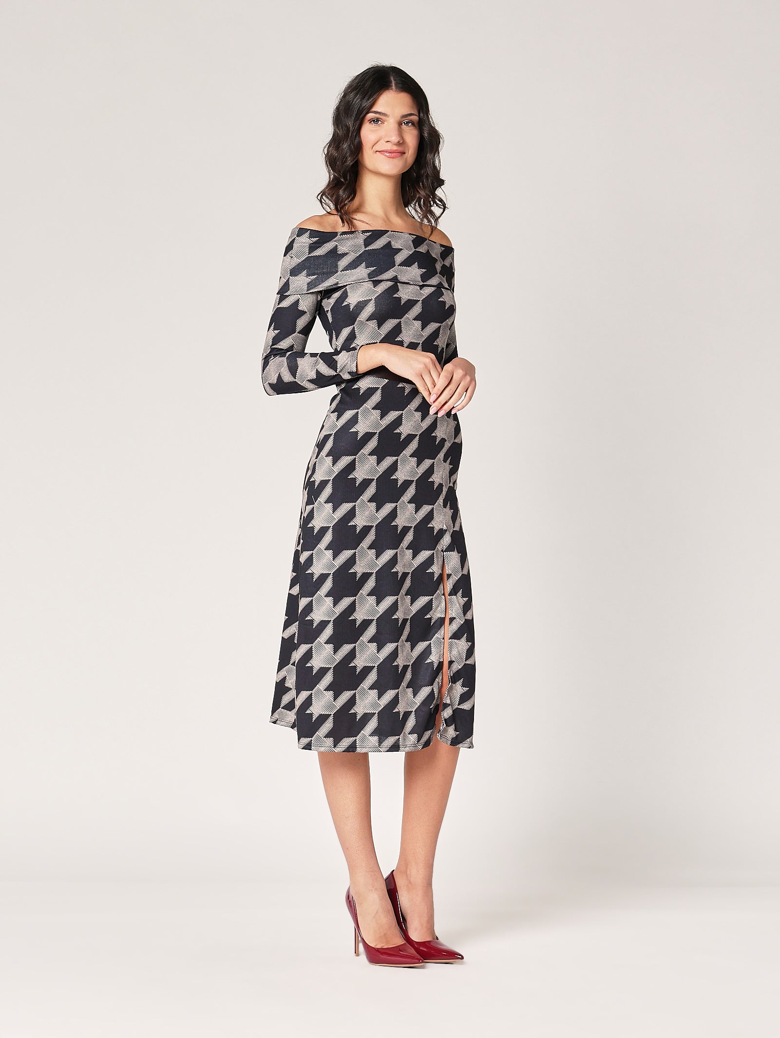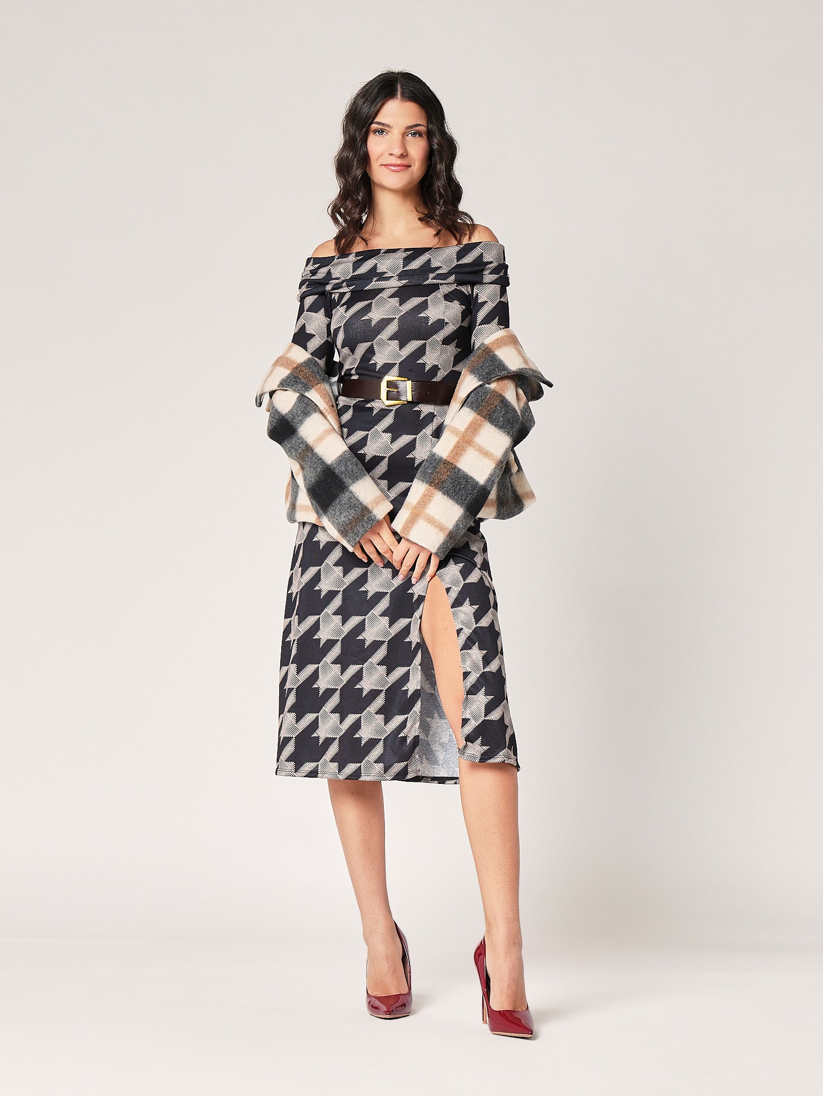 Classico intramontabile, ma con spirito monello. L’abito in pied de poule nero valorizza le forme con eleganza e grinta, perfetto da giorno con stivali o di sera con un tacco deciso. Ha quel fascino vintage che non passa mai di moda.
