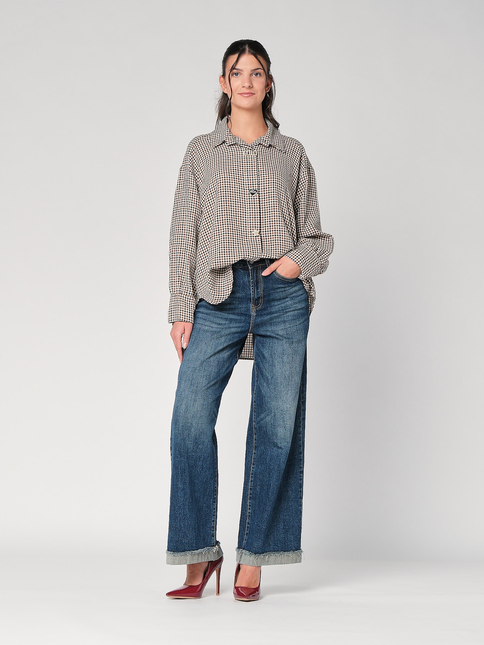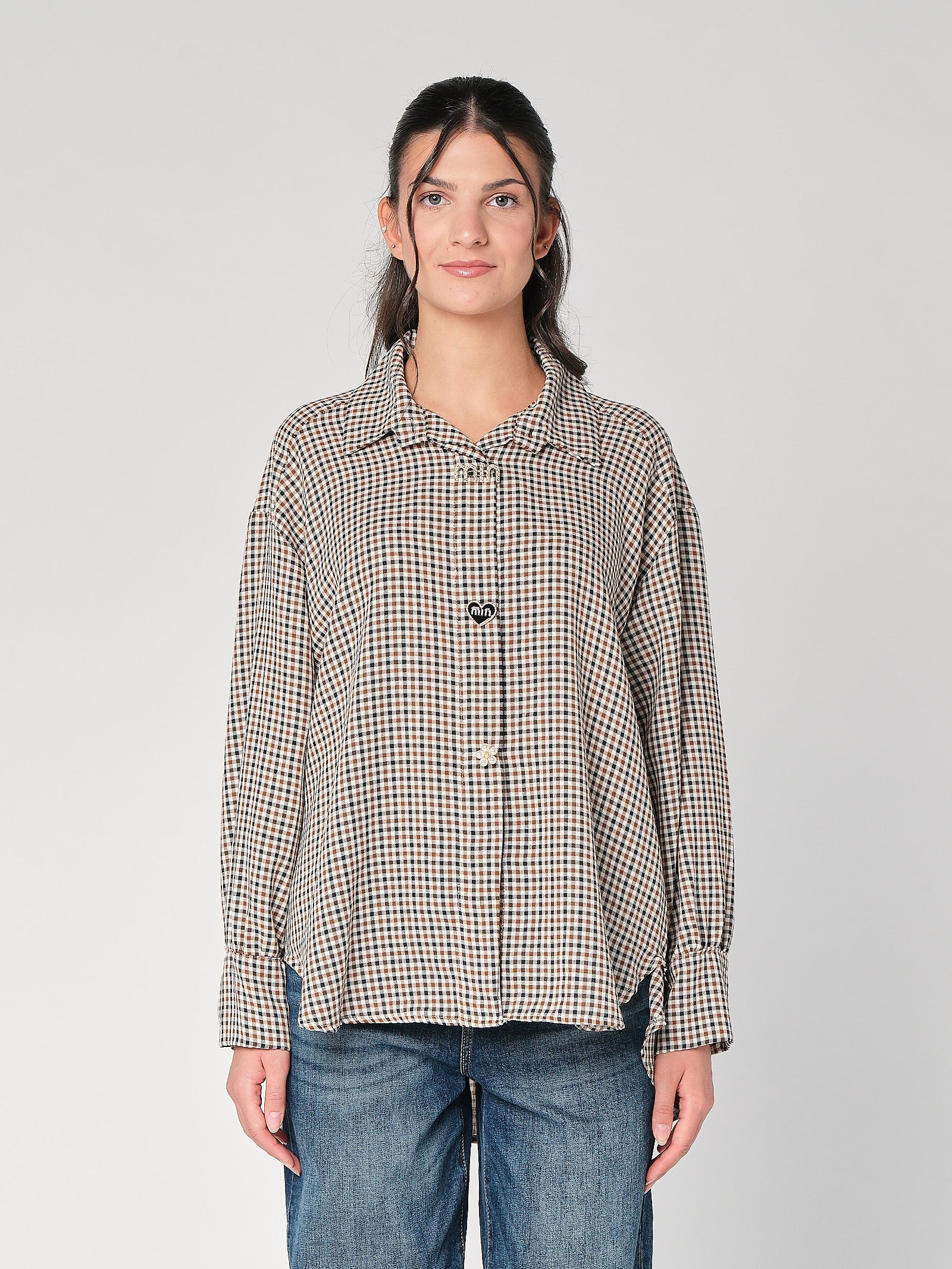 Camicia a quadretti dal fascino contemporaneo, arricchita da spille decorative che aggiungono un tocco originale e ricercato. Il taglio morbido e la linea dritta la rendono comoda e facile da abbinare, perfetta sia per look casual che più fashion. Indossala con jeans, pantaloni eleganti o gonne midi per creare outfit sempre diversi e curati.