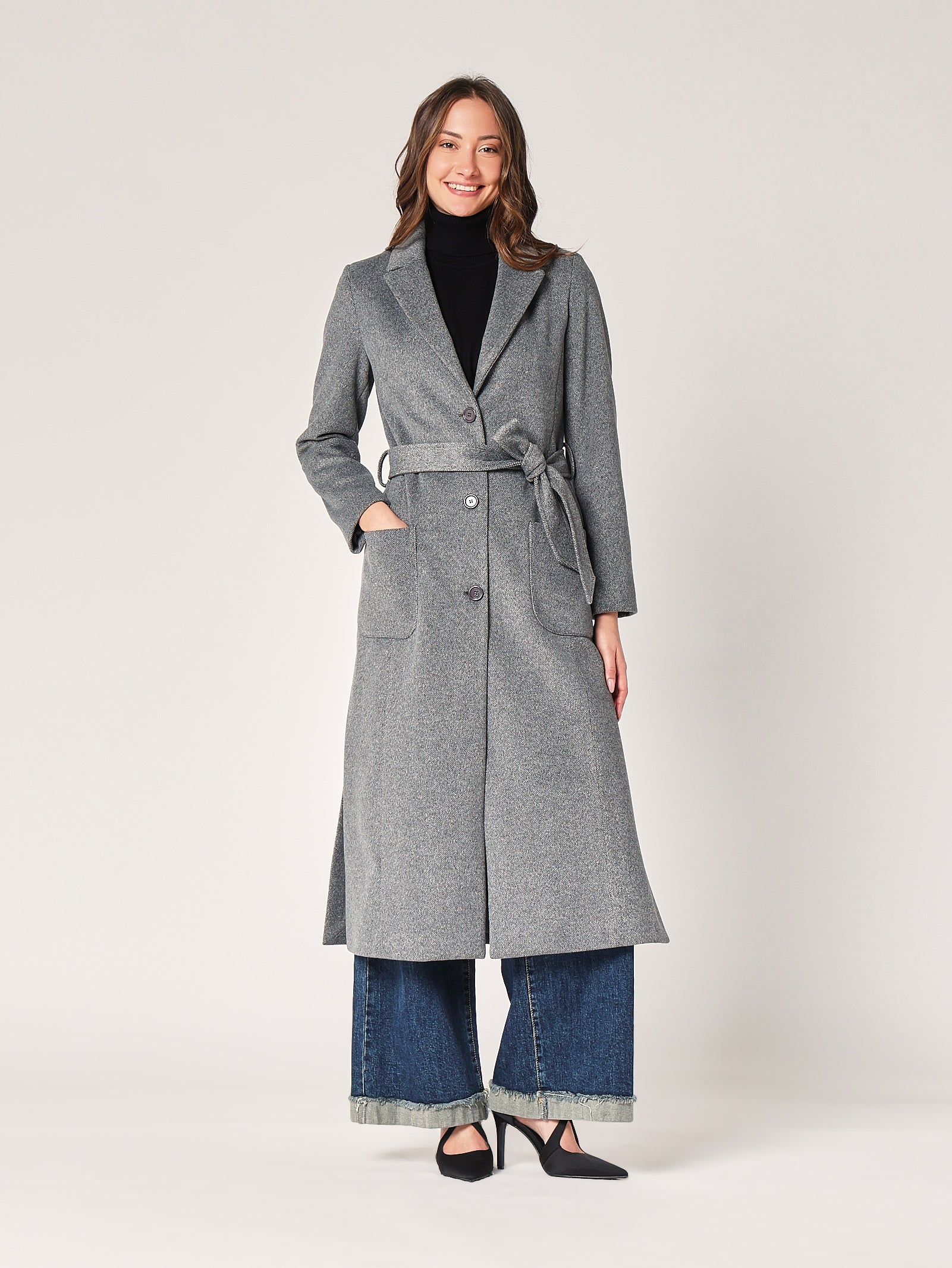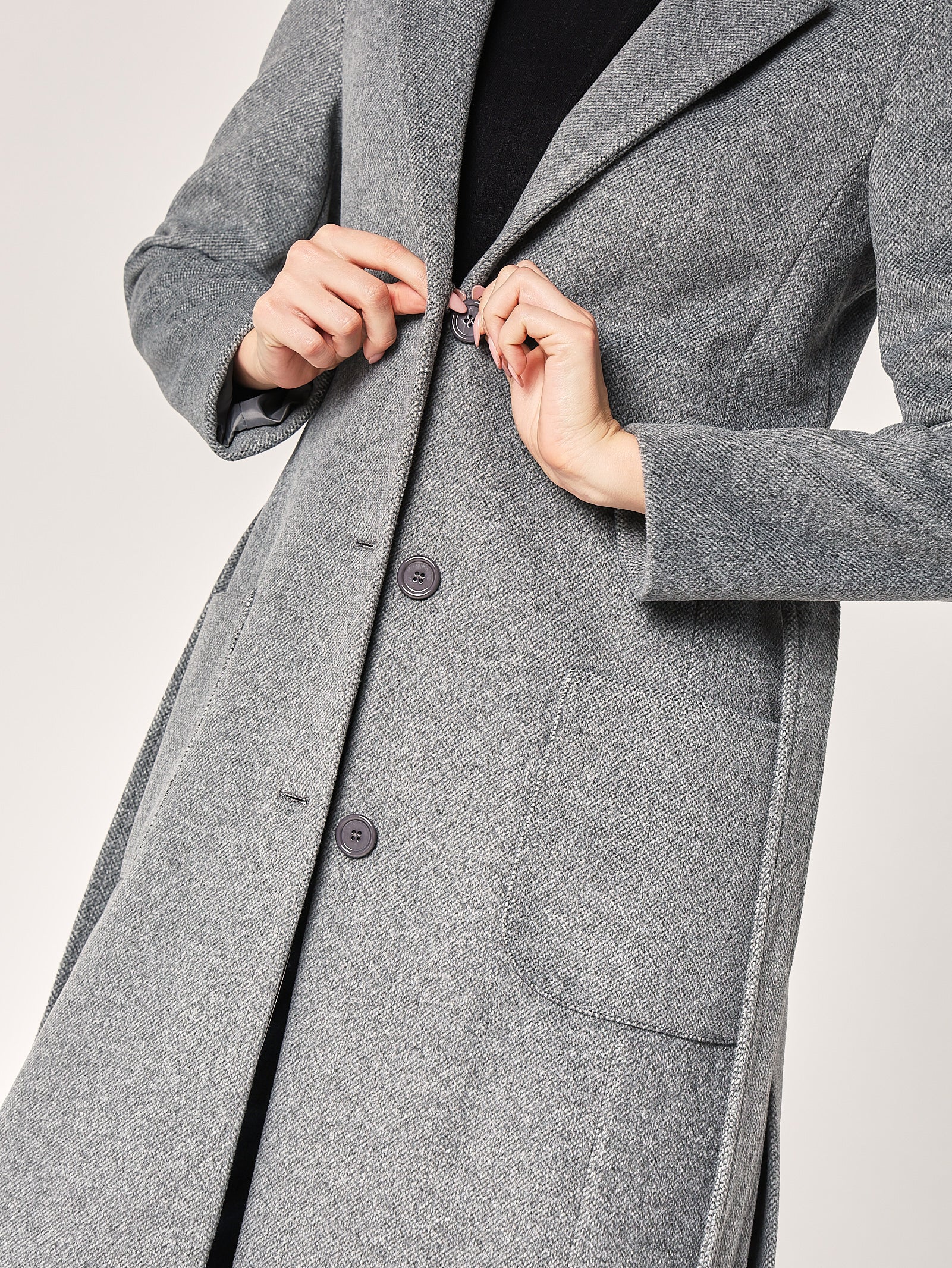 Un tono neutro, una linea pulita e tanto stile. Il cappotto grigio con spacchi laterali scivola sul corpo con naturalezza, donando un’aria sofisticata anche al look più semplice. Perfetto per chi ama la sobrietà ma non rinuncia al fascino.