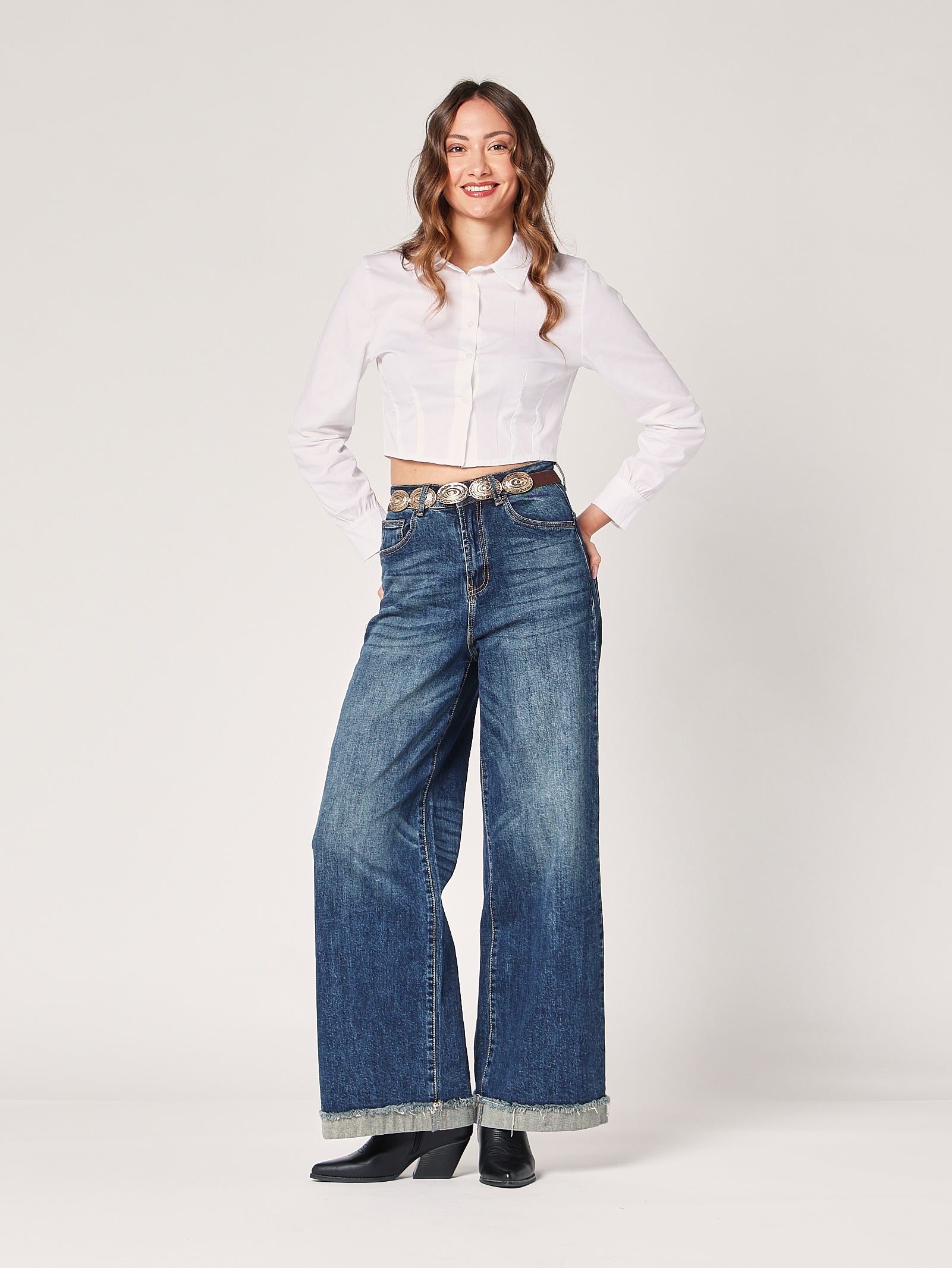 Cintura con fibbia decorativa, un accessorio essenziale che definisce il punto vita con stile. La fibbia lavorata aggiunge un dettaglio sofisticato, mentre il materiale resistente garantisce una perfetta vestibilità. Un tocco di carattere per completare outfit eleganti o casual con personalità.