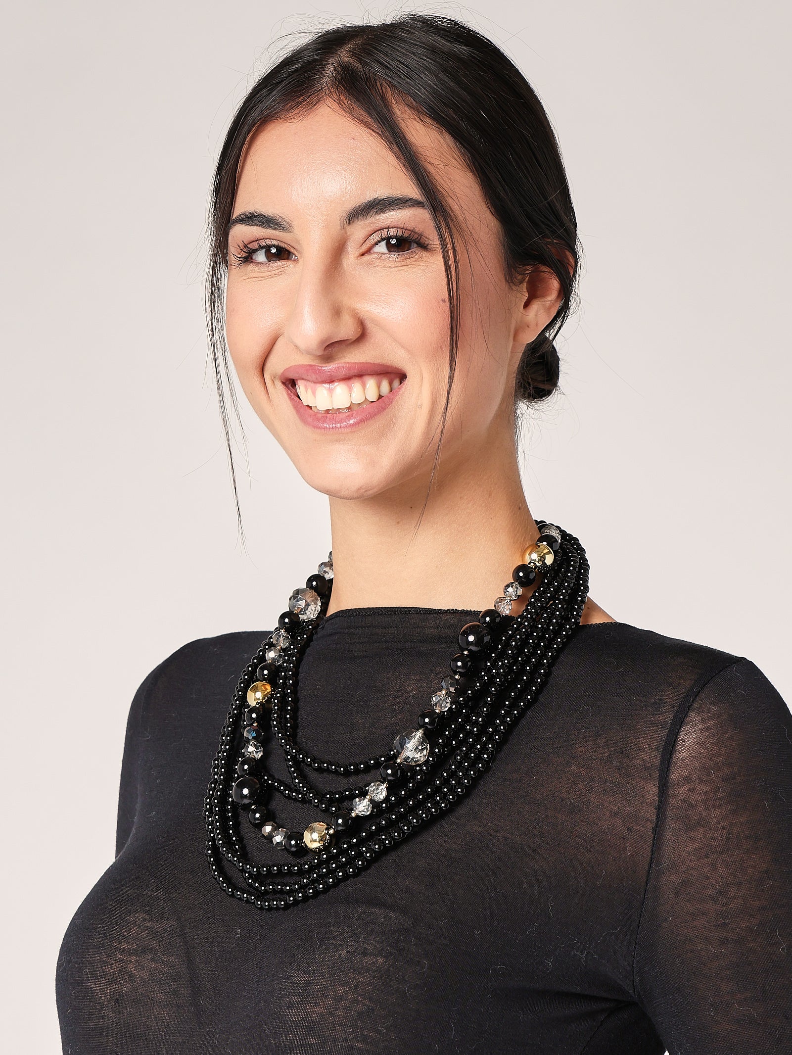 Collana dal design raffinato con piccoli pendenti decorativi che aggiungono luminosità e movimento. Il mix equilibrato tra semplicità e brillantezza la rende perfetta per valorizzare scollature o capi basici, donando al look un tocco elegante ma discreto. Ideale da indossare da sola o abbinata ad altre collane per uno stile più contemporaneo.