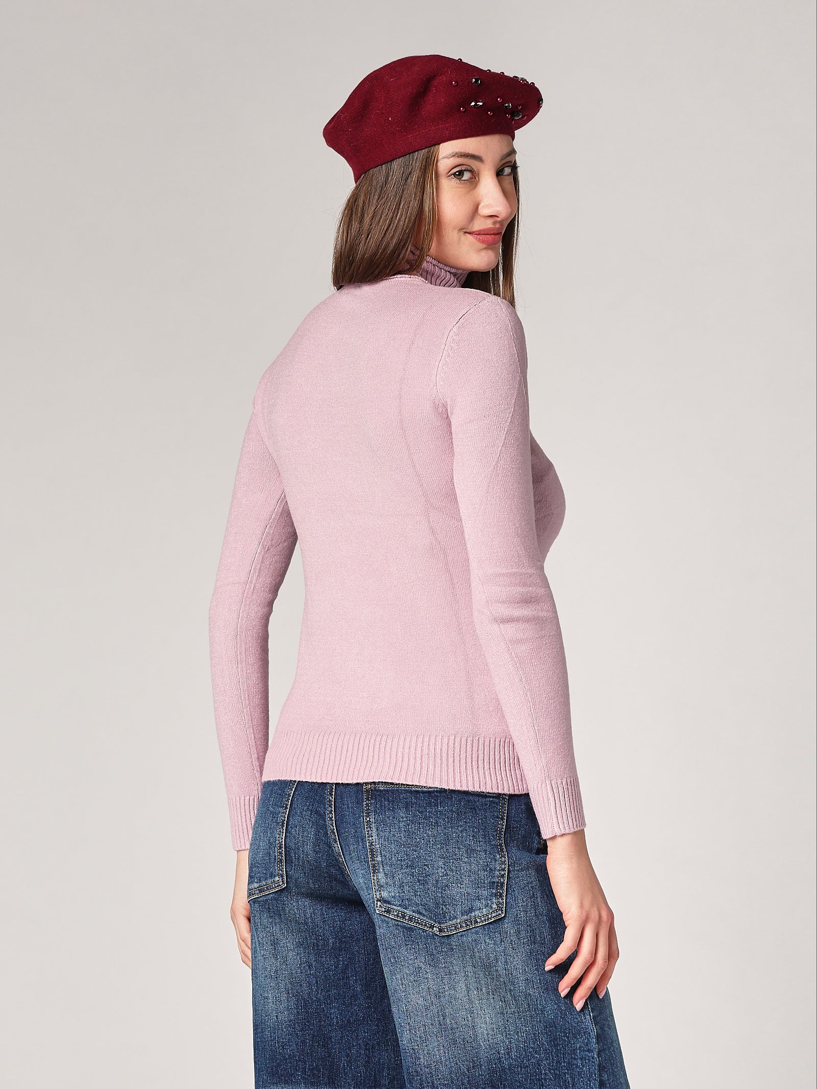 Dolcevita in maglia dal design essenziale e femminile, pensato per offrire una base morbida e versatile per ogni look di stagione. Il collo alto avvolgente e la texture confortevole lo rendono un capo indispensabile per outfit eleganti o casual chic.