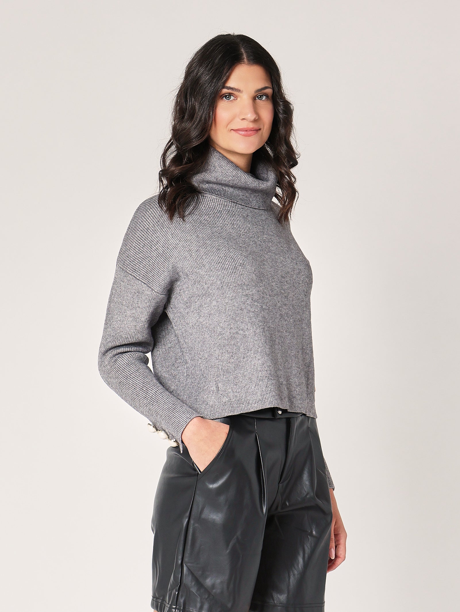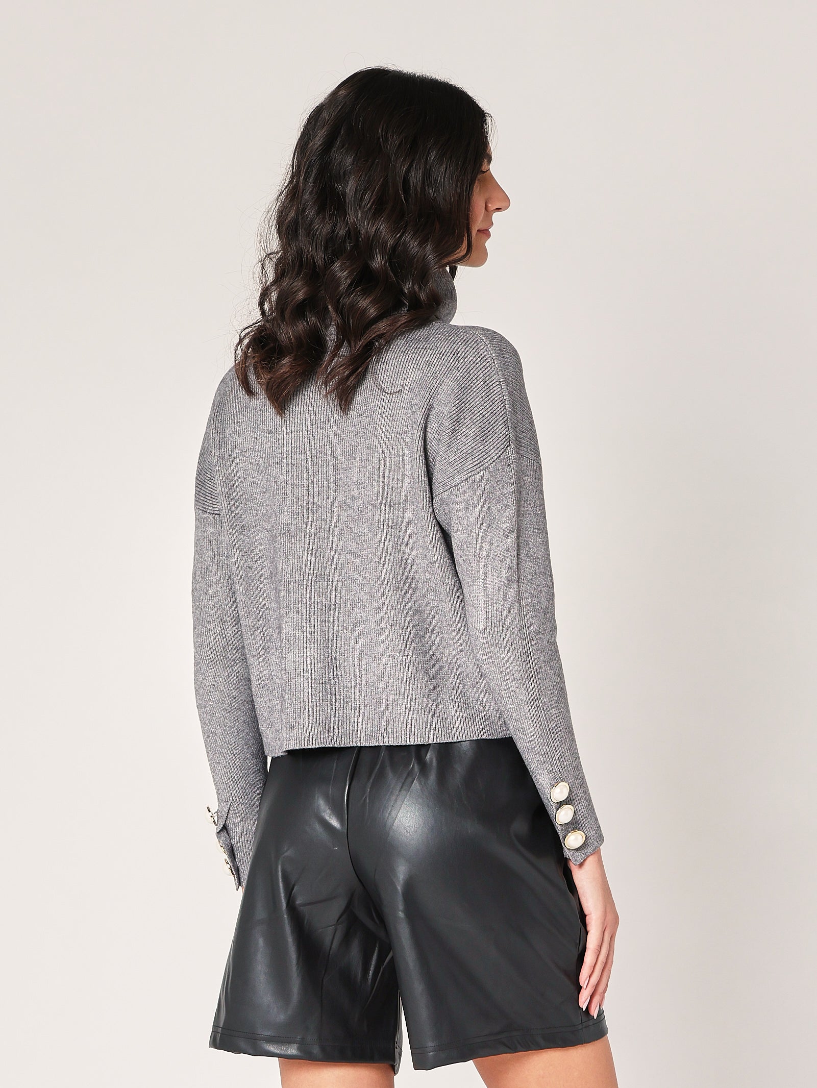 Un equilibrio perfetto tra comfort e stile. I bottoni decorativi regalano un dettaglio discreto ma deciso, che rende questo dolcevita più interessante di quanto sembri. Da indossare con un jeans o sotto un cappotto, è sempre una buona idea.