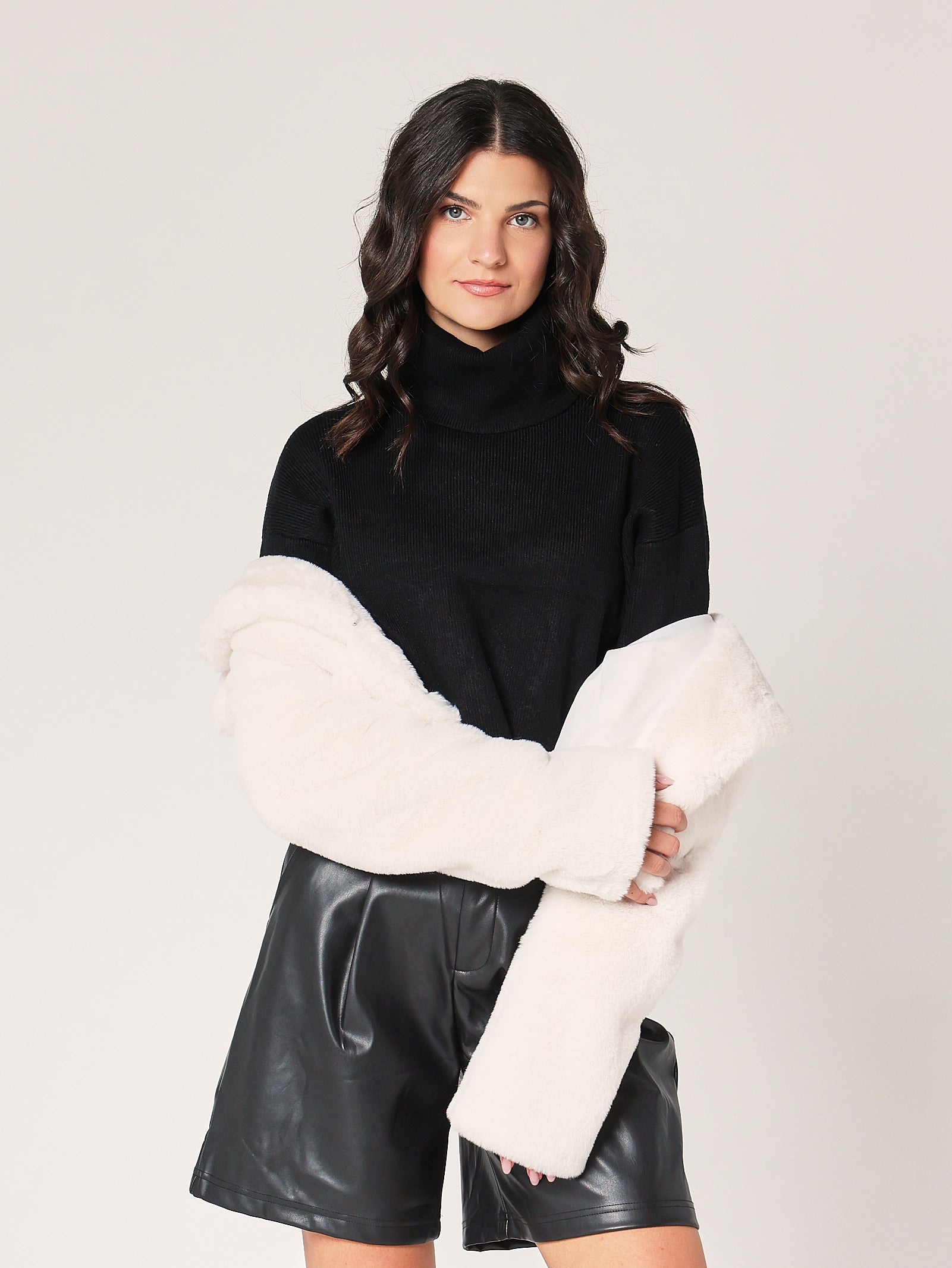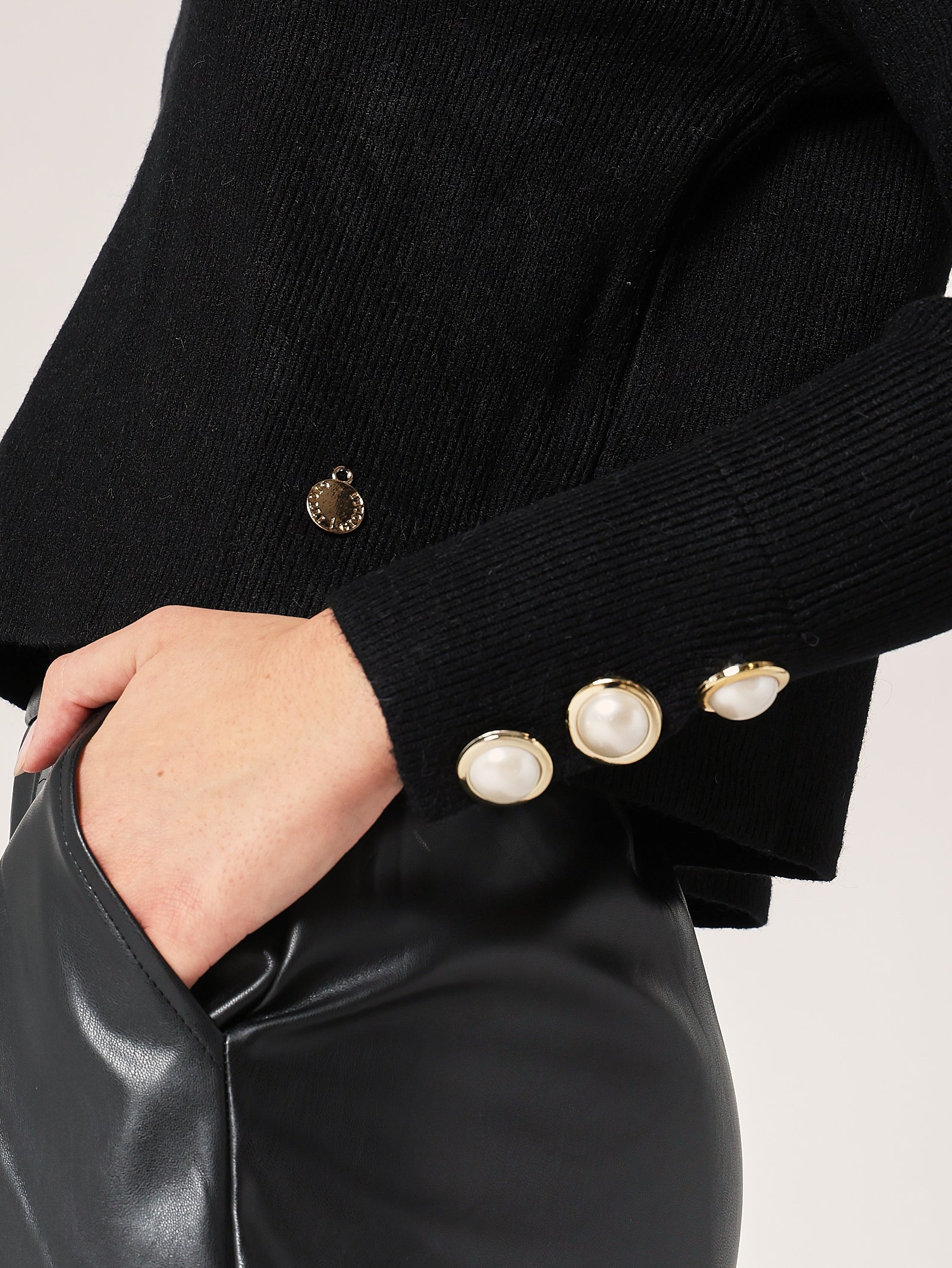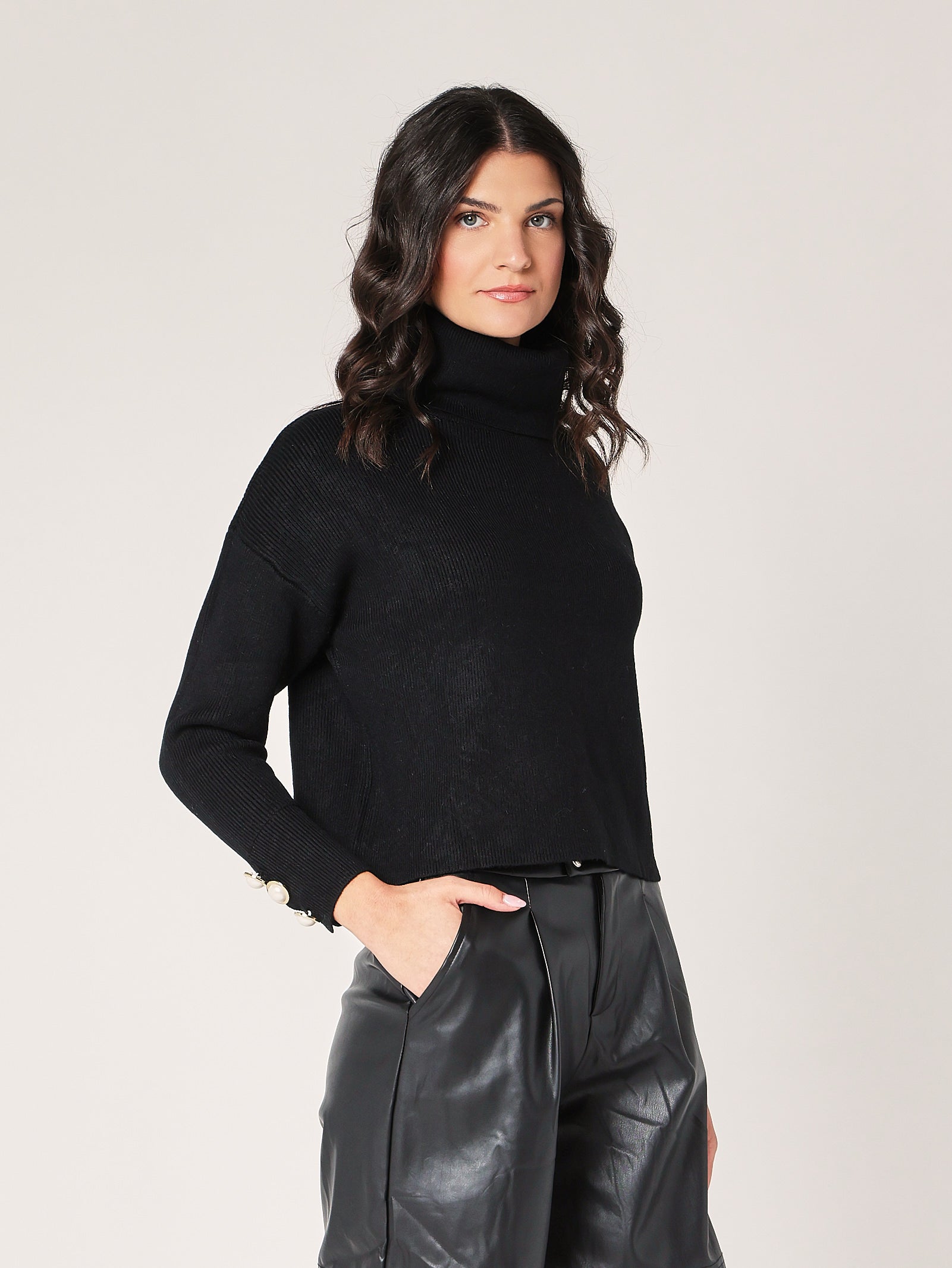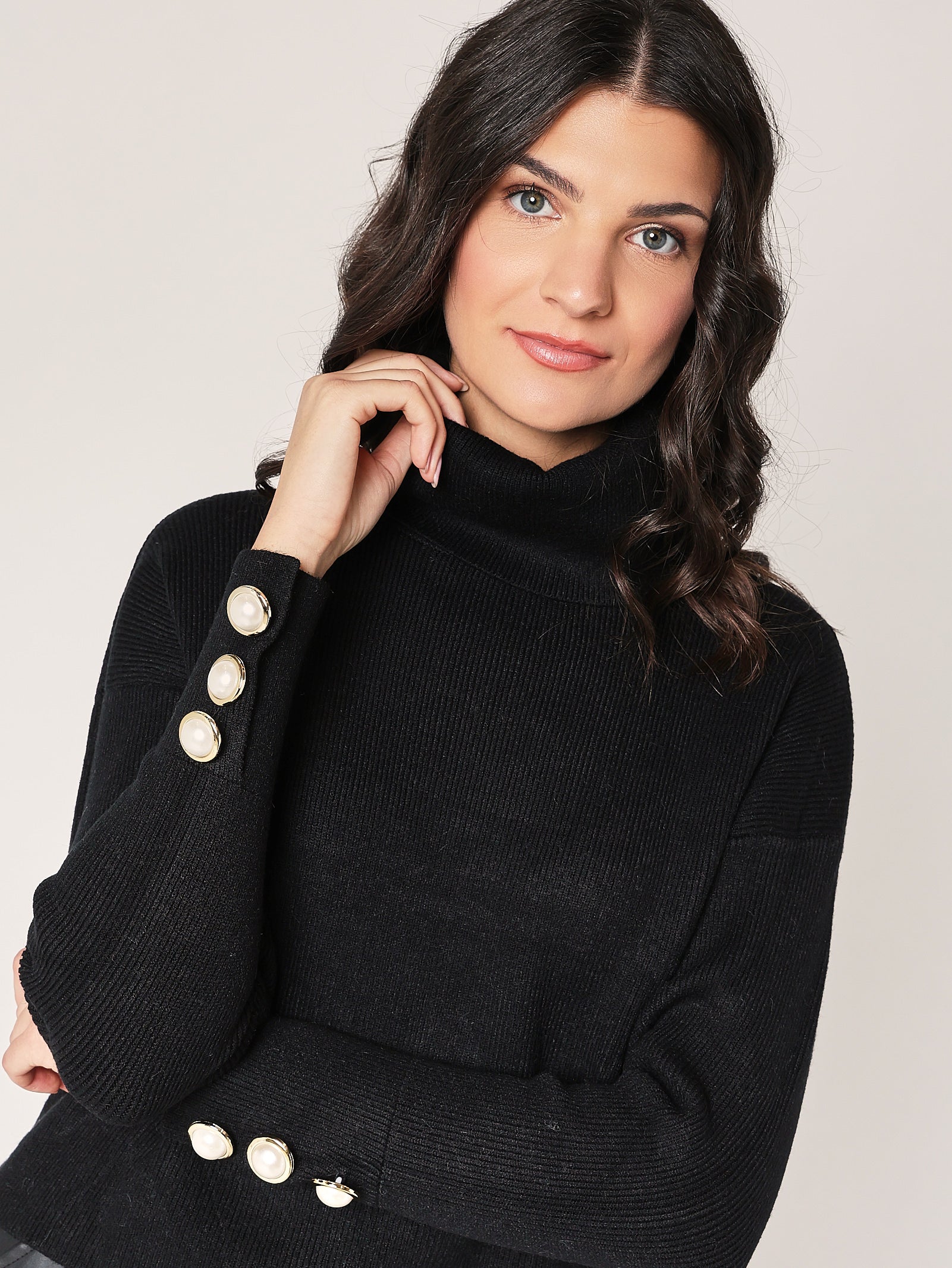 Un evergreen del guardaroba. Il dolcevita nero è sinonimo di eleganza, ma con i bottoni al polso acquista quel pizzico di carattere che lo rende unico. Perfetto per creare look decisi e senza tempo.