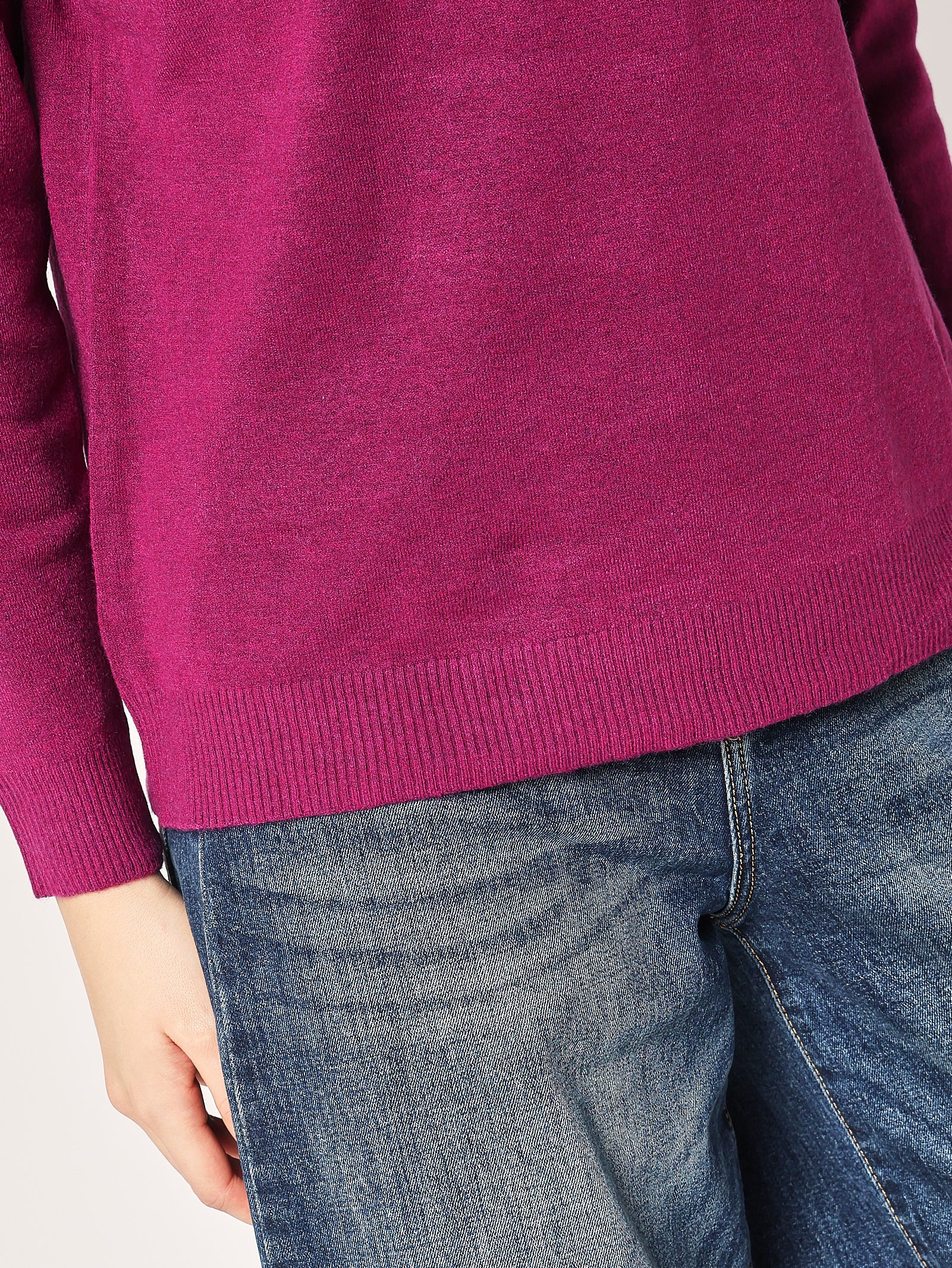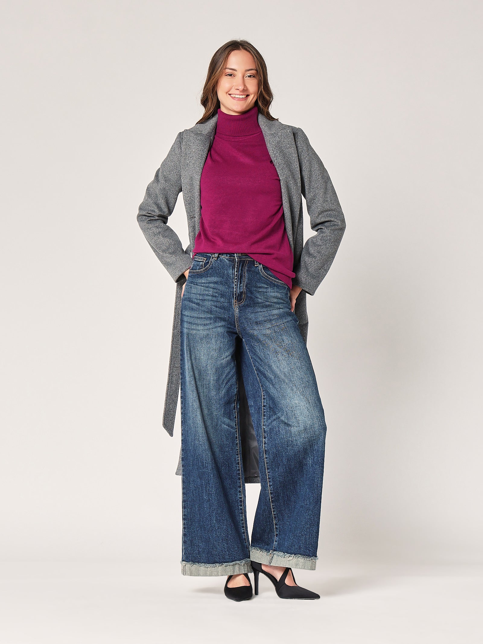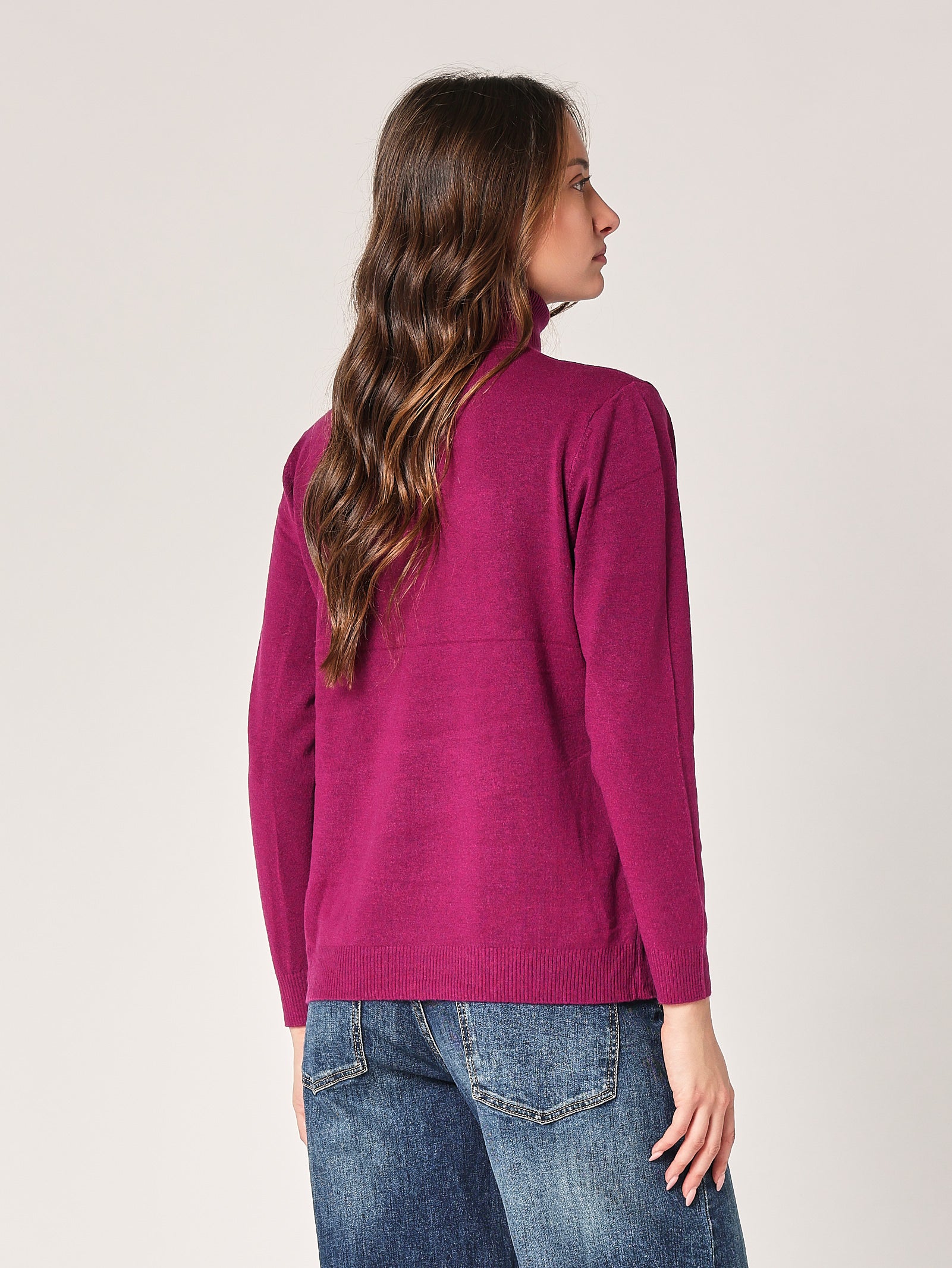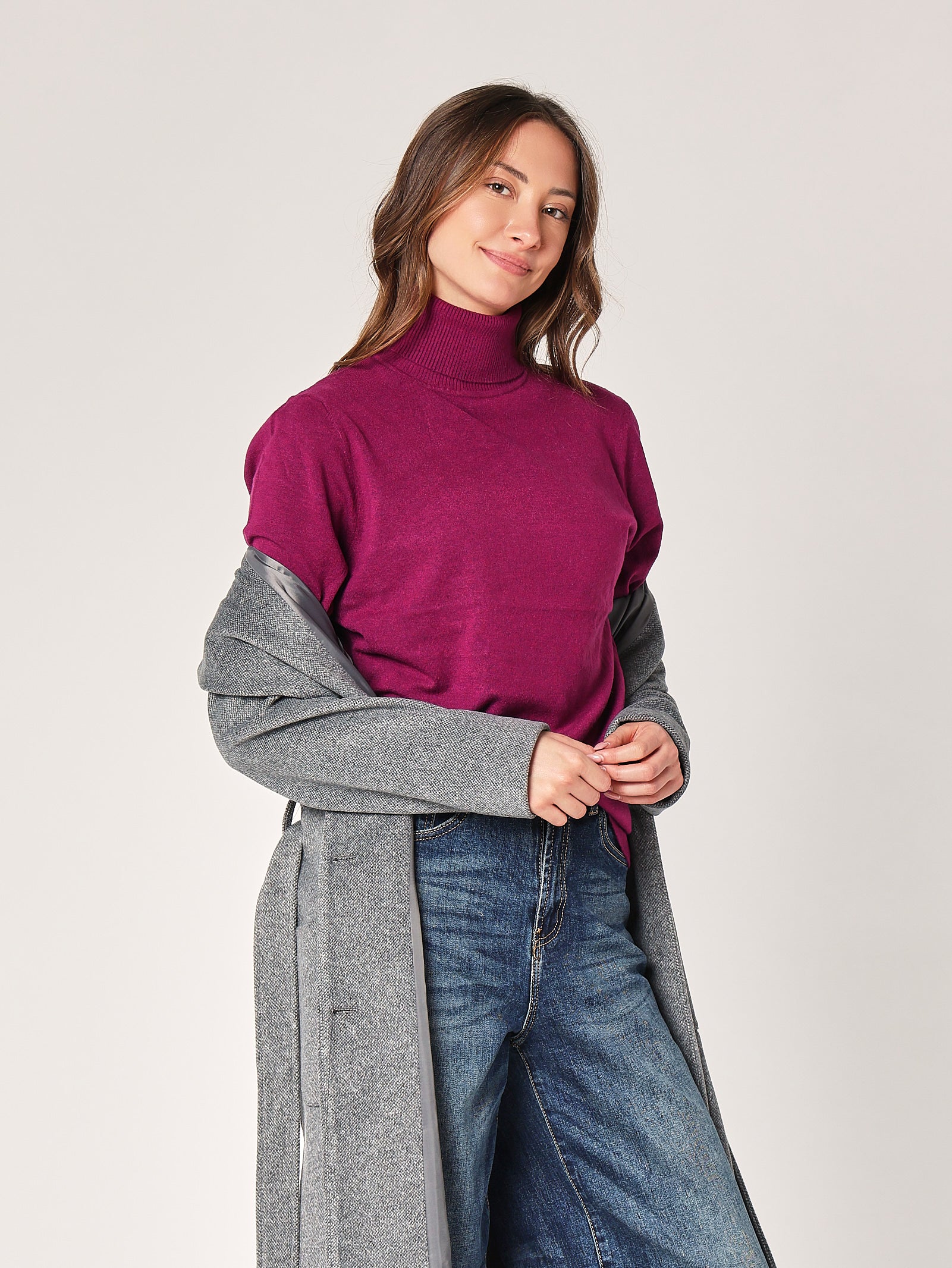 Un tocco di colore per scaldare l’inverno. Il ciclamino accende ogni outfit e trasforma questo dolcevita over in un capo pieno di energia. Perfetto per chi non vuole passare inosservata, ma sempre con stile.