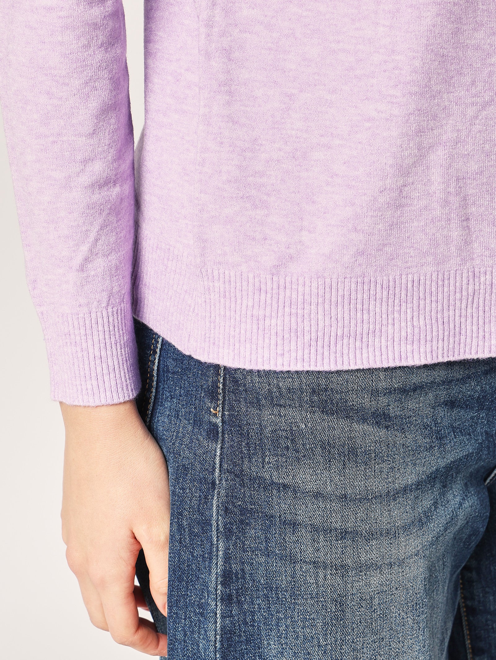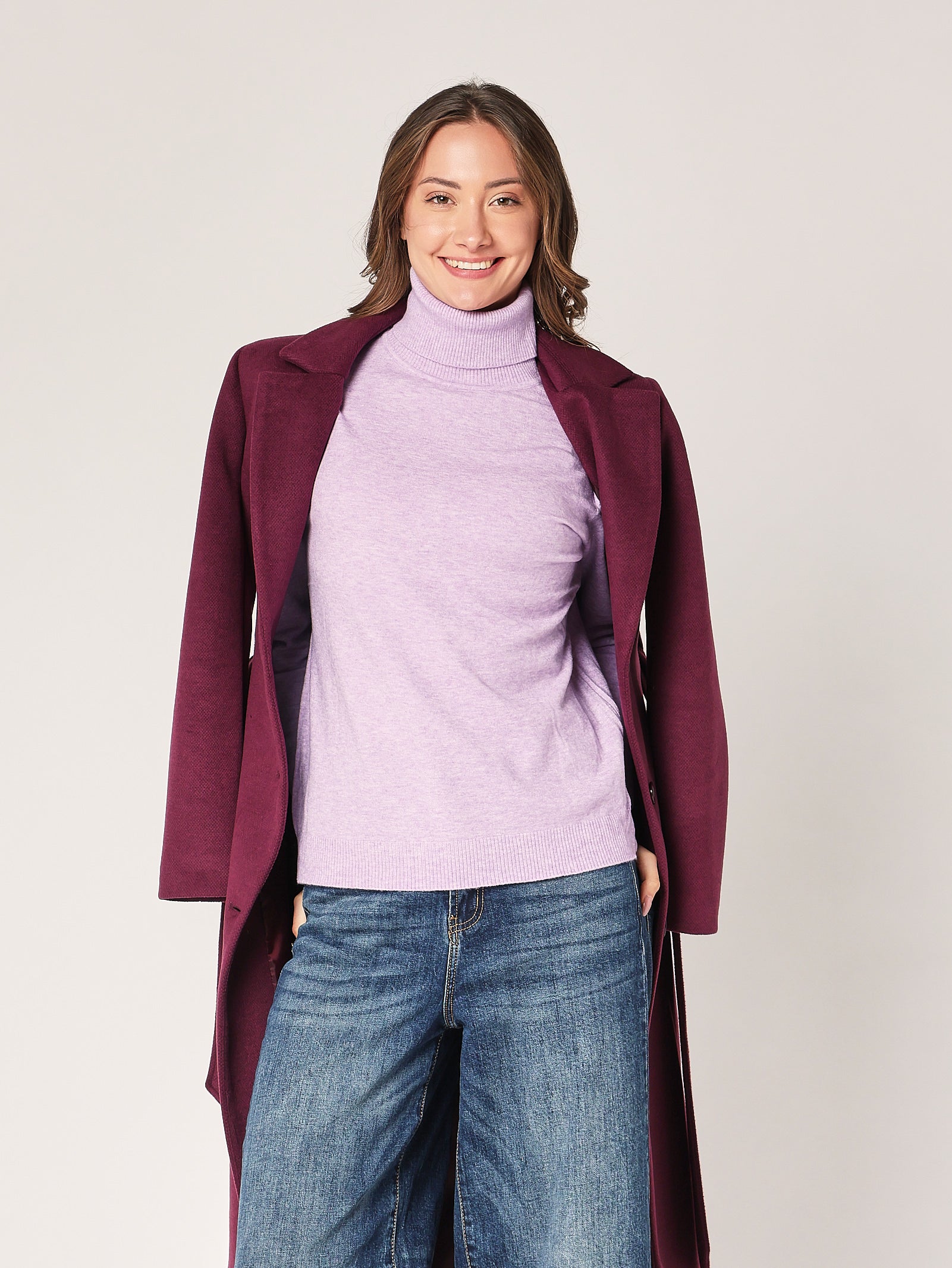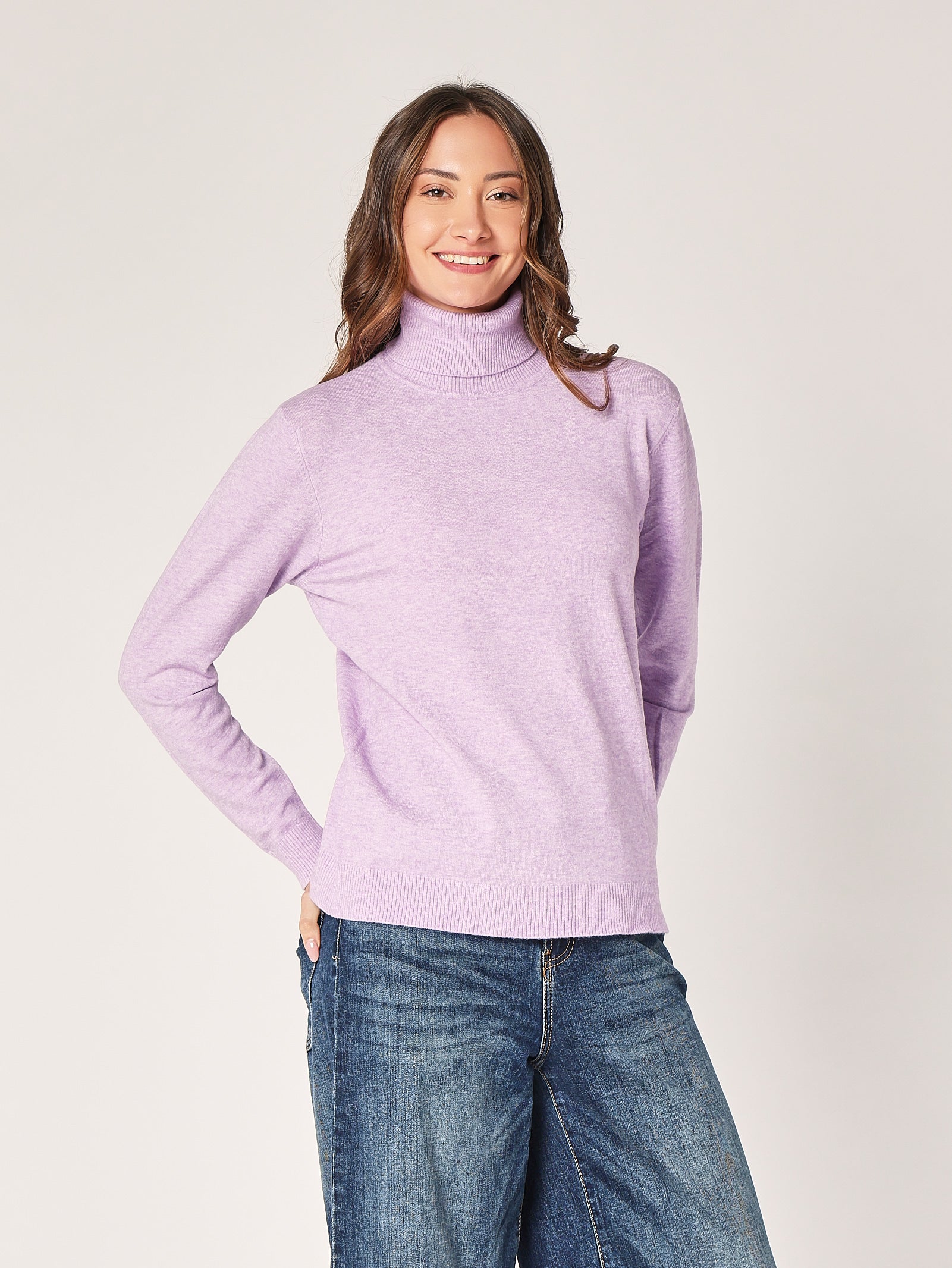 Dolce, delicato e super trendy. Il lilla di questo dolcevita over dona luce al viso e un’aria fresca a qualsiasi look. Soffice e versatile, è la coccola colorata che mancava al tuo guardaroba.