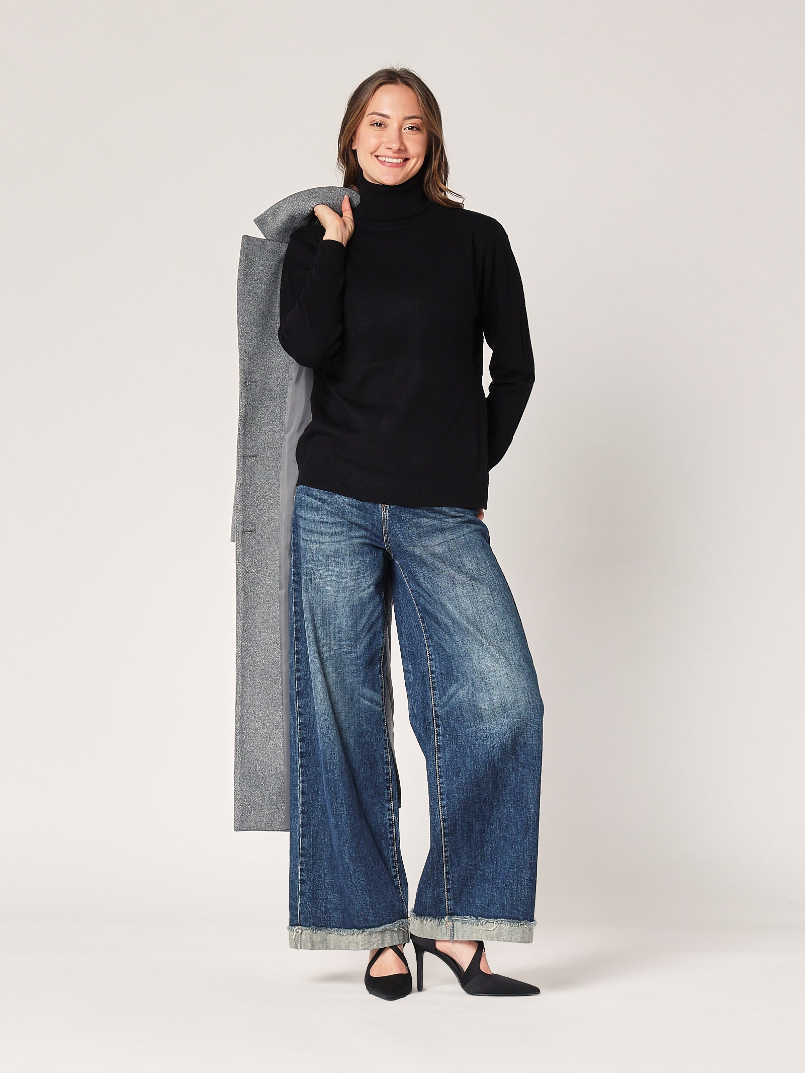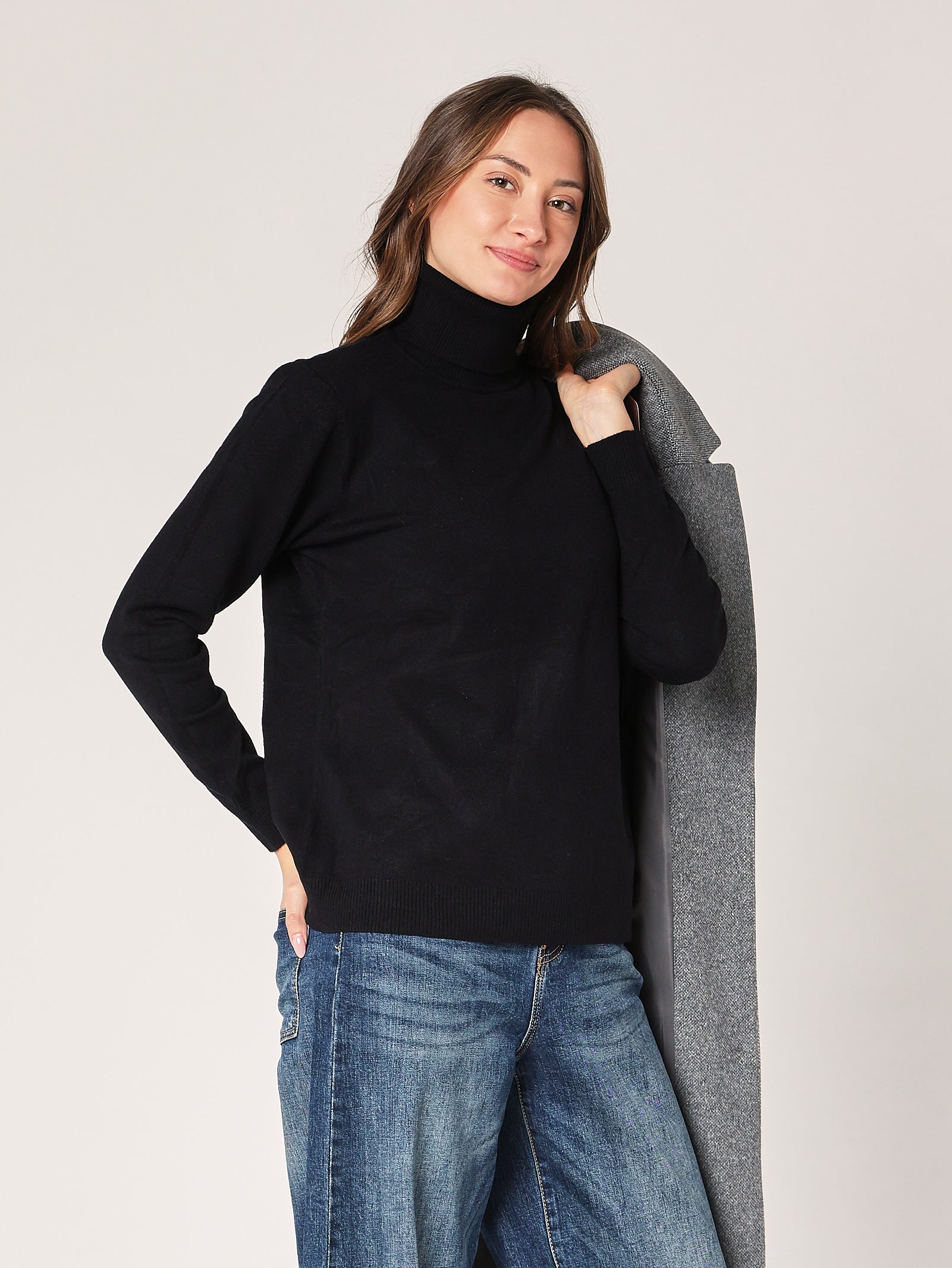 Ampio, morbido e dal fascino minimal. Il dolcevita over nero è l’alleato perfetto per chi ama i look rilassati ma sofisticati. Ti avvolge senza appesantire, regalandoti un’eleganza naturale che si nota anche da lontano.