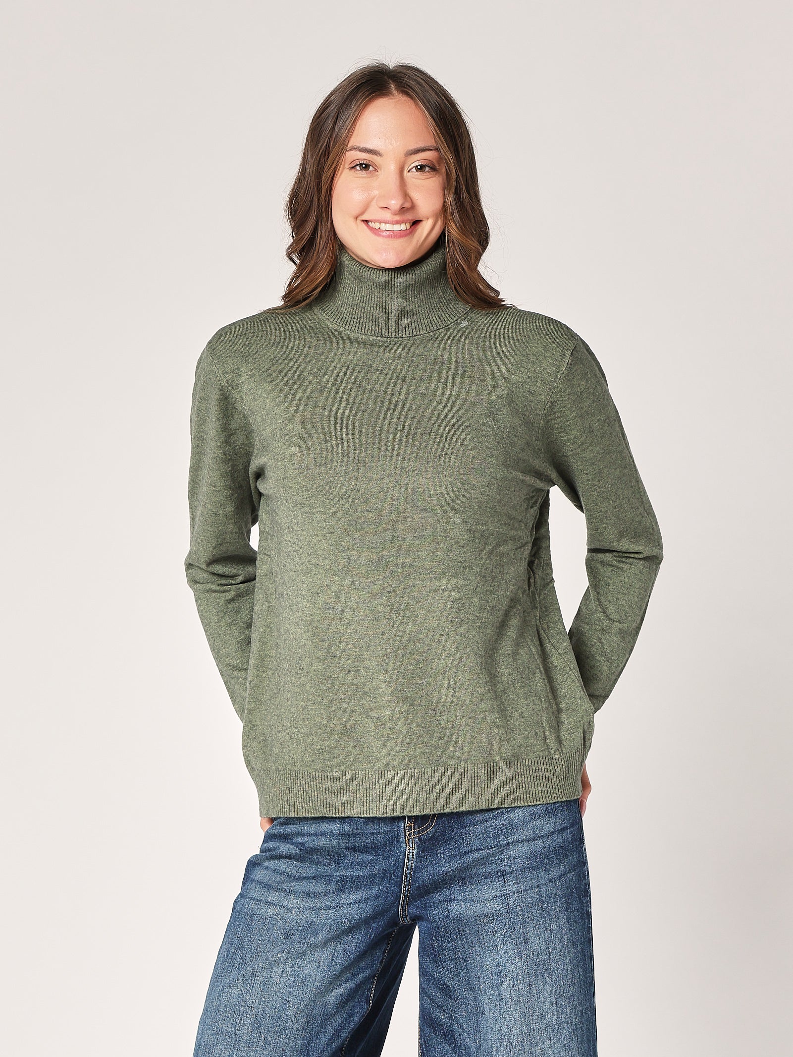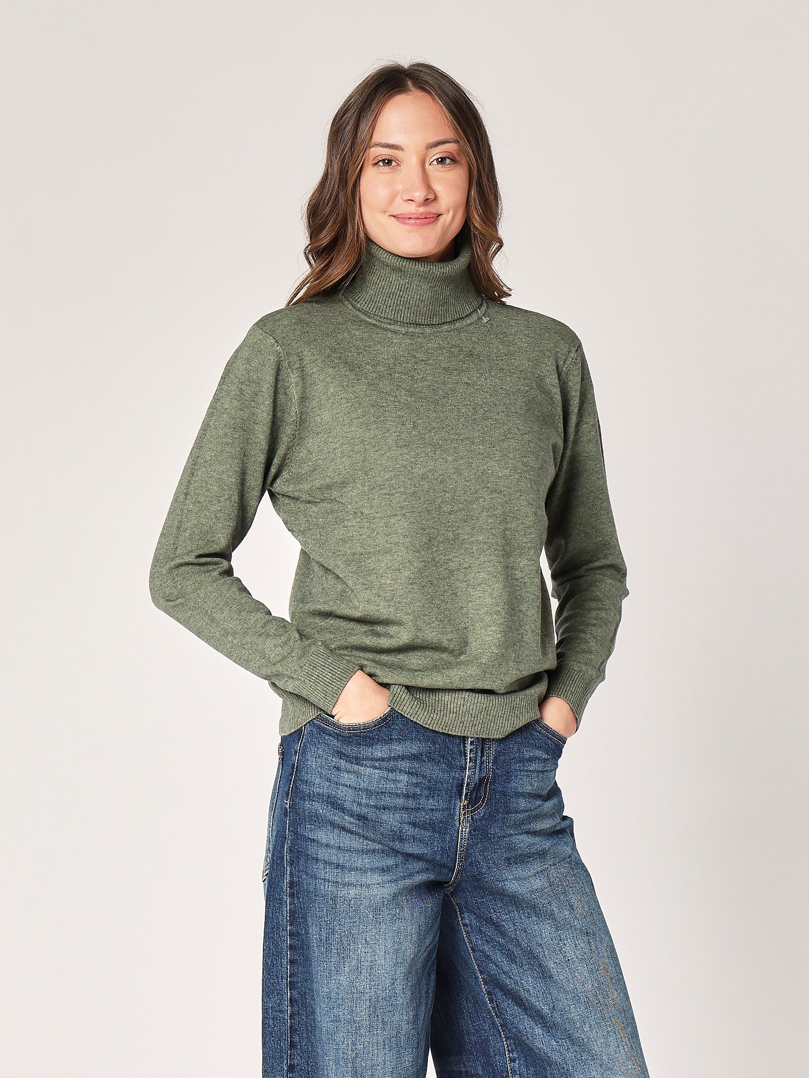 Verde come la voglia di novità. Il dolcevita over in questa tonalità energica è il capo che cambia l’umore di un intero outfit. Morbido, caldo e disinvolto, porta un tocco di personalità anche nei look più semplici.