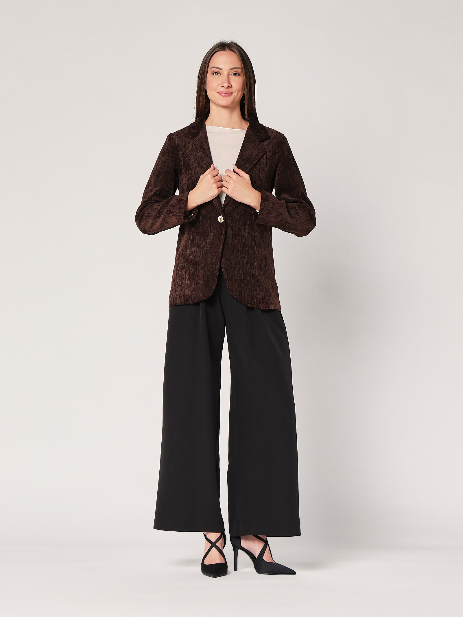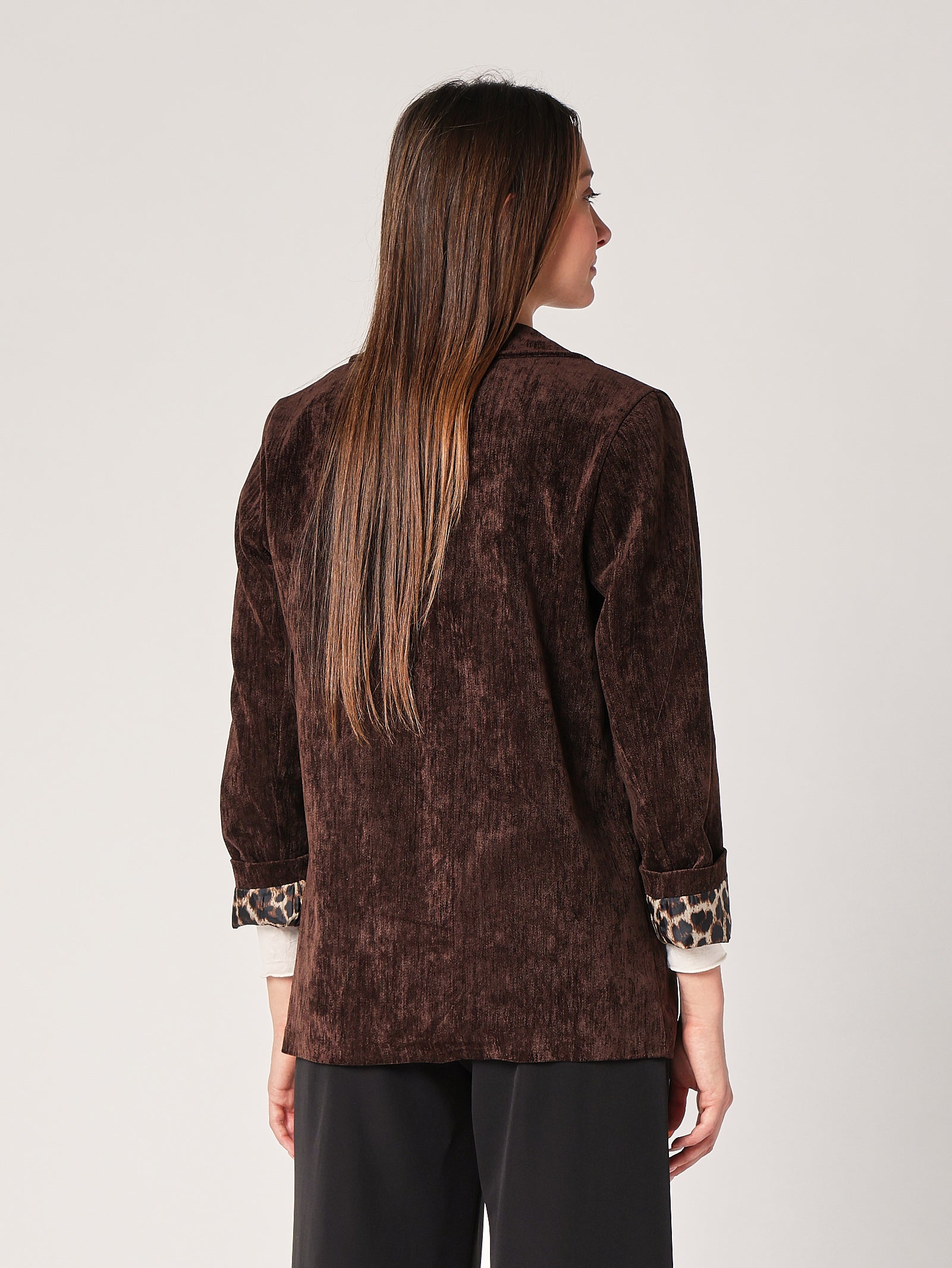 Giacca con fodera leopardata, un capo grintoso e raffinato allo stesso tempo. All’esterno mantiene linee pulite e una vestibilità regolare, mentre all’interno nasconde un dettaglio animalier che aggiunge carattere e personalità. Perfetta per look da città o per dare un twist deciso a un outfit elegante.