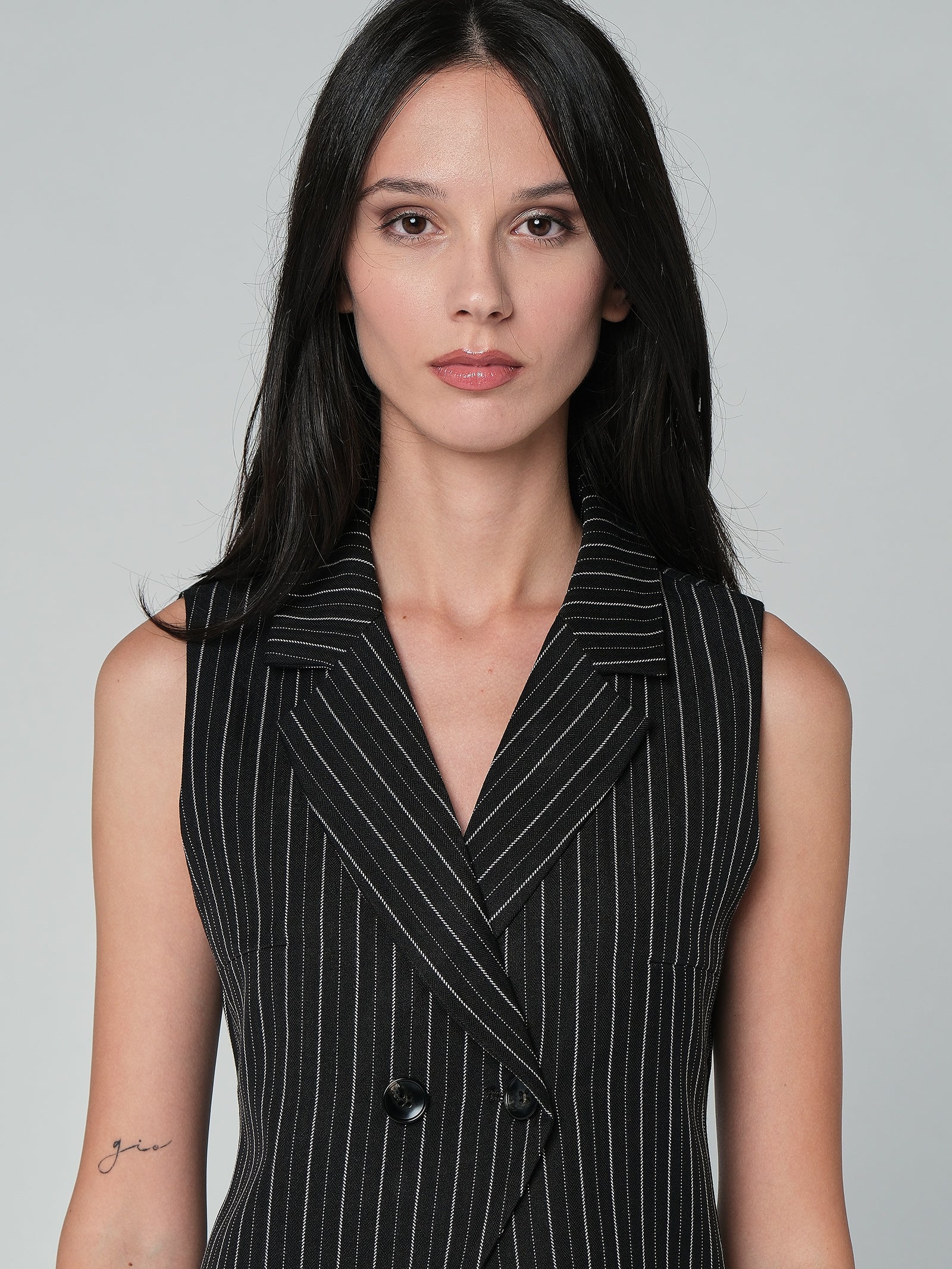 Gilet a righe con revers classico e chiusura a bottoni, è il capo perfetto da indossare sia da solo che abbinato ai suoi pantaloni coordinati.