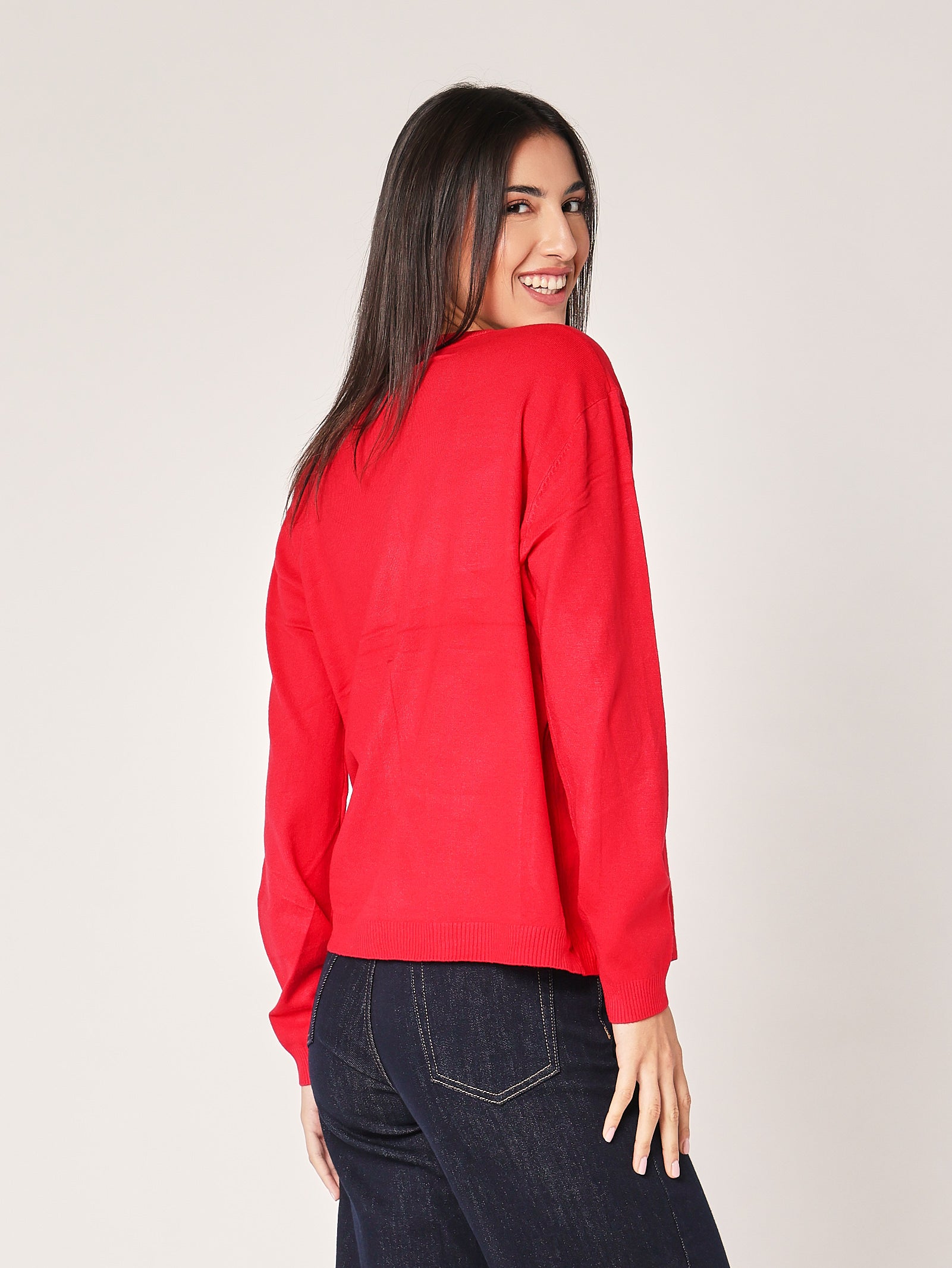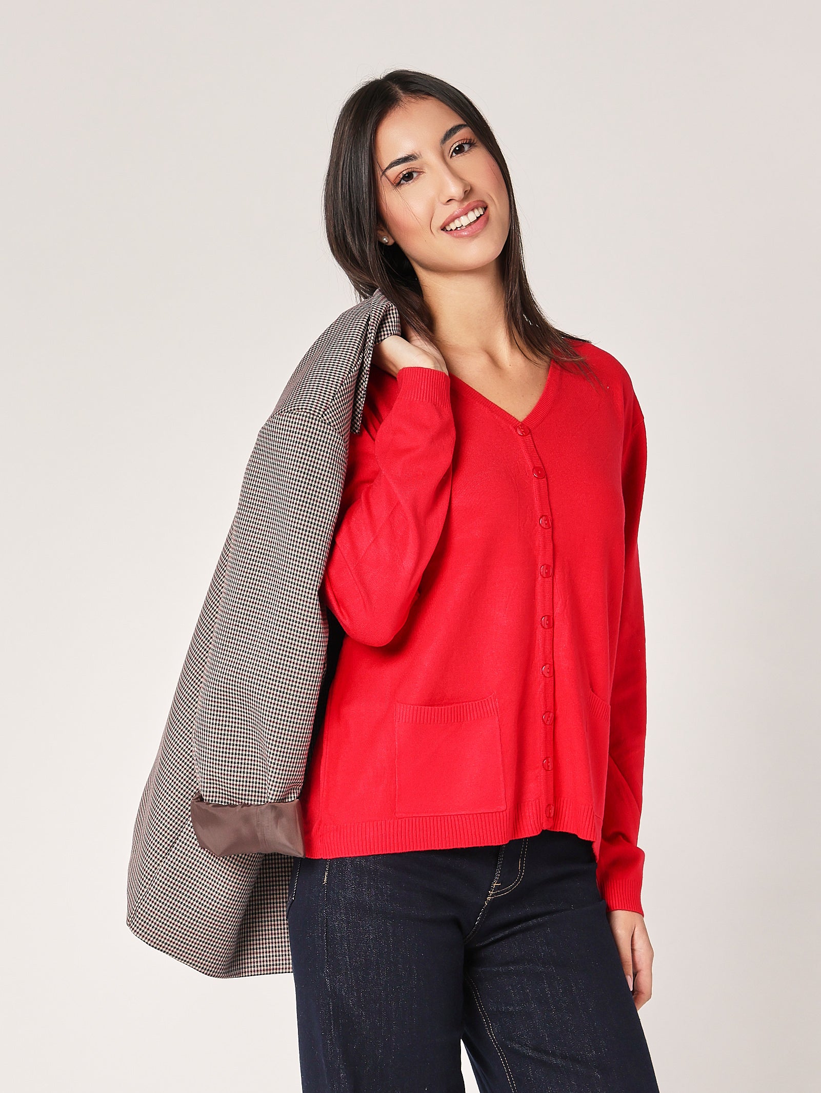 Audace ma raffinato. Il golfino over rosso è energia pura: illumina il viso, ravviva qualsiasi outfit e non passa mai inosservato. Perfetto per chi ama vestirsi di sicurezza e stile.