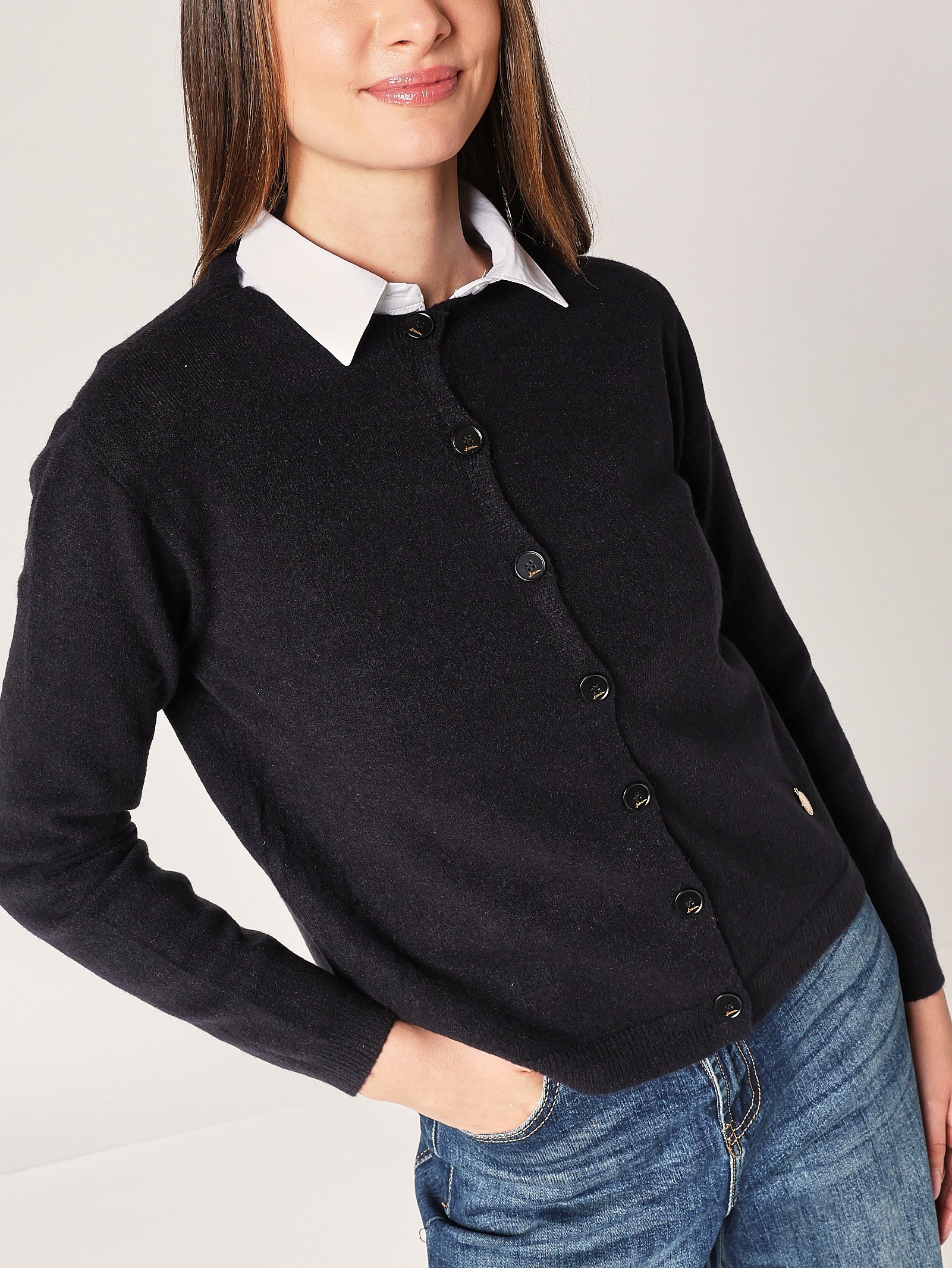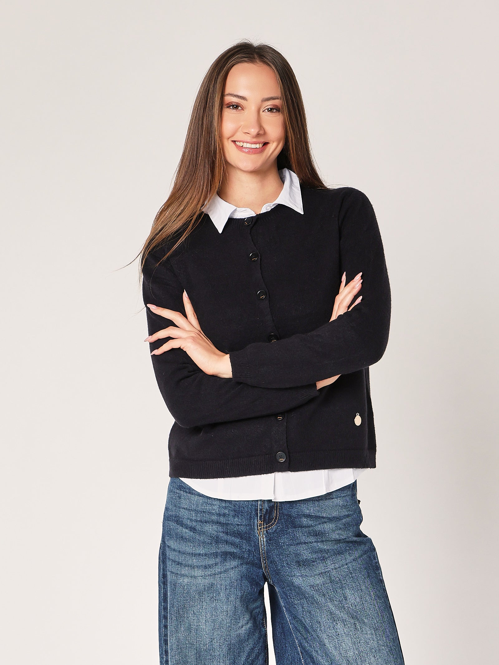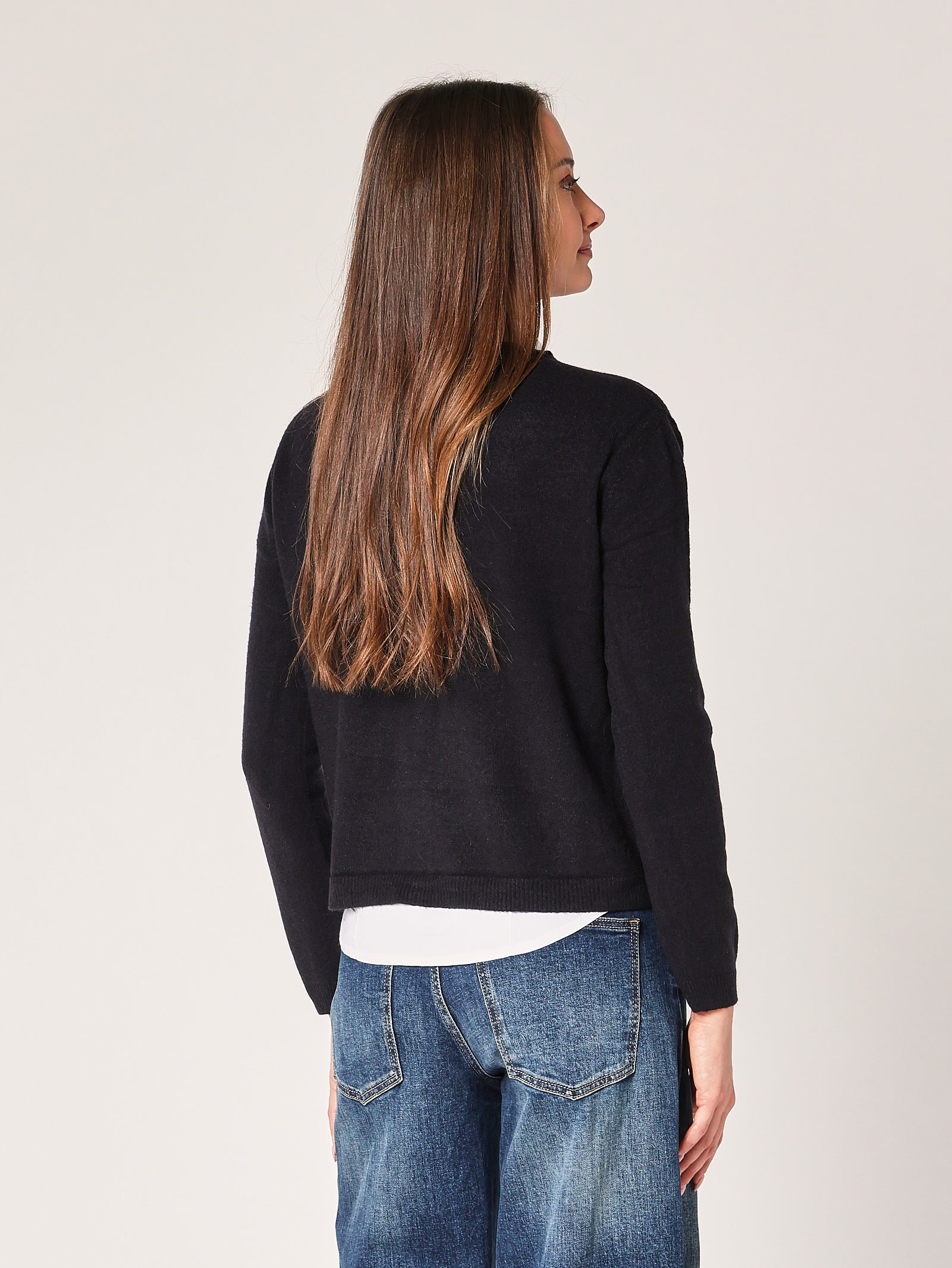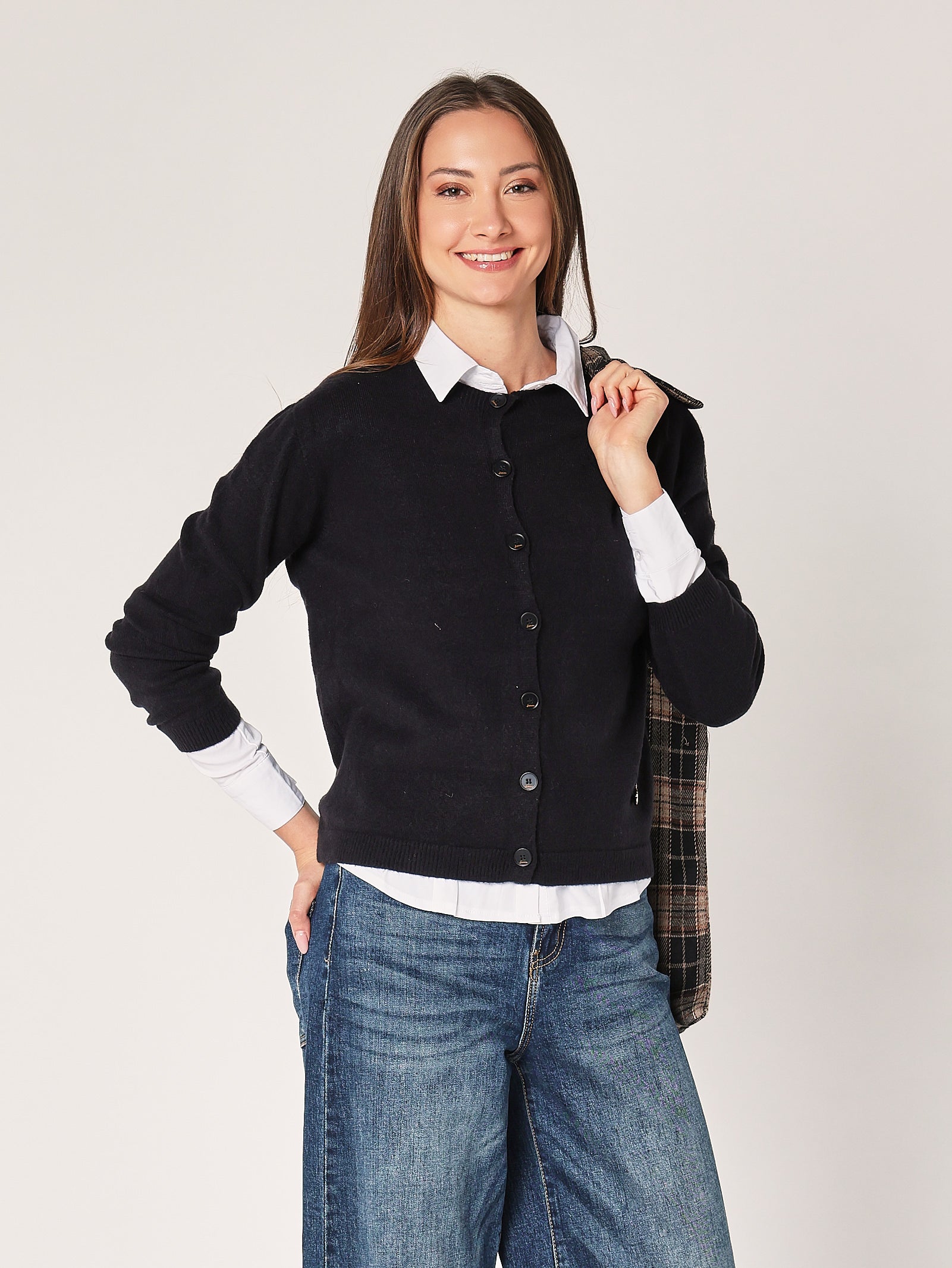 Semplice, morbido e irresistibilmente chic. Il golfino nero è la base su cui puoi costruire qualsiasi look, ma con quel fit curato che lo rende sempre attuale. Elegante anche da solo, perfetto da abbinare a strati.