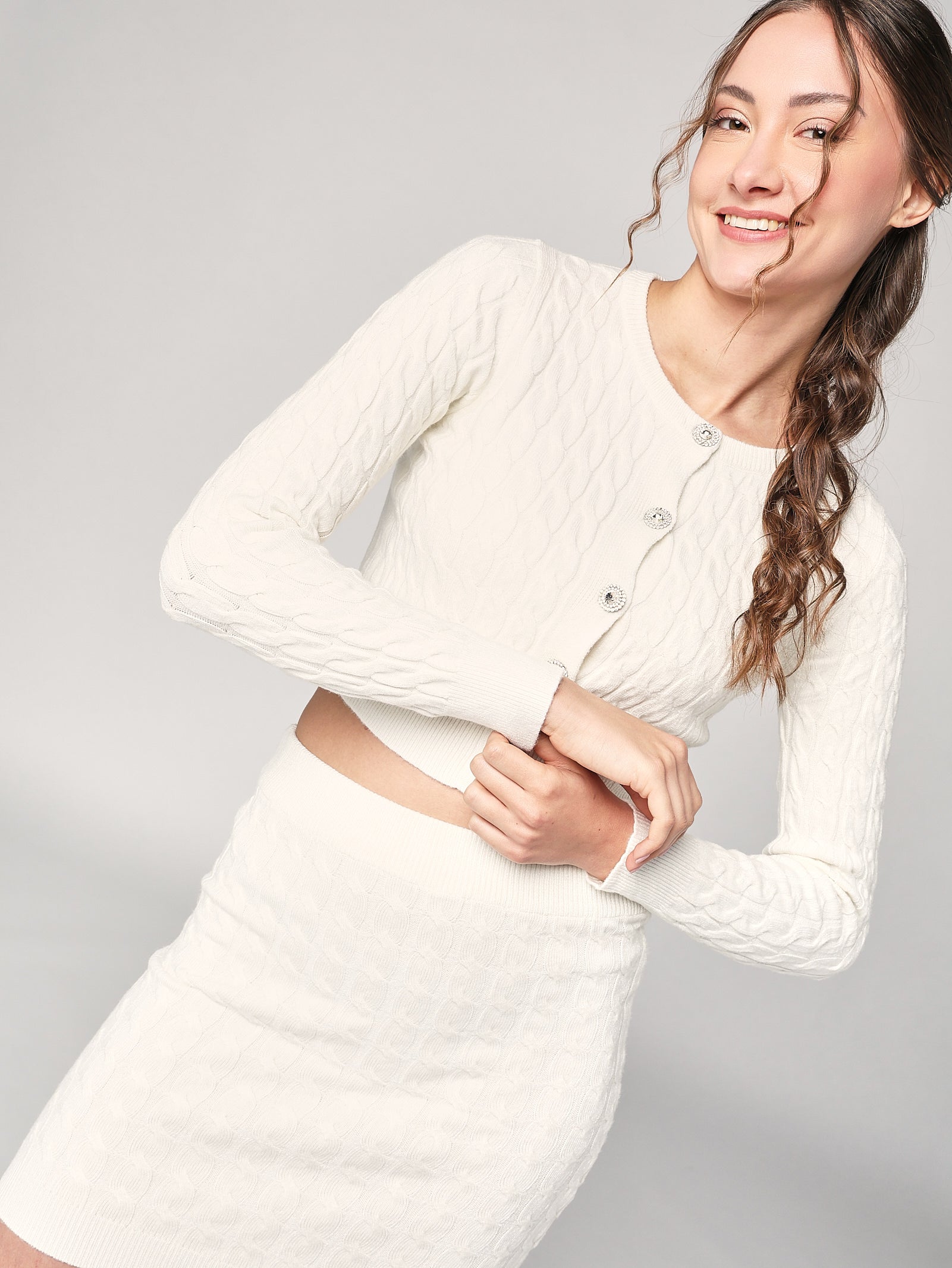 Completo con golfino e gonna a trecce, un set raffinato e accogliente perfetto per la stagione fredda. La lavorazione intrecciata dona texture e movimento, mentre la vestibilità morbida valorizza la figura con naturalezza.