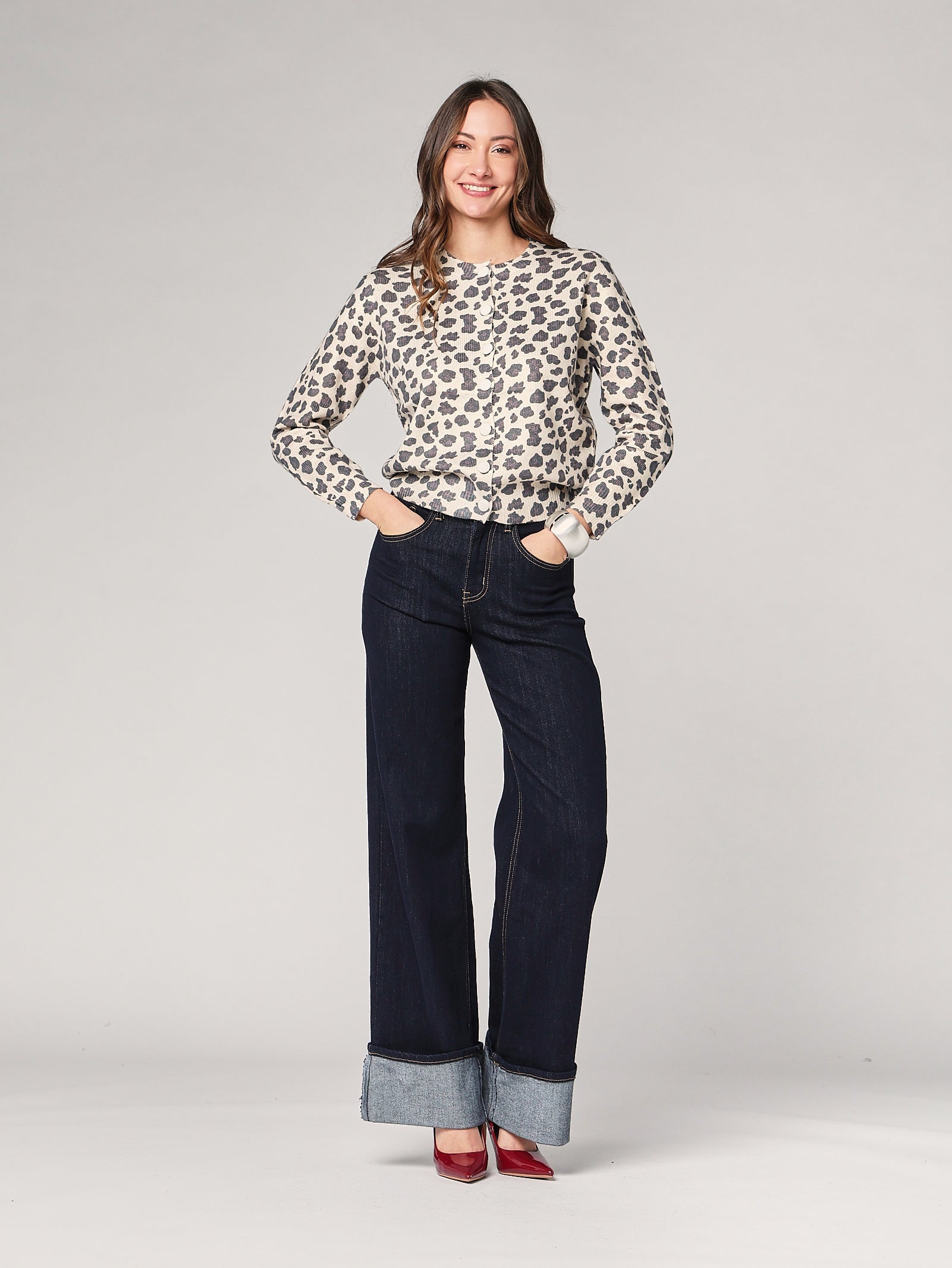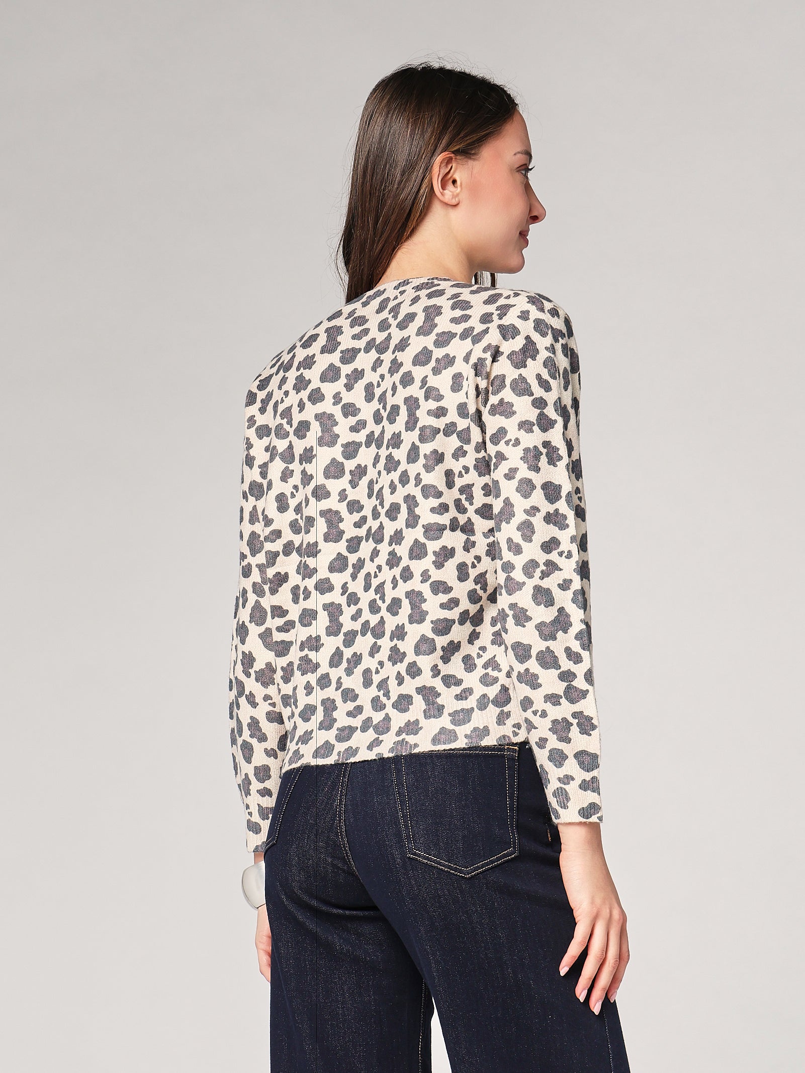 Golfino in maglia con stampa animal, un modello grintoso e femminile pensato per aggiungere personalità ai look quotidiani. La texture morbida e la linea essenziale lo rendono facile da abbinare, ideale per dare carattere anche agli outfit più semplici.