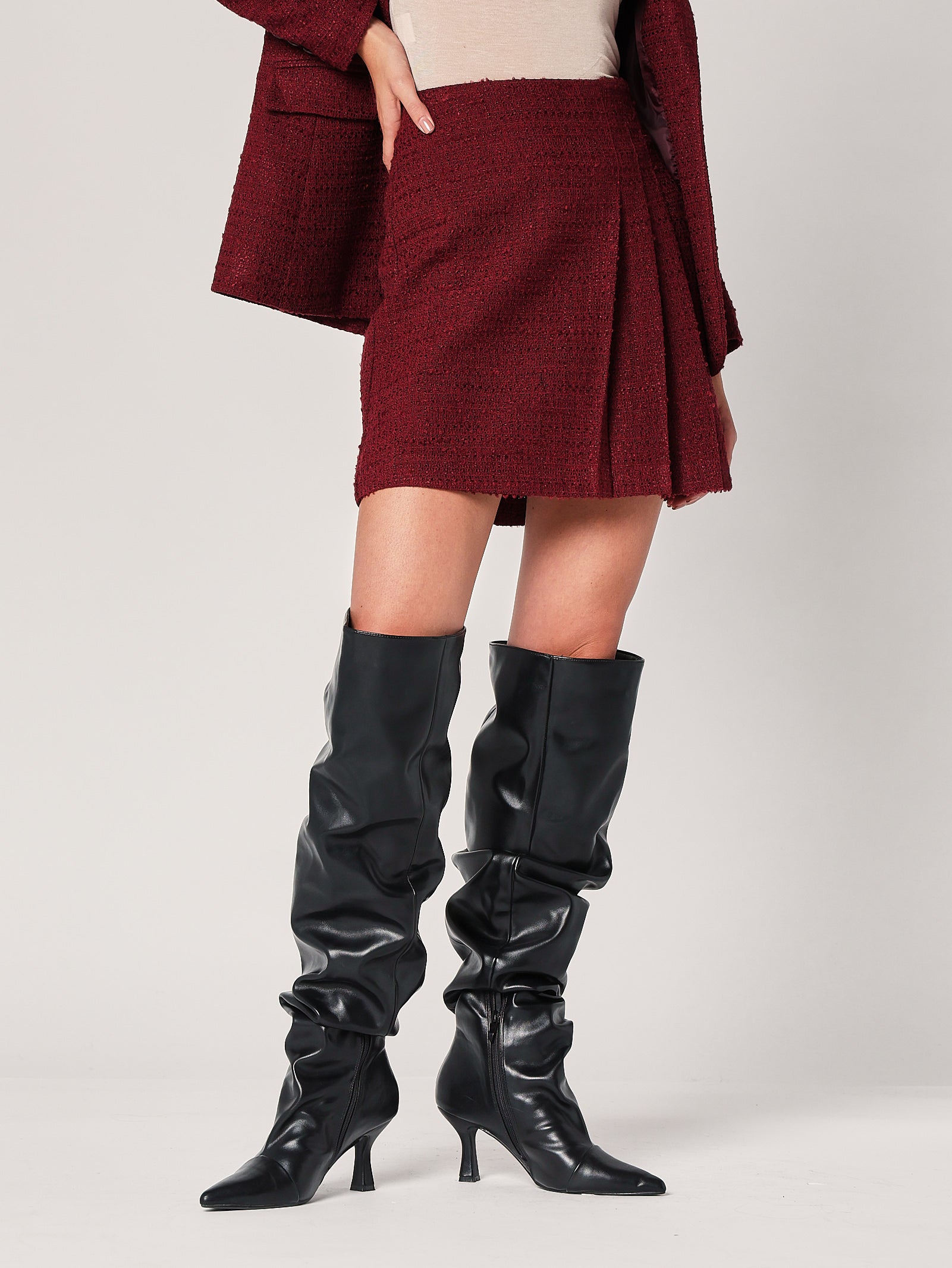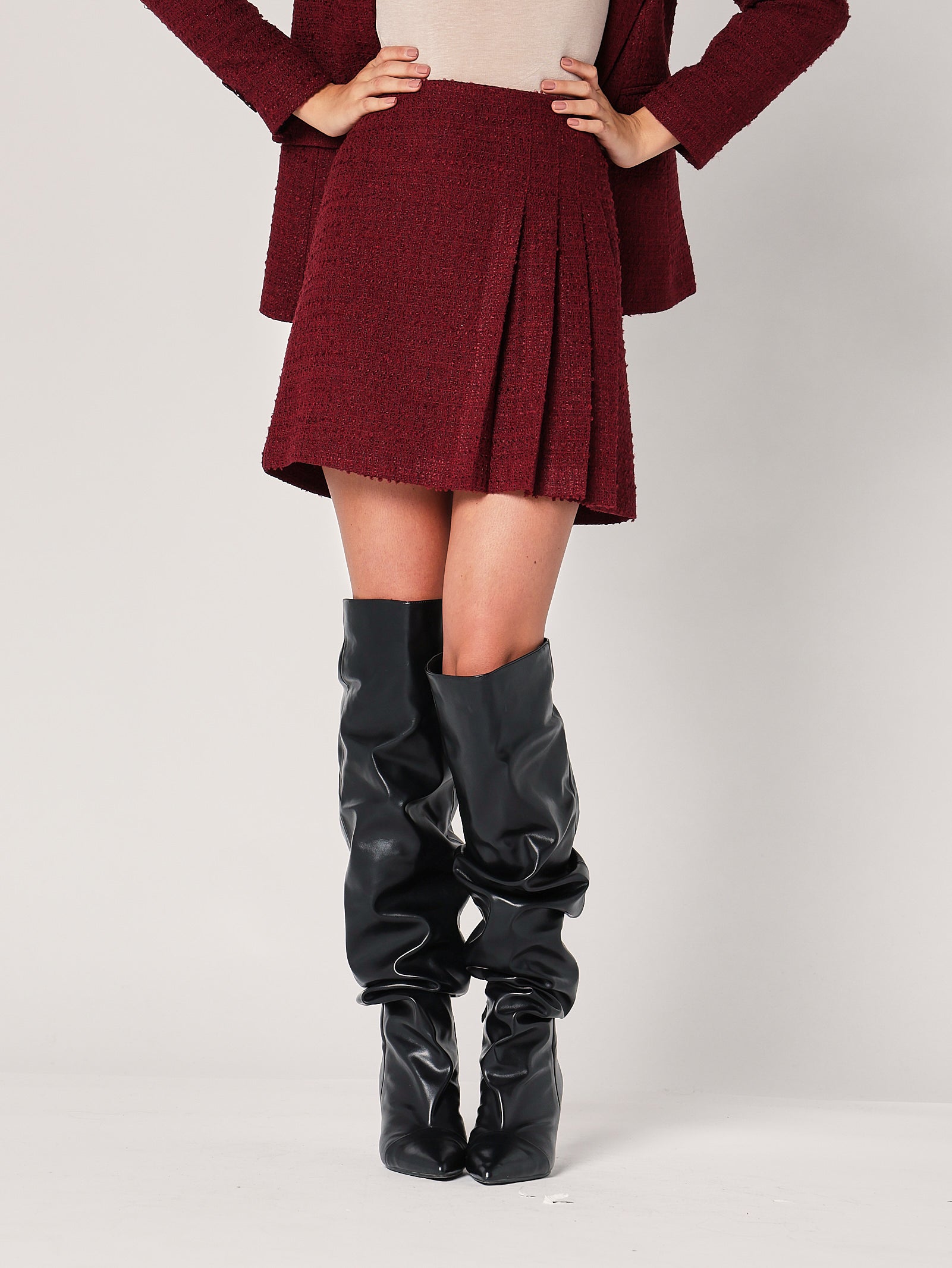 Gonna midi plissettata dal fascino delicato e senza tempo. Il tessuto fluido crea un gioco di movimento ad ogni passo, mentre la vita alta valorizza la silhouette con eleganza. Perfetta con dolcevita e giacche corte per uno stile romantico e raffinato, ma anche con sneakers per un tocco più casual.