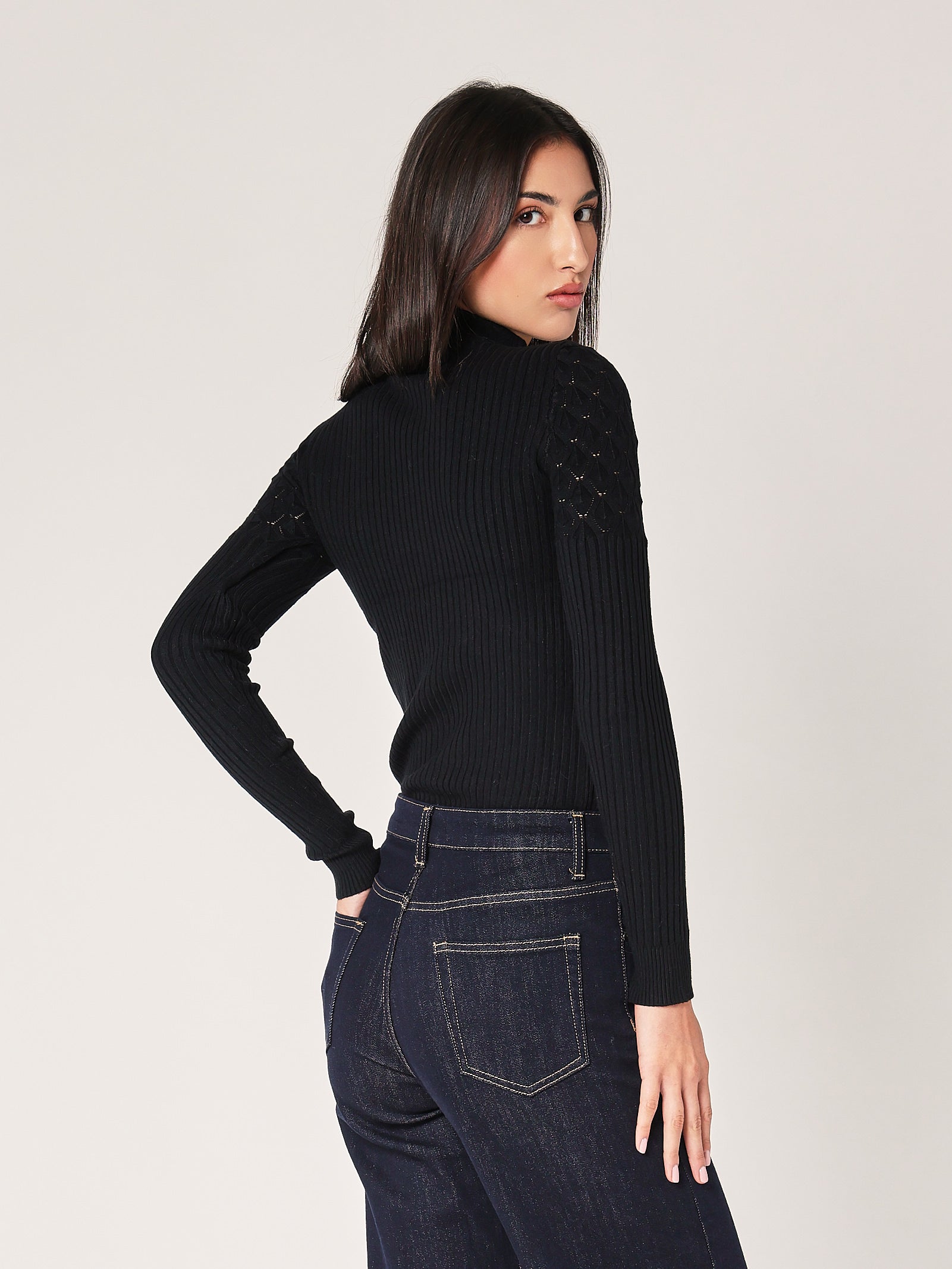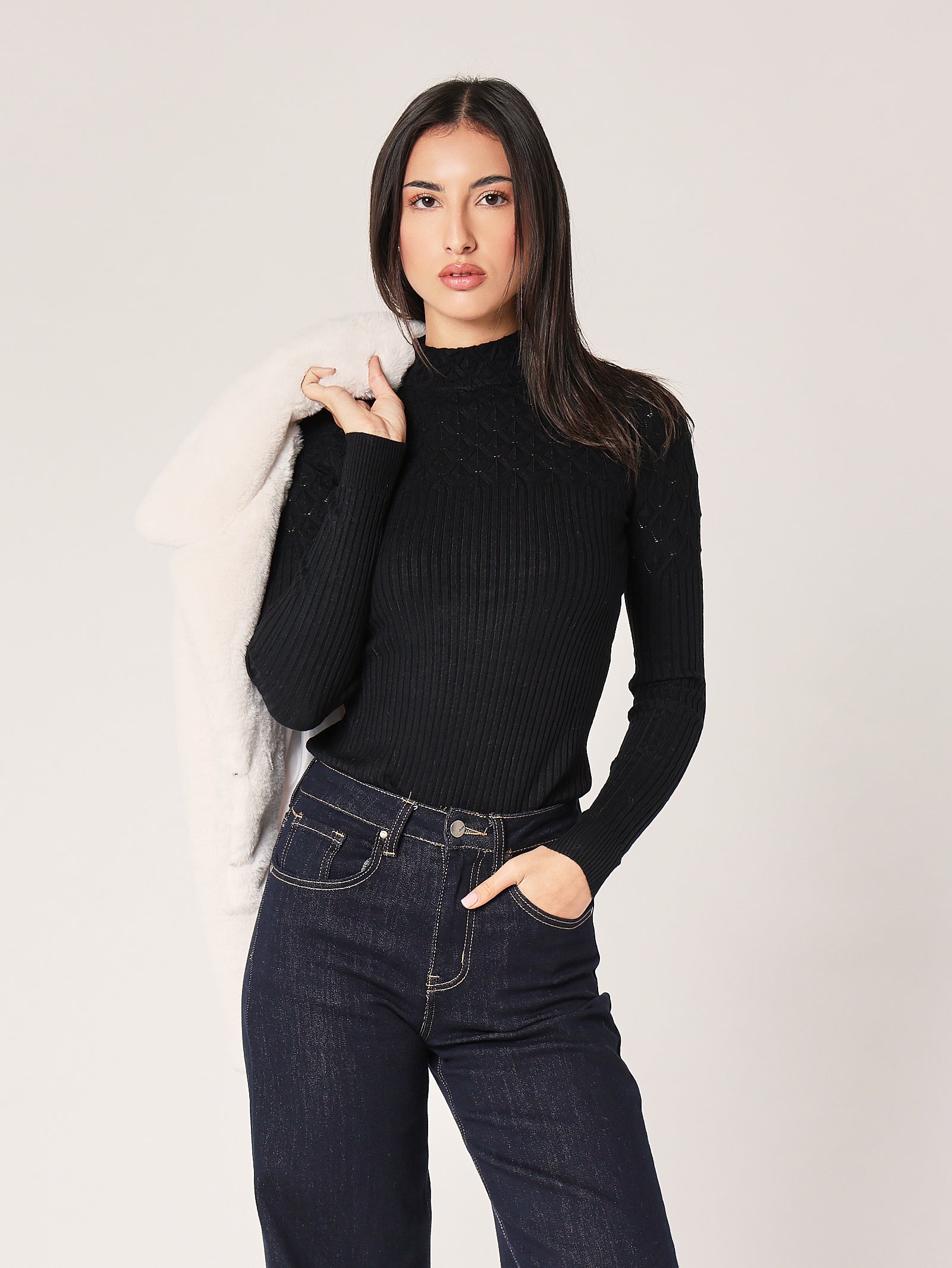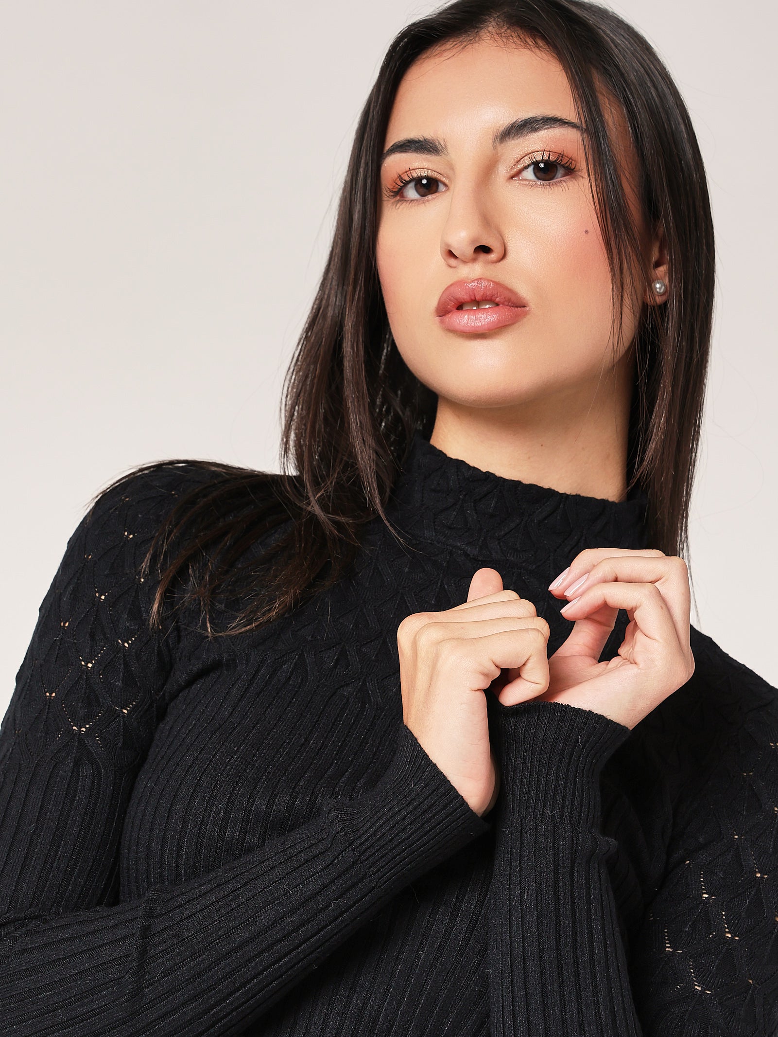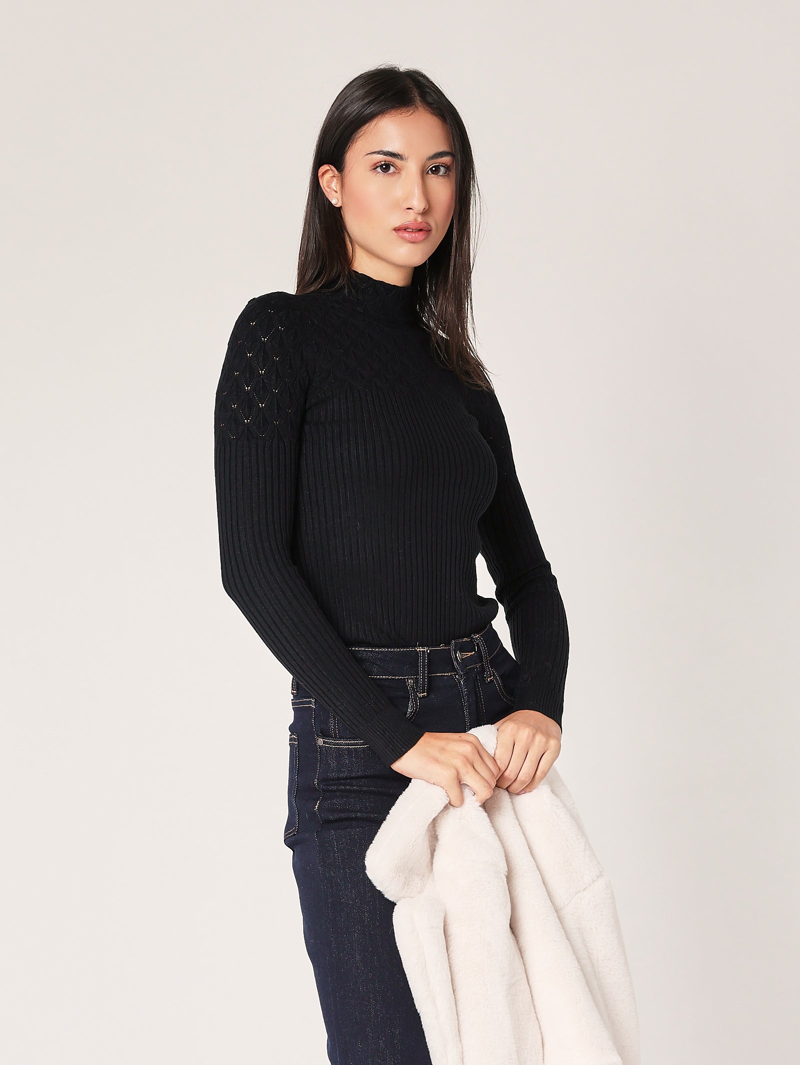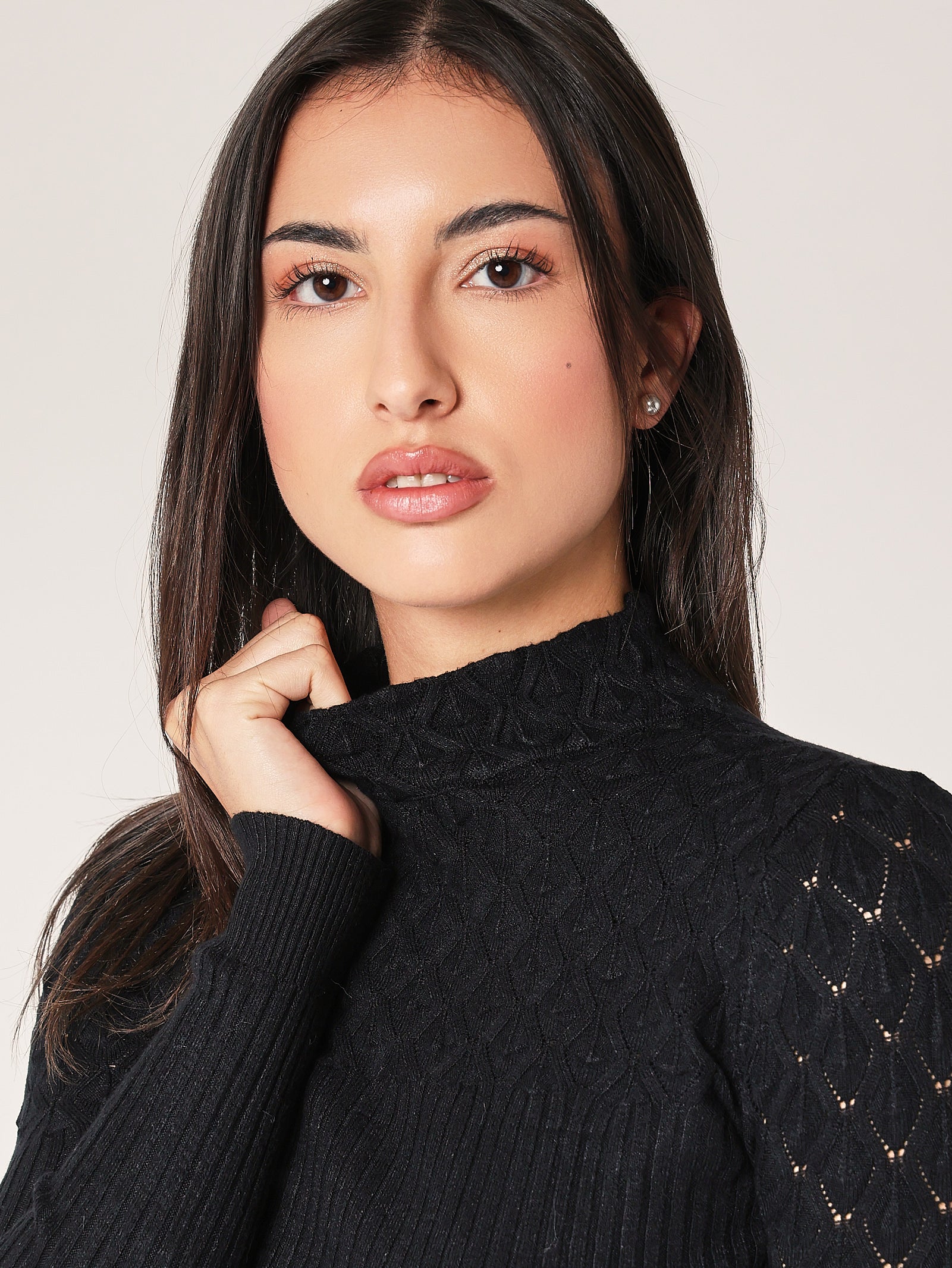 Essenziale ma d’impatto. Il lupetto nero ha quella linea pulita che valorizza tutto ciò che indossi sopra. Morbido e versatile, è una certezza di stile da tenere sempre pronta nell’armadio.