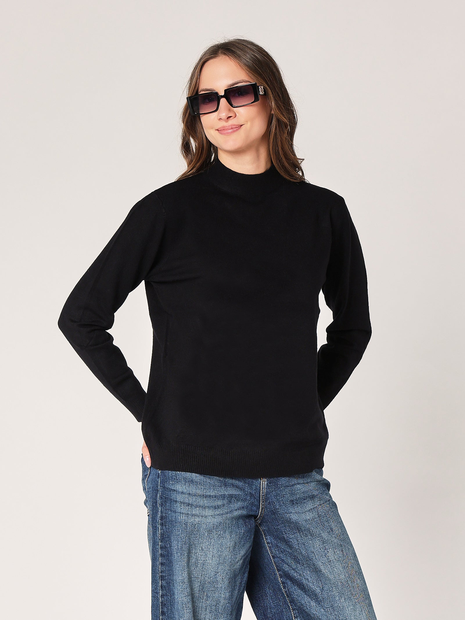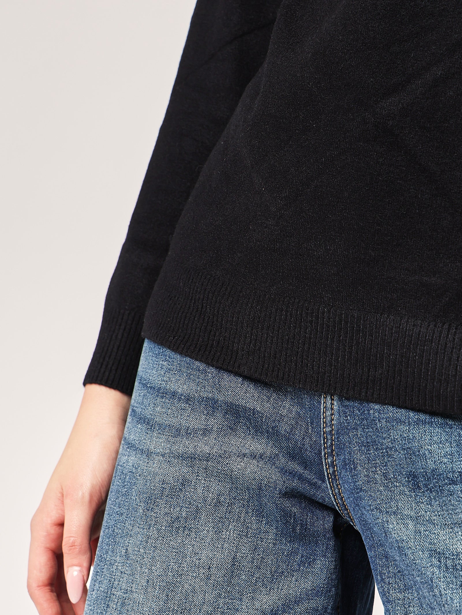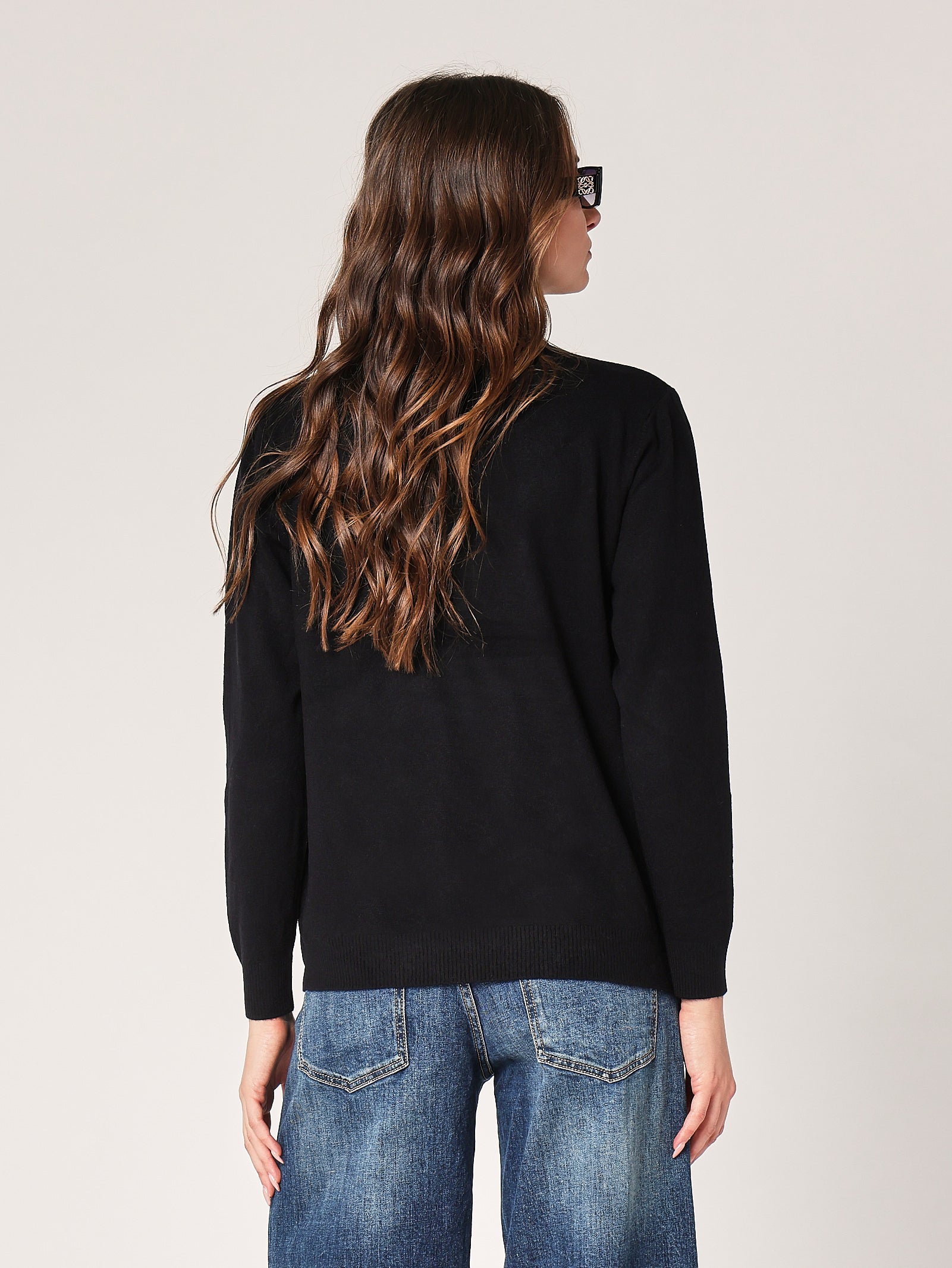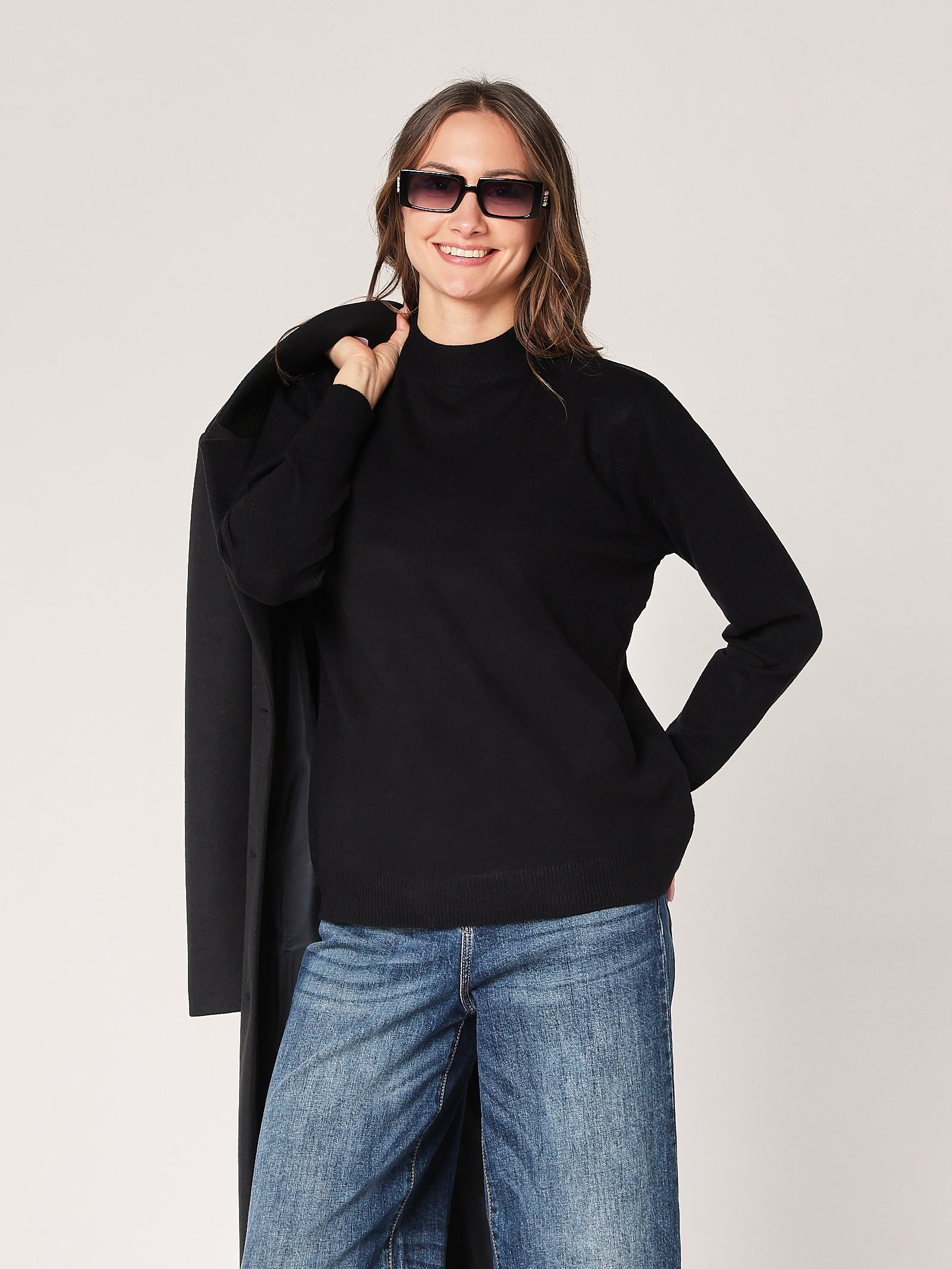 Minimal ma d’effetto. Il lupetto over nero ha un fit rilassato e una presenza che si sente anche senza accessori. Ti fa sentire sicura, comoda e sempre in ordine, in puro stile monella.
