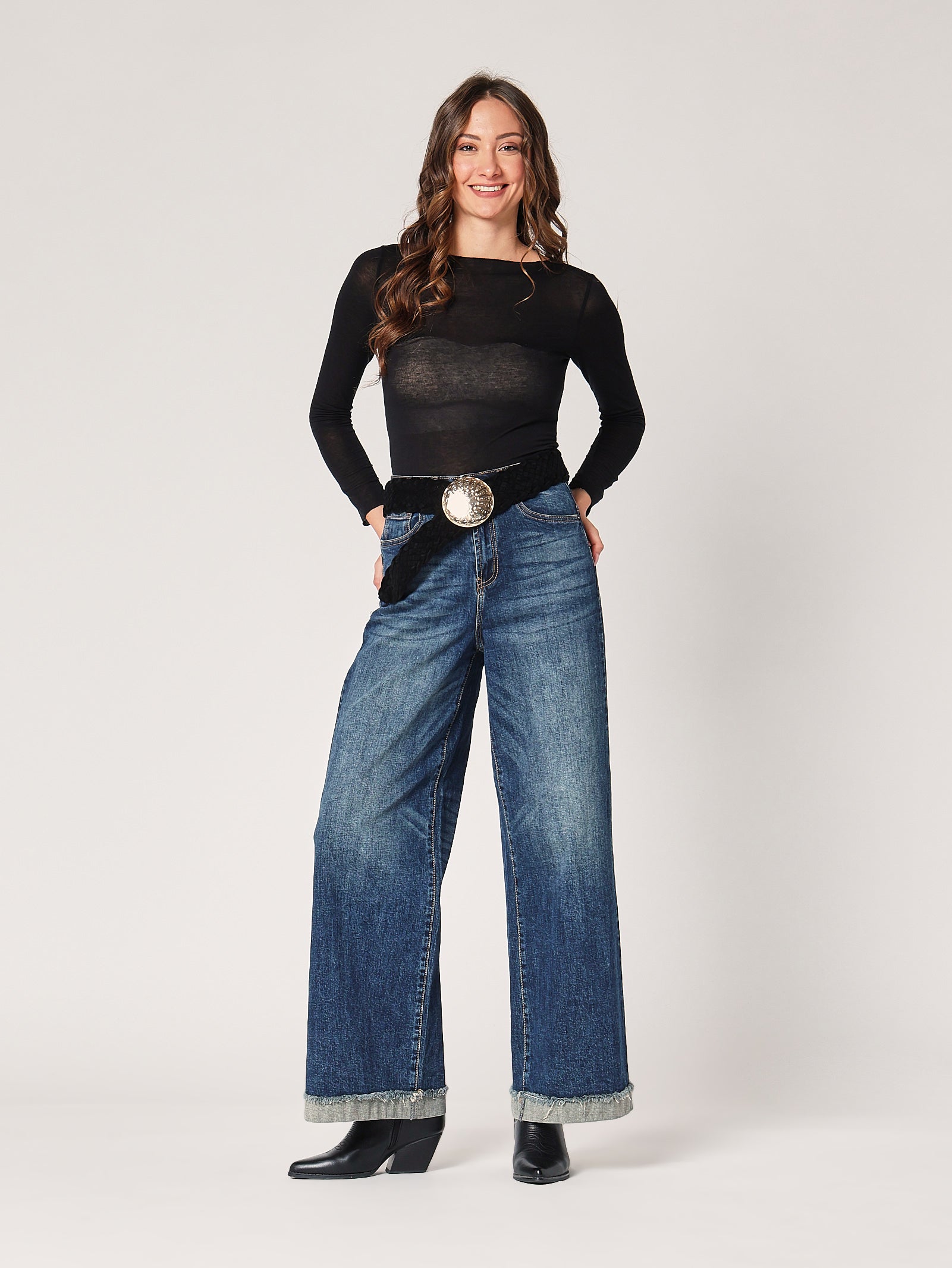Maglia in cachemire nero, filato soffice e avvolgente con vestibilità leggermente aderente. Perfetta da indossare sotto blazer sartoriali per un outfit da ufficio raffinato, oppure da sola con jeans a vita alta e stivali cuoio per un look elegante e confortevole anche nelle giornate più fresche.