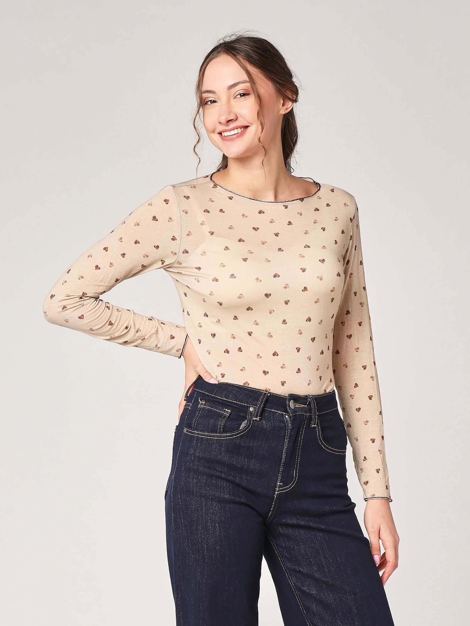 Maglia cuore soft in cashmere, un capo essenziale dal fascino romantico. Il design semplice e il dettaglio discreto la rendono perfetta per aggiungere dolcezza ai look quotidiani.