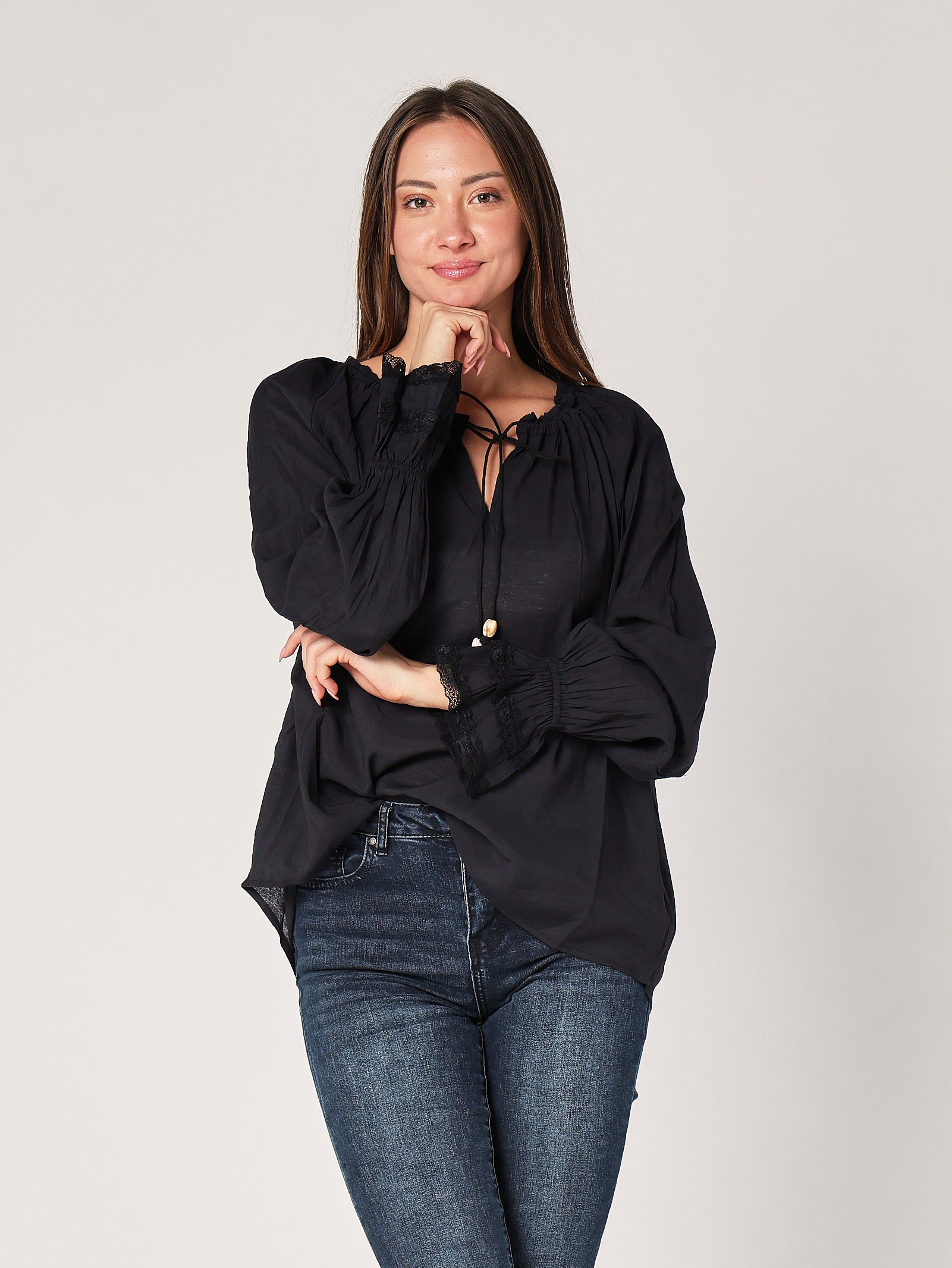 Maglia con collo elastico e dettaglio a nodo frontale, un capo femminile e versatile che unisce comfort e stile. Il design morbido valorizza la figura senza costringerla, mentre il nodo dona movimento e personalità al look. Perfetta per outfit casual chic o per completare mise più eleganti con un tocco sofisticato.