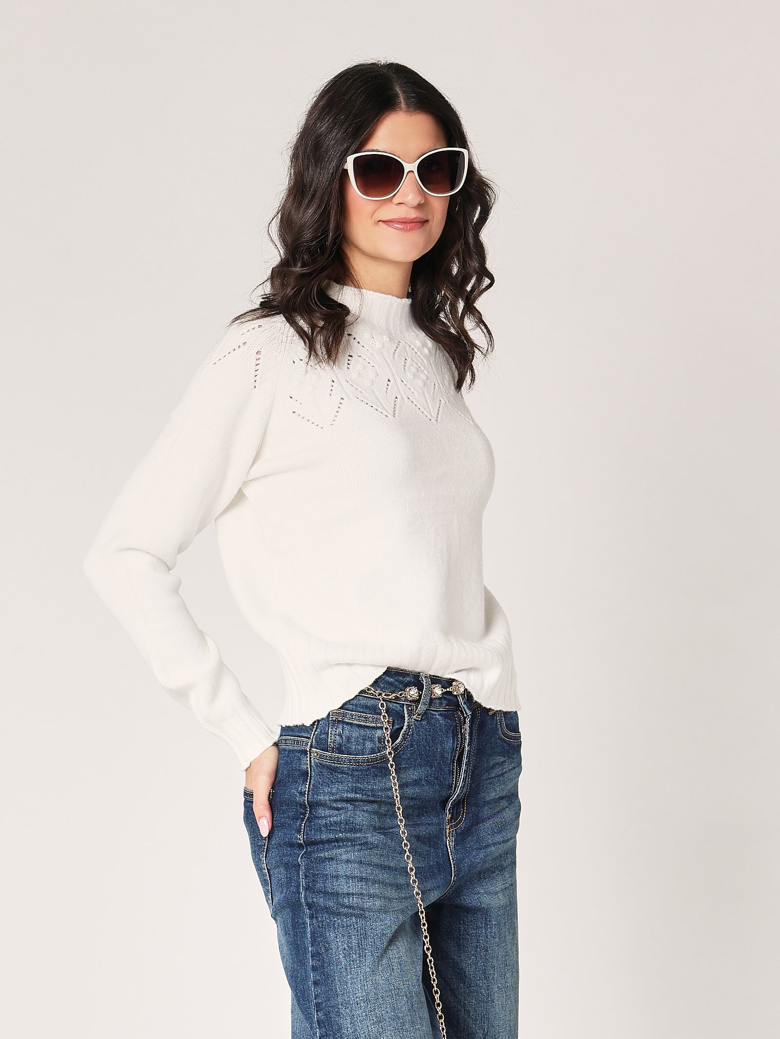 Minimal ma con stile. Questa maglia è la base su cui costruire tutto, dai look casual ai più chic. Il collo lavorato aggiunge movimento e carattere, rendendola perfetta anche da sola. Pulita, luminosa e decisamente monella.