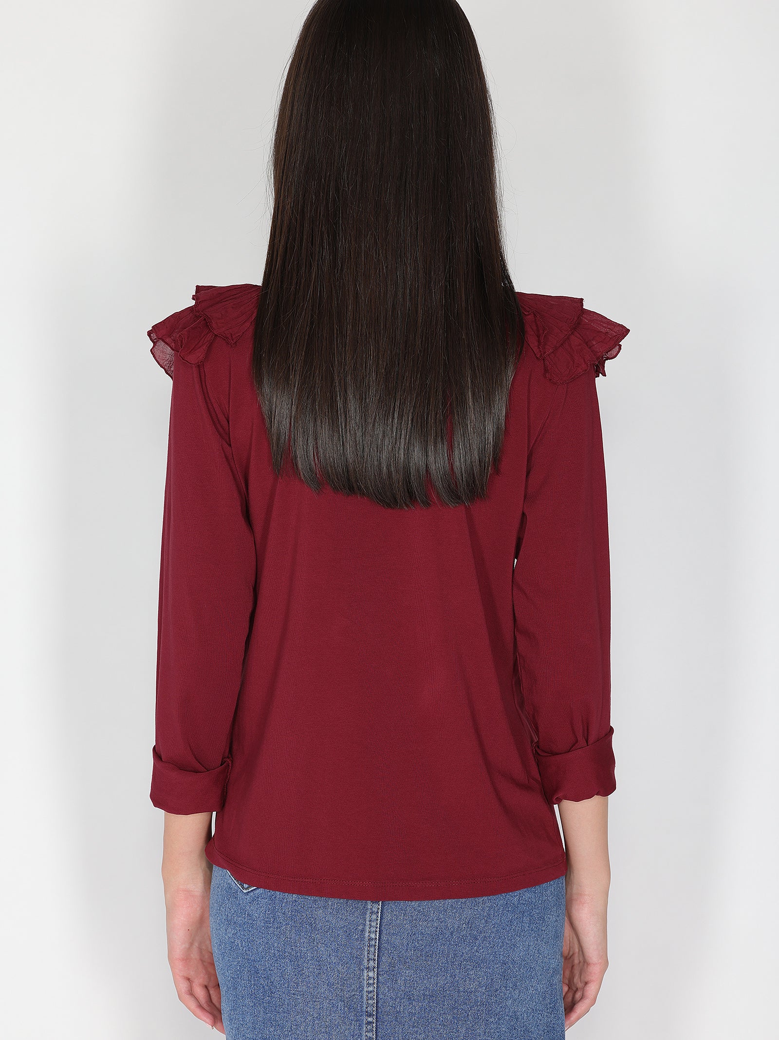 Maglia collo V con rouches