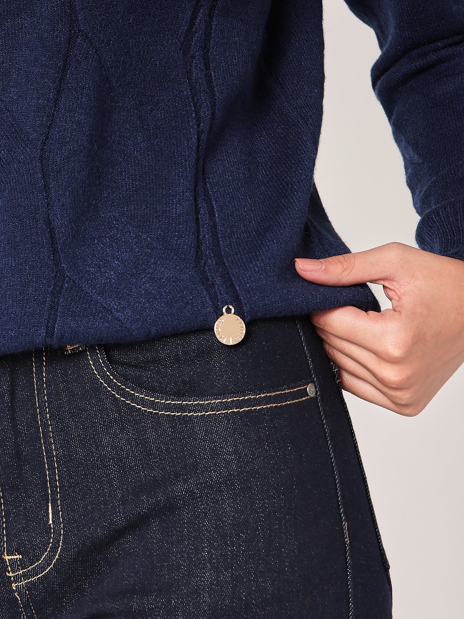 Dettaglio sartoriale: tessuto jersey compatto con finiture rifinite