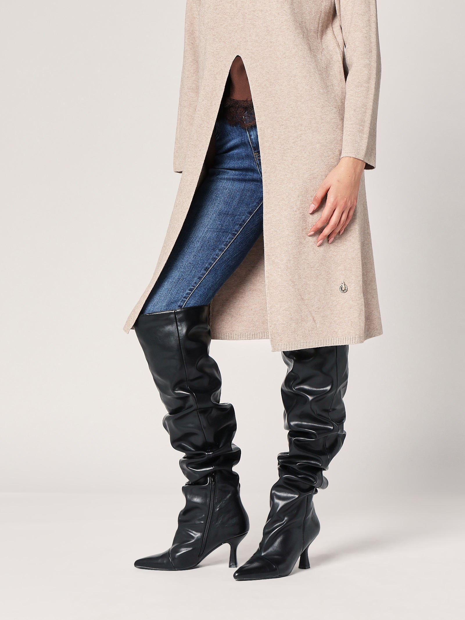 Maglia lunga fluida con spacco, perfetta per dare movimento e leggerezza all’outfit. Il tessuto morbido segue delicatamente le forme, mentre lo spacco frontale dona un tocco fashion. Un capo ideale per creare look rilassati ma curati.