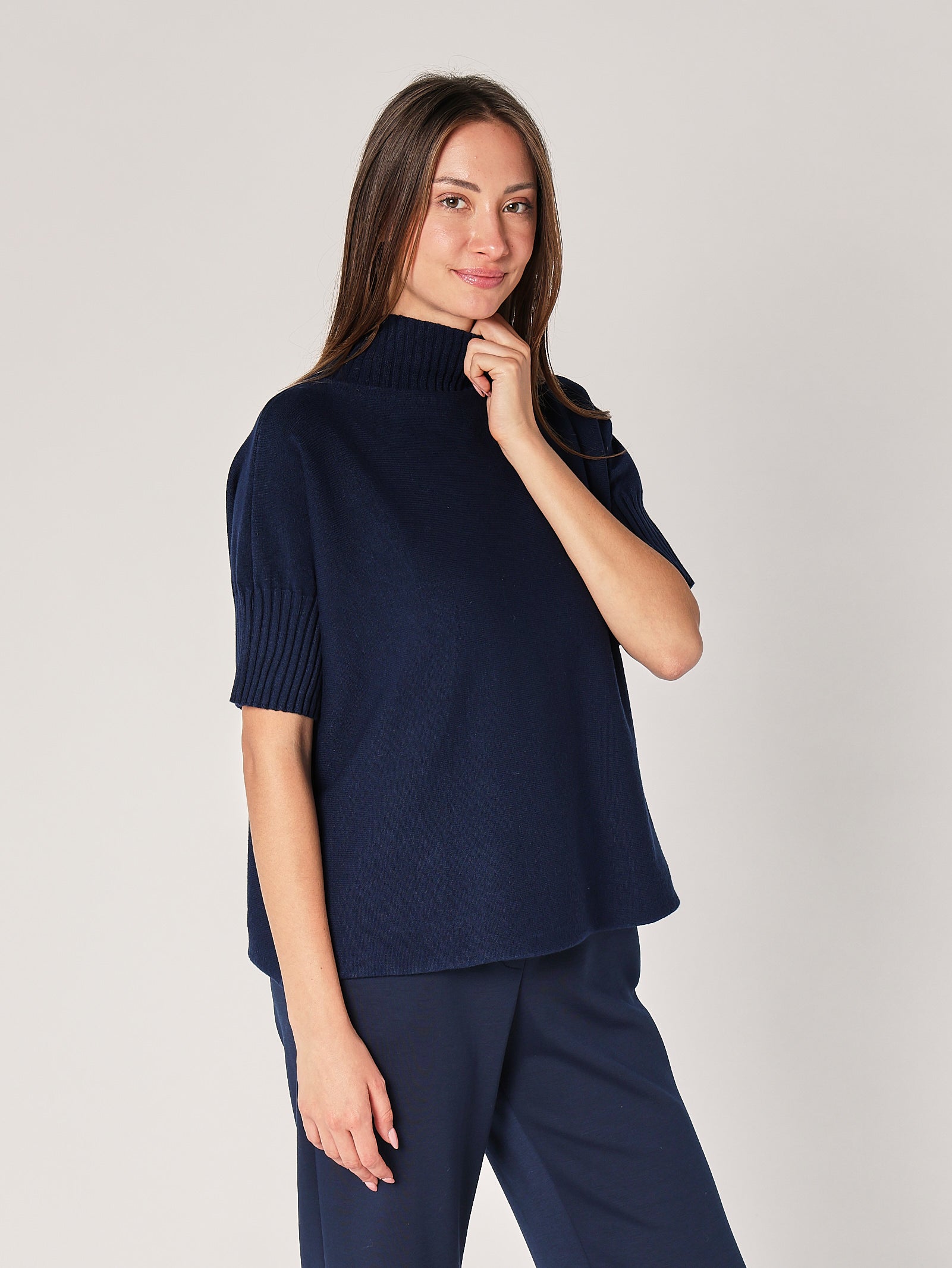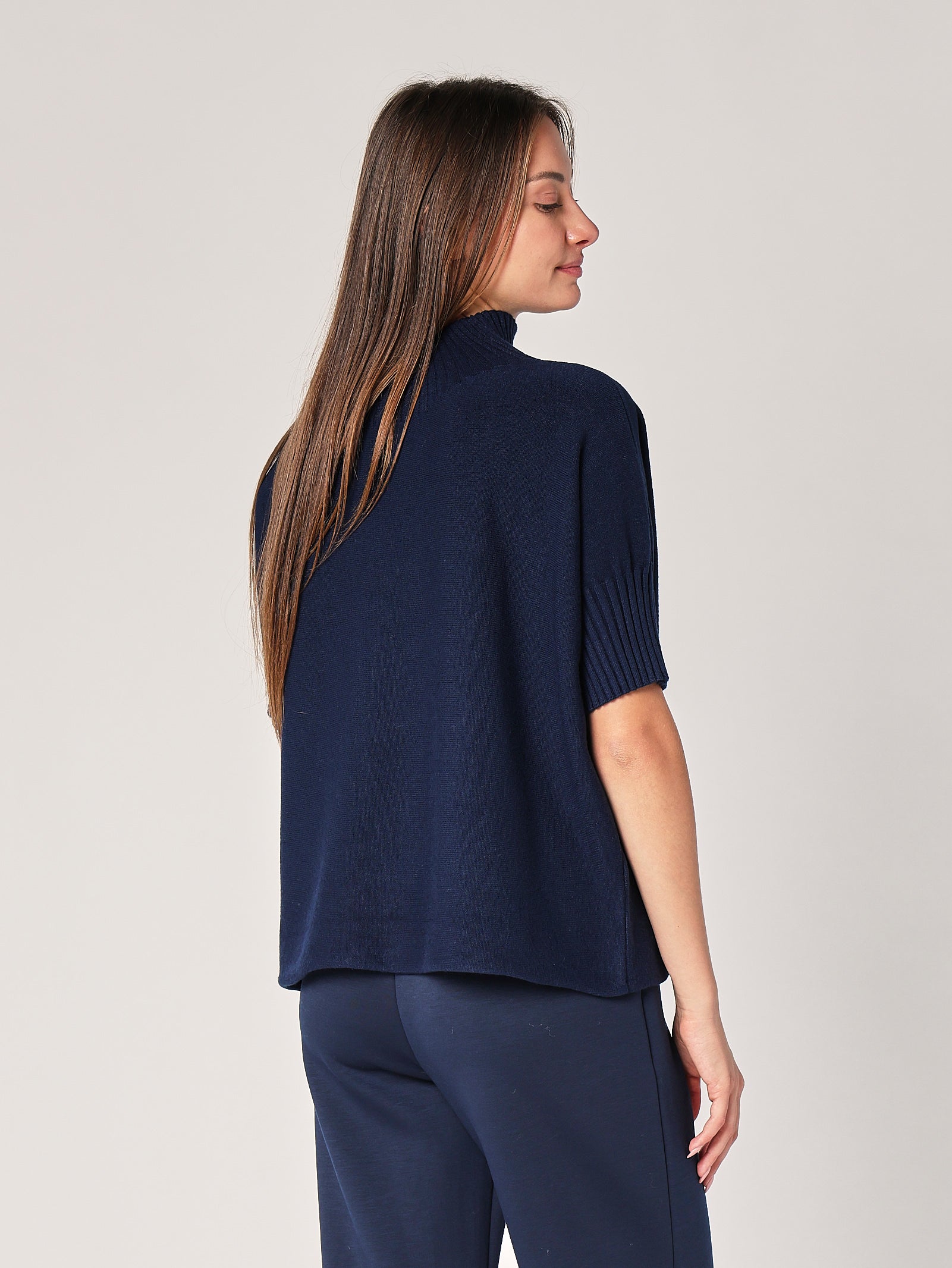 Dettaglio sartoriale: maniche morbide e bordi a costine