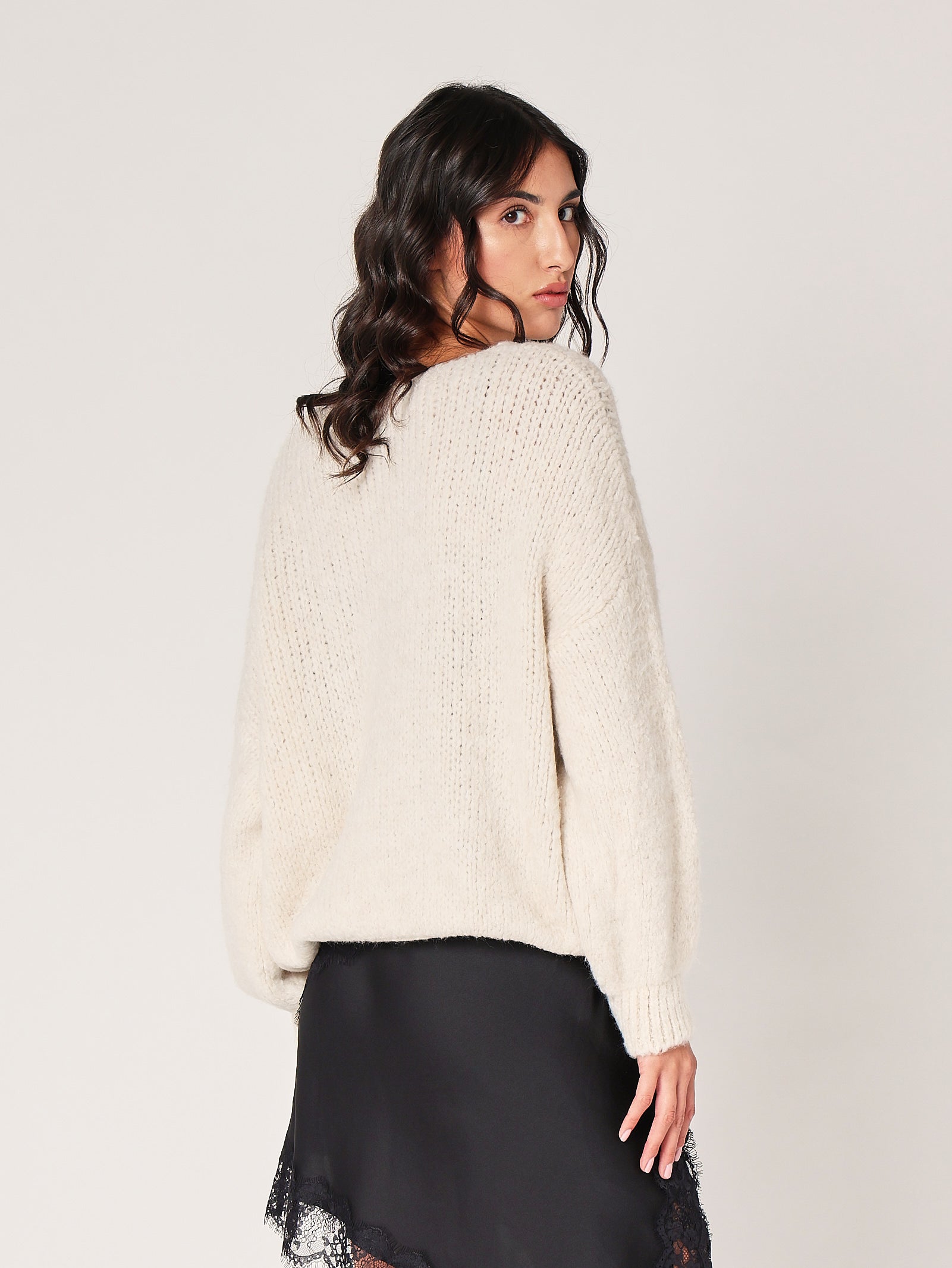 Maglione con collo a V, un classico intramontabile del guardaroba femminile. Il design pulito e la linea morbida lo rendono perfetto per ogni occasione, mentre il tessuto soffice avvolge con comfort e leggerezza. Facile da abbinare, aggiunge un tocco elegante anche ai look più semplici.