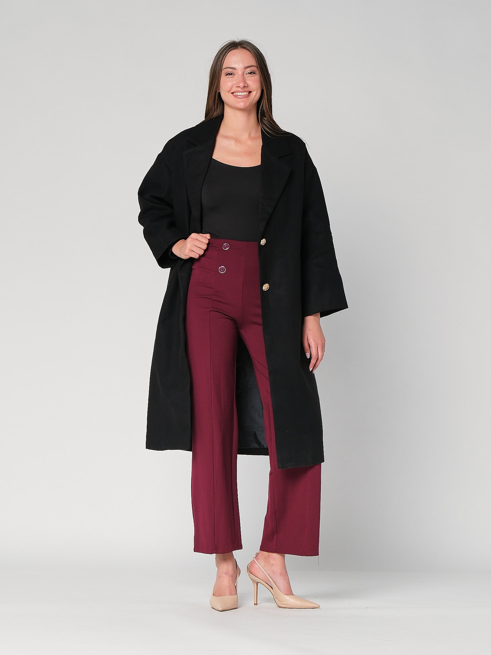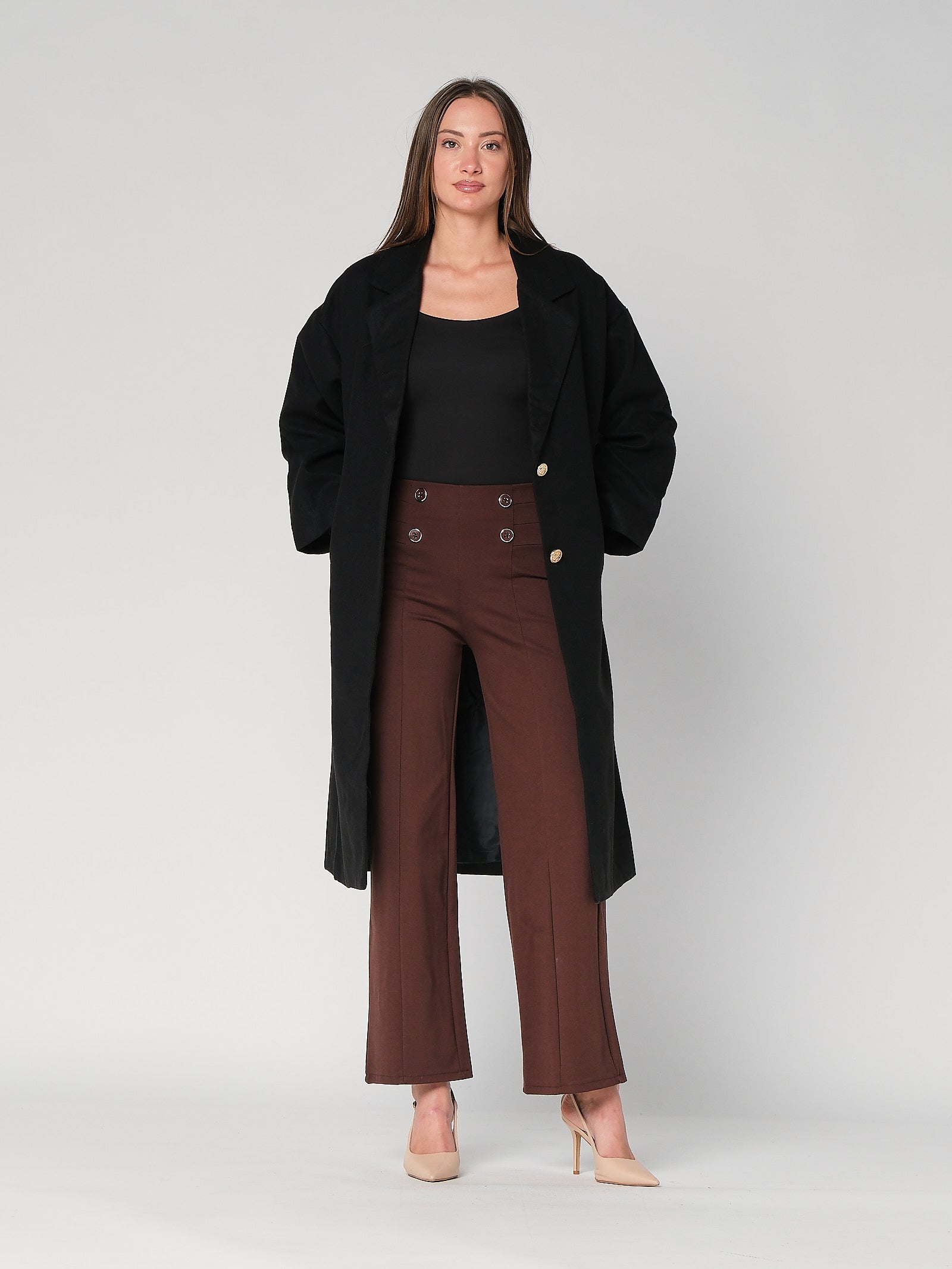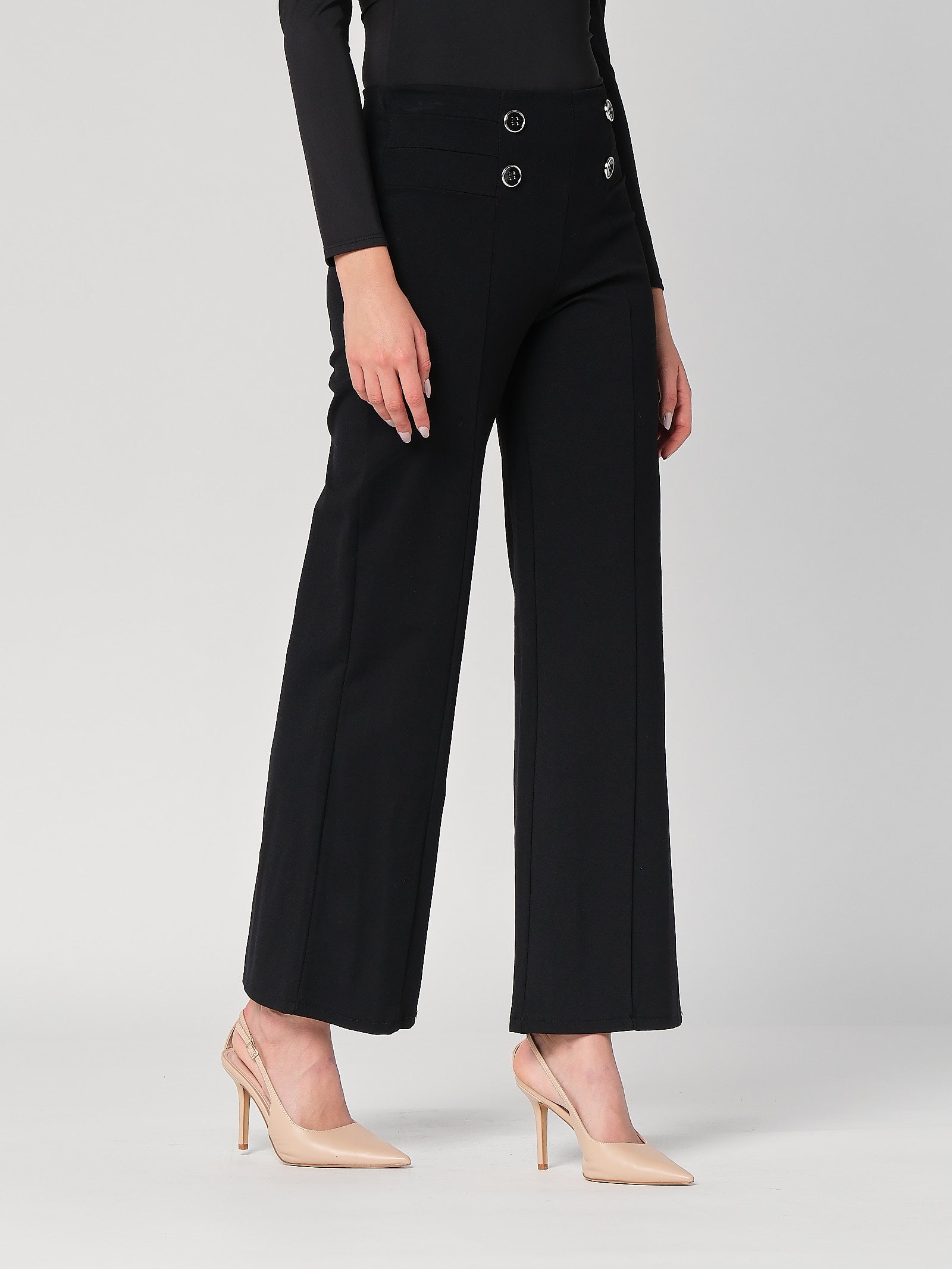 Pantalone palazzo con bottoni decorativi in vita che regalano subito un vibe elegante e raffinato.