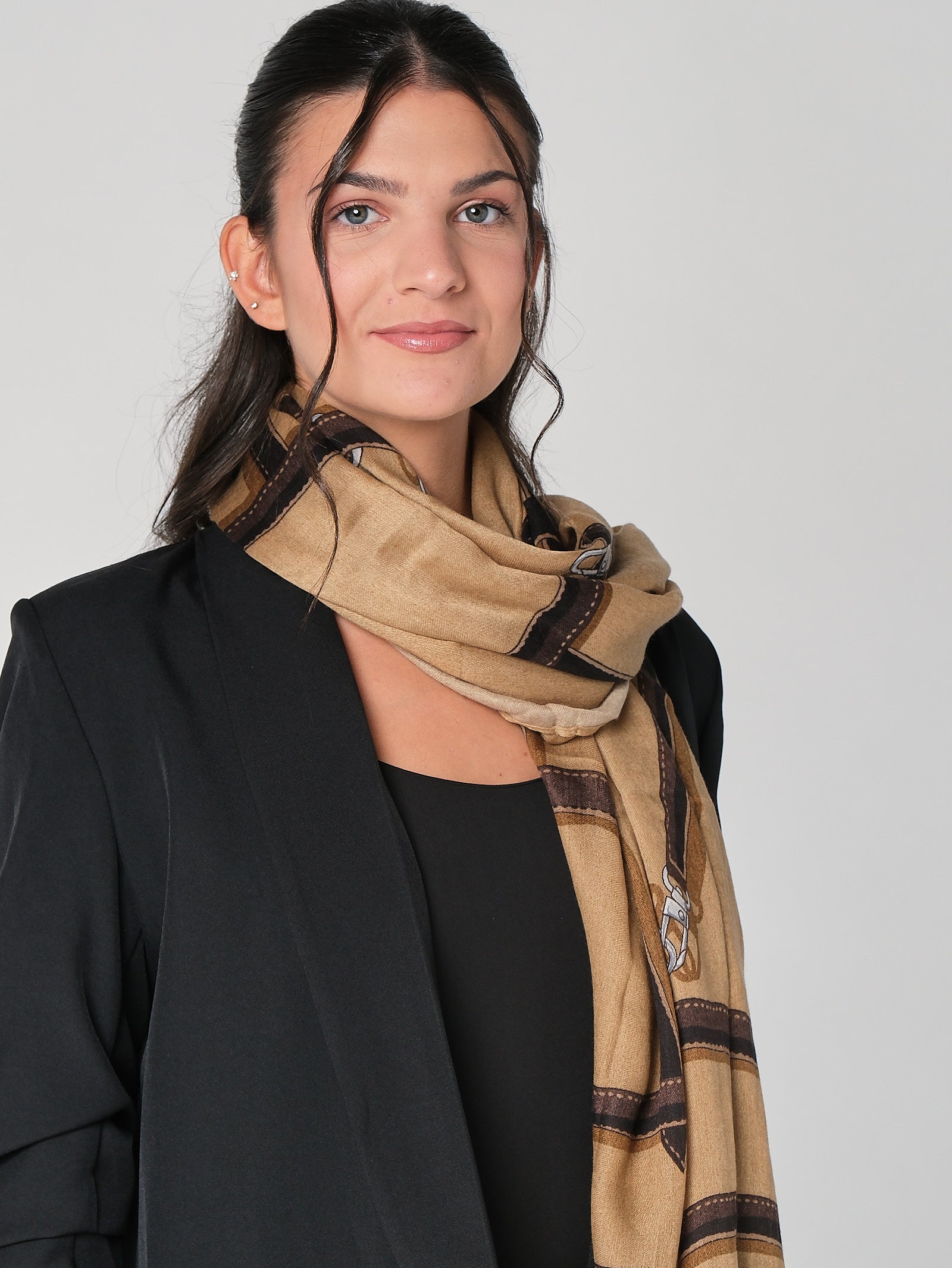 Pashmina leggera dal fascino casual chic, perfetta per outfit quotidiani o da viaggio. Il suo tessuto traspirante e la forma ampia permettono di creare molteplici styling, sempre con un tocco raffinato.